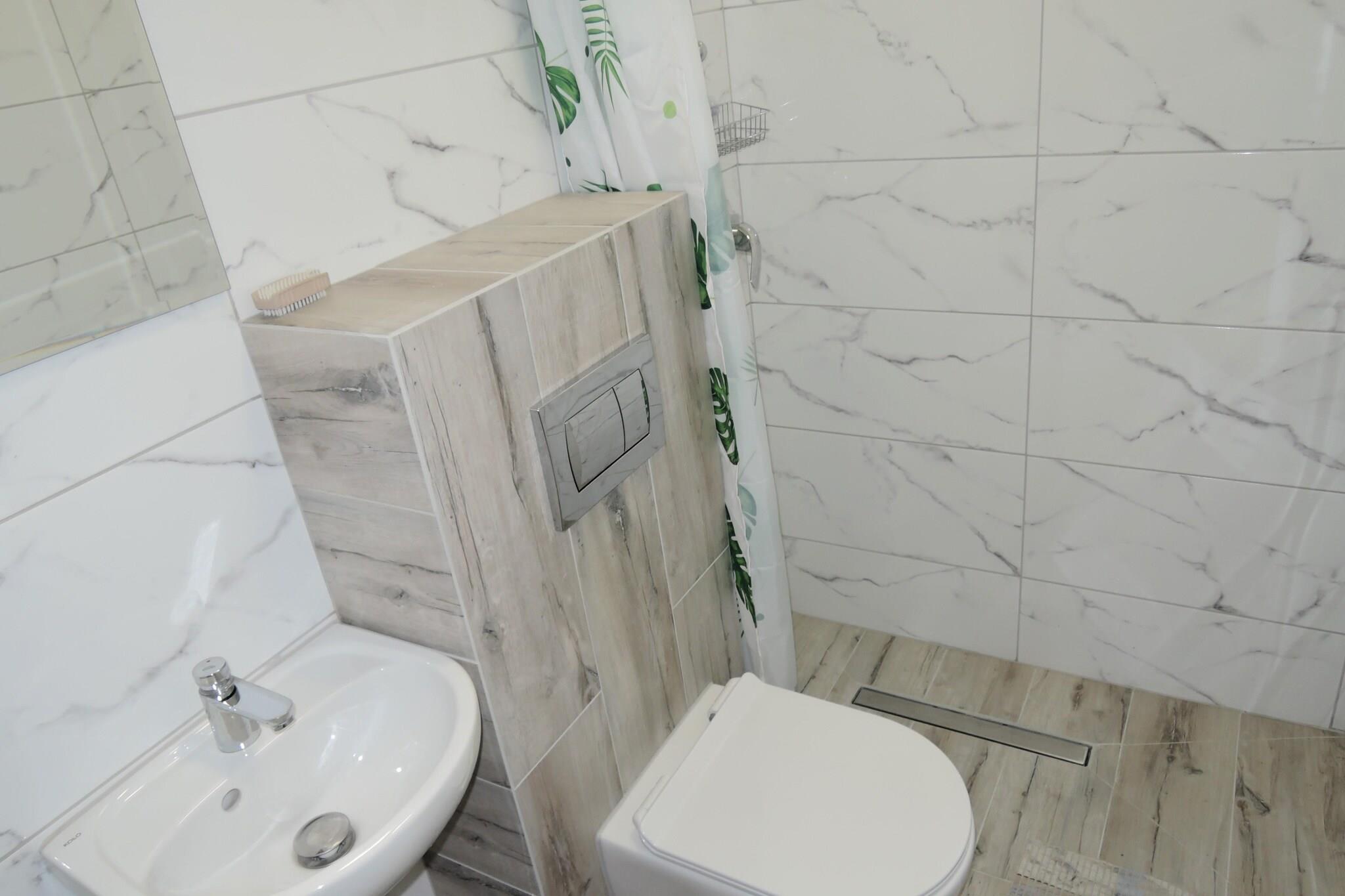 Die komfortable Ferienwohnung in Mrzezyno genießt eine einzigartige Lage direkt neben Sandstränden, umgeben von üppigen Wäldern, was sie zu einem idealen Ort für Entspannung, Erholung und Regeneration macht. Dank seiner Lage im Herzen des Resorts ist es ein hervorragender Ausgangspunkt, um die Stadt mit ihren Sommerattraktionen und malerischen Waldwegen und -straßen zu entdecken, die zu Spaziergängen und Radtouren inmitten der Natur einladen. Das Apartment bietet komfortable Bedingungen für Ihren Aufenthalt und verfügt über ein geräumiges Wohnzimmer mit bequemen Betten, verbunden mit einer ausgestatteten Küche, einschließlich Kühlschrank und Kaffeemaschine, sowie einem Badezimmer mit Dusche. Ein zusätzlicher Vorteil ist eine große Terrasse (im ersten Stock, gemeinsam mit anderen Gästen genutzt) mit einer Fläche von 40 m2, von der sich eine malerische Aussicht bietet, ideal für ein morgendliches Frühstück an der frischen Luft oder zum Entspannen am Abend. Bettwäsche ist im Apartment vorhanden. Darüber hinaus steht den Gästen ein Parkplatz sowie Breitband-Internet zur Verfügung.