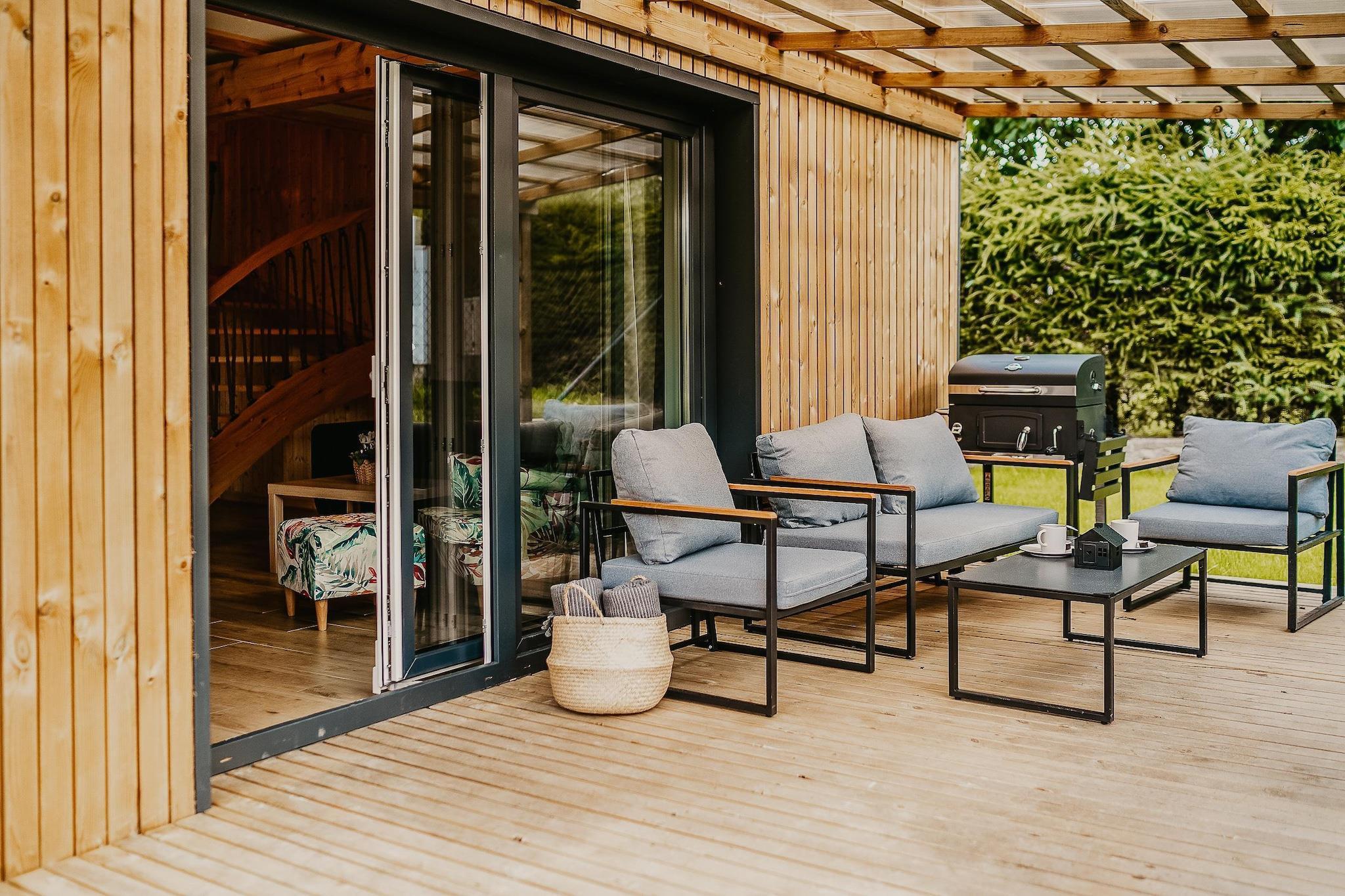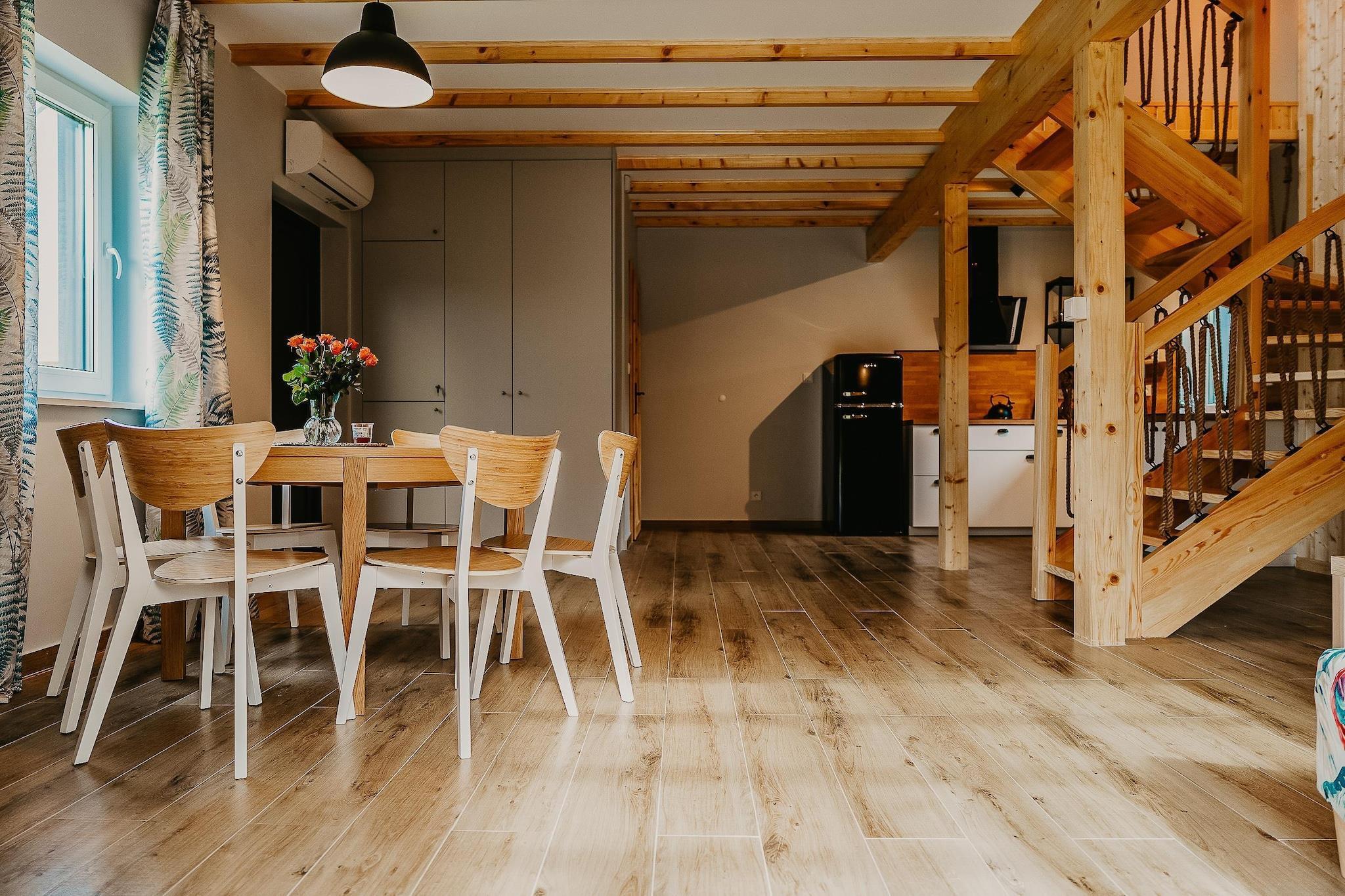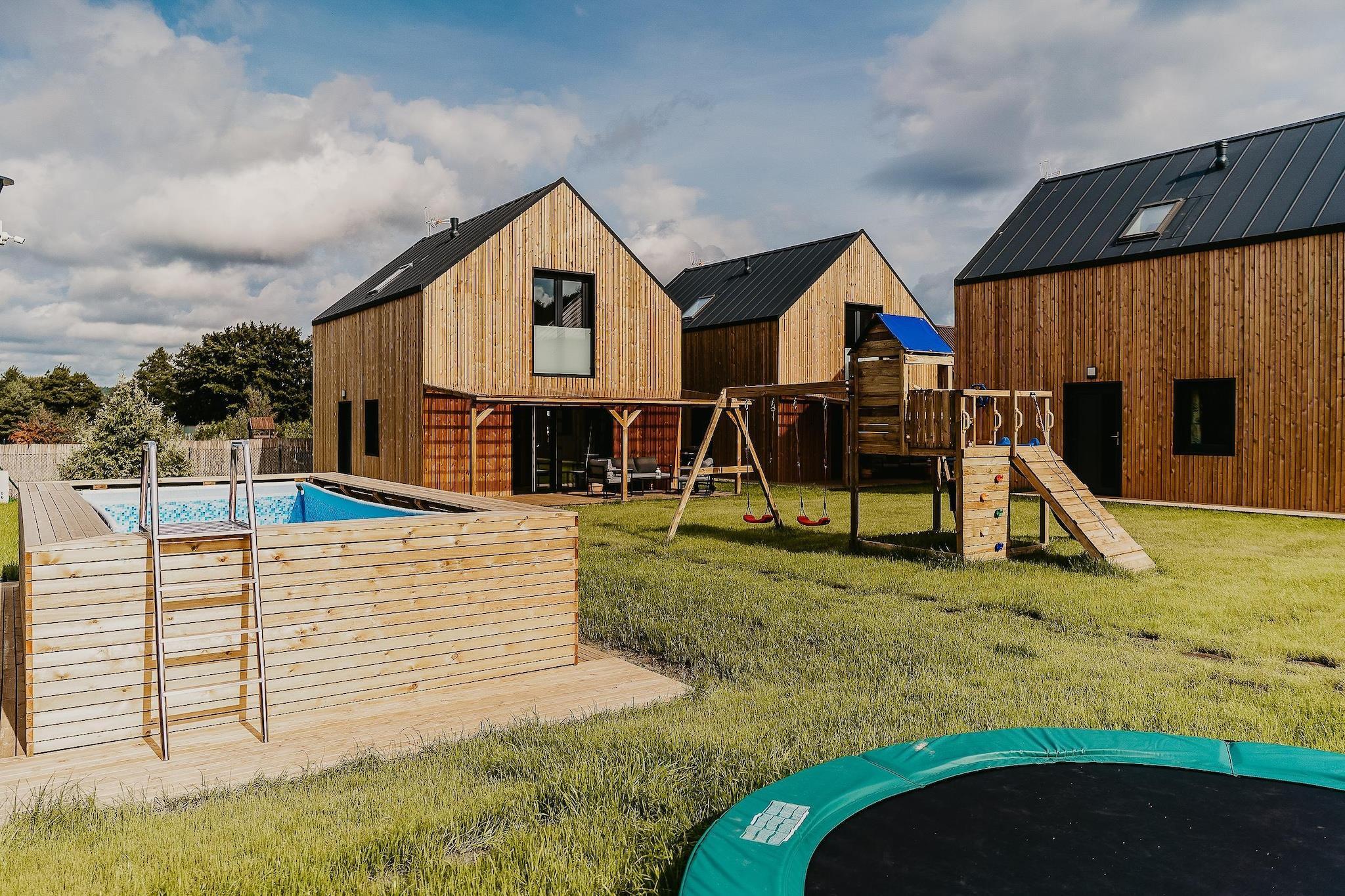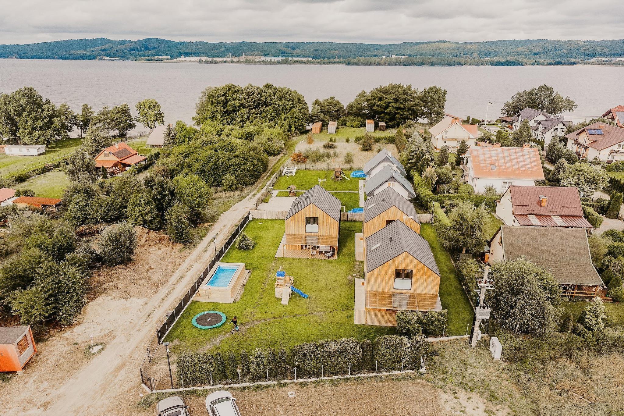 In der am Zarnowieckie-See gelegenen Stadt Nadole können sich die Gäste über drei neu gebaute Ganzjahreshäuser mit einer Fläche von jeweils 100 m² freuen. Unsere Häuser entsprechen den Standards ökologischer, energiesparender Gebäude. Ihre moderne Architektur und der großzügige Innenraum sorgen für Entspannung und komfortable Erholung. Von der Unterkunft aus haben Sie Zugang zu einem Privatstrand. Dank seiner großen Fläche bietet das Haus Platz für bis zu acht Personen. Im Erdgeschoss gibt es eine voll ausgestattete, moderne Küche, Toilette und ein geräumiges Wohnzimmer mit Zugang zur Terrasse. Im ersten Stock befinden sich zwei große Schlafzimmer und ein Badezimmer mit Dusche. Pro Ferienhaus stehen zwei Fahrräder sowie ein Kanu zur Verfügung. Die Ferienhäuser können das ganze Jahr über genutzt werden. Sie verfügen über eine Klimaanlage mit Heizmöglichkeit. Für unsere Gäste haben wir die Möglichkeit vorbereitet, einen beheizten Whirlpool zu buchen, der den Gästen das ganze Jahr über ohne Reservierungsgebühr zur Verfügung steht. Es fällt lediglich die Holzgebühr an. Das Schwimmbad steht in der Sommersaison zur Verfügung.