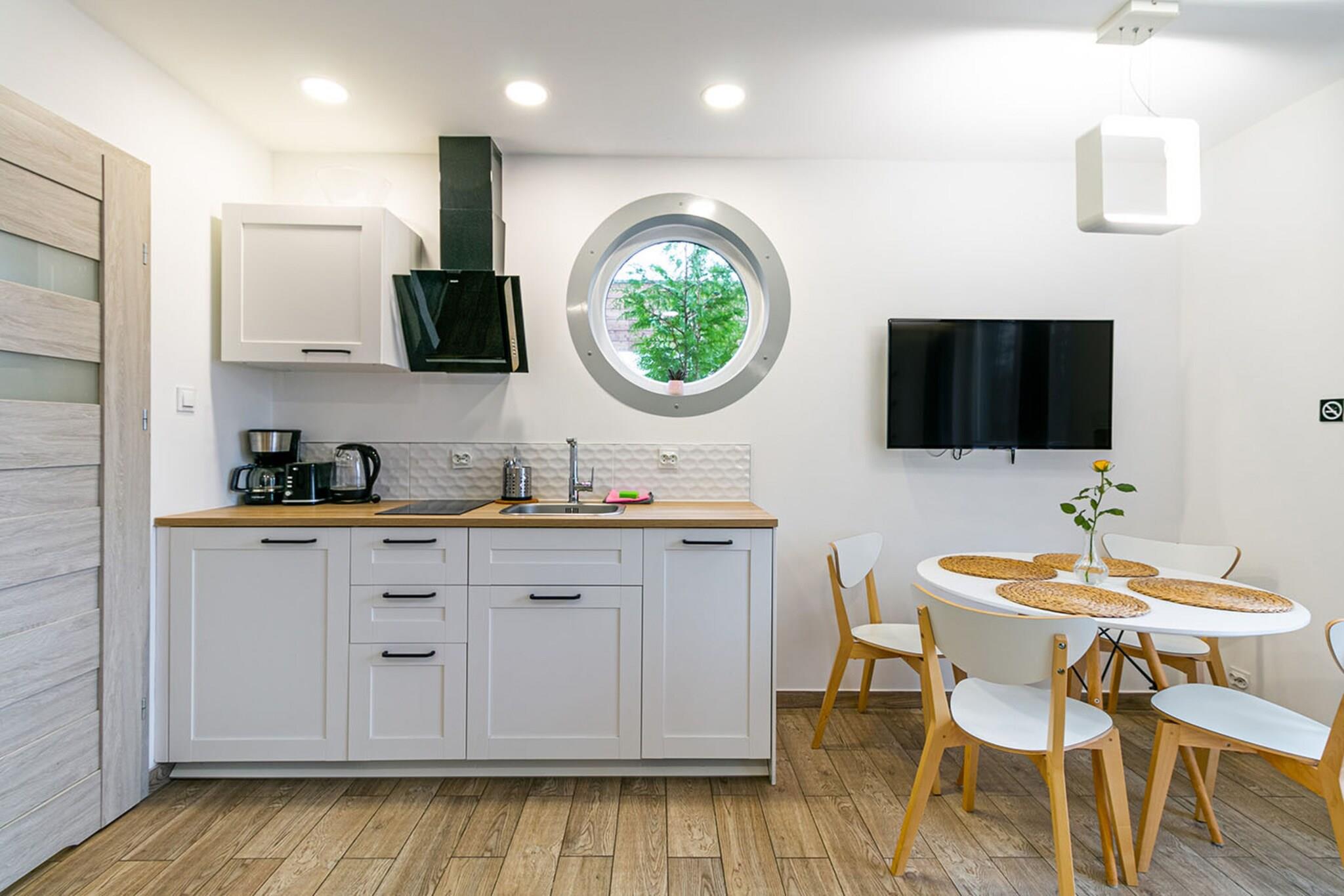 Ferienresort mit attraktiver Infrastruktur (u.a. Schwimmbad, Sauna, Whirlpool), 700 m vom Strand entfernt. Komfortable Wohnung im Erdgeschoss. Wohnzimmer mit Doppelschlafcouch, Tisch und Fernseher. Das Wohnzimmer ist mit der Küche verbunden. Zusätzlich gibt es ein Schlafzimmer mit Doppelbett und ein Badezimmer mit Dusche. Es gibt eine Klimaanlage und eine Fußbodenheizung. Zur Wohnung gehört eine Terrasse mit Gartenmöbeln und einem Elektrogrill. Kabelloses Internet. Das Resort verfügt über einen Außenpool mit beheiztem Wasser (vom 01.05 bis 30.09), eine Sauna (tägliche Sitzungen von 18:00 bis 20:00 Uhr im Aufenthaltspreis inbegriffen; private Sitzungen gegen Aufpreis), einen Whirlpool (gegen Aufpreis). ), Wellnessbereich (Massagen, Beautybehandlungen), Fahrrad- und Quadverleih, Outdoor-Fitnessstudio und Volleyballplatz. Im Garten gibt es Hängematten, Gartenpavillons, einen Teich mit Angelmöglichkeiten, einen attraktiven Spielplatz und einen Mini-Zoo. Es gibt sichere Parkplätze (gegen Aufpreis). Vor Ort gibt es ein Restaurant (im Sommer), in dem Sie ein Frühstücksbuffet und Mittagsgerichte bestellen können. Außerdem gibt es ein Café und eine Cocktailbar. Im Preis Ihres Aufenthaltes sind enthalten: Bettwäsche, Wasserverbrauch, Klimaanlage, Nutzung des Sommerschwimmbades (von Mai bis Ende September), tägliche Saunagänge (von 18:00 bis 20:00 Uhr), Internet. Niechorze ist ein Ferienort in der Woiwodschaft Westpommern. Sie liegt an der Küste der Ostsee und ist das Zentrum der malerischen Rewal-Küste. Niechorze bietet Touristen einen sauberen Strand und einen bewachten Badebereich. Hier gibt es auch eine Angelbasis, perfekt als Hintergrund für Erinnerungsfotos. Wenn Sie in der Nähe des Strandes sind, müssen Sie sich unbedingt das Wahrzeichen der Stadt ansehen. Es ist ein hoher Leuchtturm, der für Besucher geöffnet ist. Der Stolz der Stadt (und der gesamten Region) ist die renovierte Schmalspurbahn.