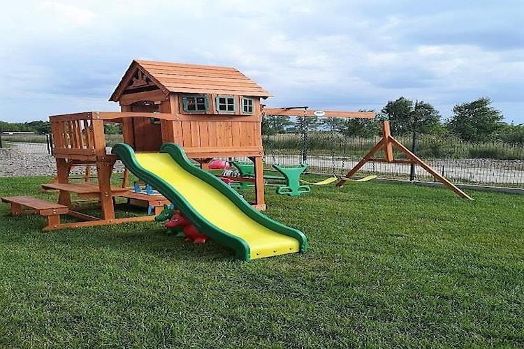 Parterre: (offene Küche(Wasserkocher, Kochendwasserhahn, Kochherd(2 Kochplatten, Induktion), Dunstabzugshaube, Espressomaschine, Spülmaschine, Kühl-/Gefrierkombination), Wohn-/Schlafzimmer(Doppelschlafcouch, TV, Esstisch), Badezimmer(Dusche, Waschbecken, Toilette)) In der 1. Etage: (Schlafzimmer(Doppelbett, Doppelbett), Schlafzimmer(Einzelbett, Doppelbett)) Terrasse, Garten, Gartenmöbel, Liegen, Grill, Parkplatz, Spielgeräte, Rutsche, Hochstuhl, Schaukel