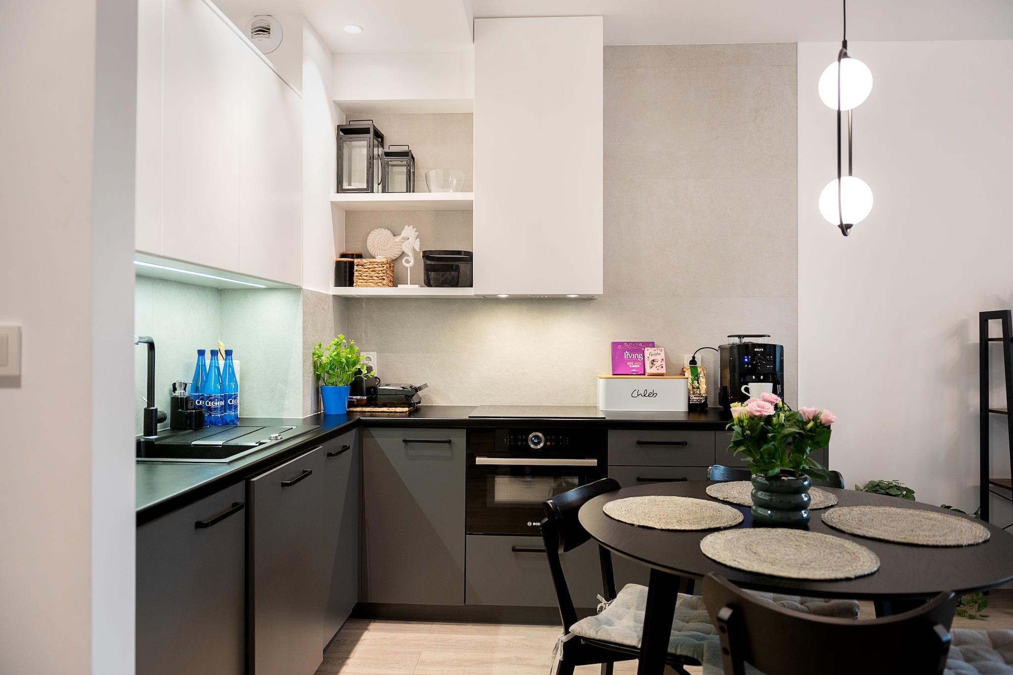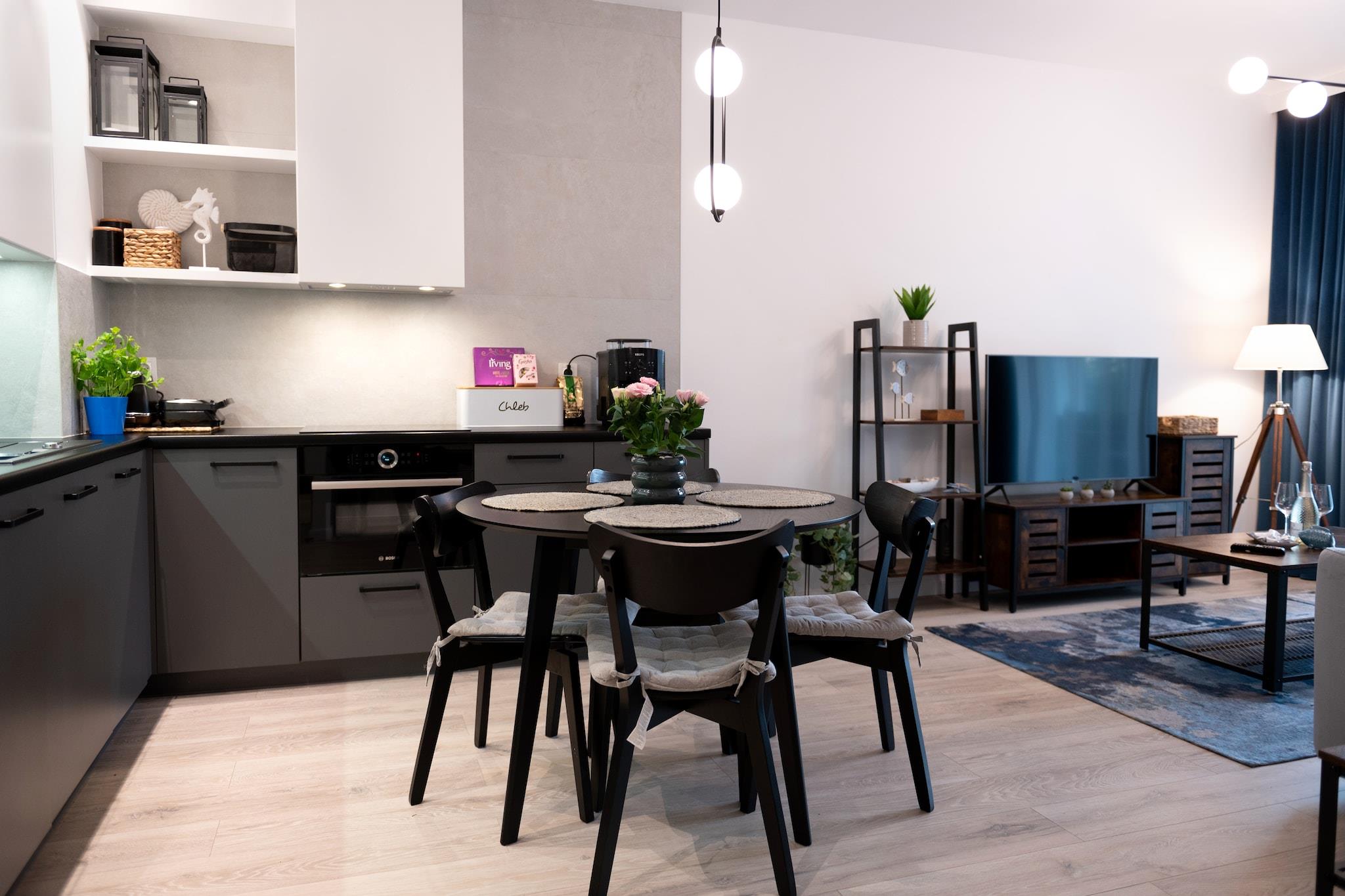 Apartmentkomplex in einem attraktiven Badeort - Niechorze. Perfekte Lage, direkt am Strand, im Zentrum der Stadt. Viele Restaurants, Bars und Geschäfte in der Nähe. 400 m bis zum See Liwia Luza, wo es Rastbrücken gibt (Naturschutzgebiet). Geräumige und komfortable Wohnung im Erdgeschoss. Es besteht aus einem Wohnzimmer, das mit der Küche verbunden ist, einem Schlafzimmer und einem Badezimmer mit Dusche (es gibt auch eine Waschmaschine). Das Wohnzimmer verfügt über ein Doppelschlafsofa, einen Tisch mit Stühlen und einen Fernseher. Im Schlafzimmer steht ein Doppelbett. Die Küche ist perfekt ausgestattet (u.a. Backofen, 4-Flammen-Herd, Mikrowelle, Geschirrspüler). Die Wohnung verfügt über eine überdachte Terrasse mit Loungemöbeln und einem kleinen privaten Gartenstück. Zentralheizung. WLAN ist verfügbar. Auch mit Bügeleisen und Bügelbrett ausgestattet. Kostenlose Parkplätze stehen vor Ort zur Verfügung. Im Preis des Aufenthalts sind enthalten: Strom, Wasser, Internet, Parkplatz. Babybett und Hochstuhl sind auf vorherige Anfrage erhältlich. Niechorze ist ein Ferienort in der Woiwodschaft Westpommern. Es liegt am Ufer der Ostsee und ist das Zentrum der malerischen Rewal-Küste. Wie es sich für eine Küstenstadt gehört, bietet Niechorze den Touristen einen sauberen Strand und einen bewachten Badebereich. Hier gibt es auch einen Angelstützpunkt, der sich perfekt als Hintergrund für Erinnerungsfotos eignet. Da Sie sich in der Nähe des Strandes befinden, müssen Sie unbedingt das Wahrzeichen der Stadt sehen. Es ist ein hoher Leuchtturm, der für Besucher geöffnet ist. Der Stolz der Stadt (und eigentlich der gesamten Region) ist die renovierte Schmalspurbahn, die Ihnen einen reizvollen Ausflug in benachbarte Ferienorte ermöglicht. Im Resort lohnt sich ein Besuch des Meeresfischereimuseums und des Ozeanariums.