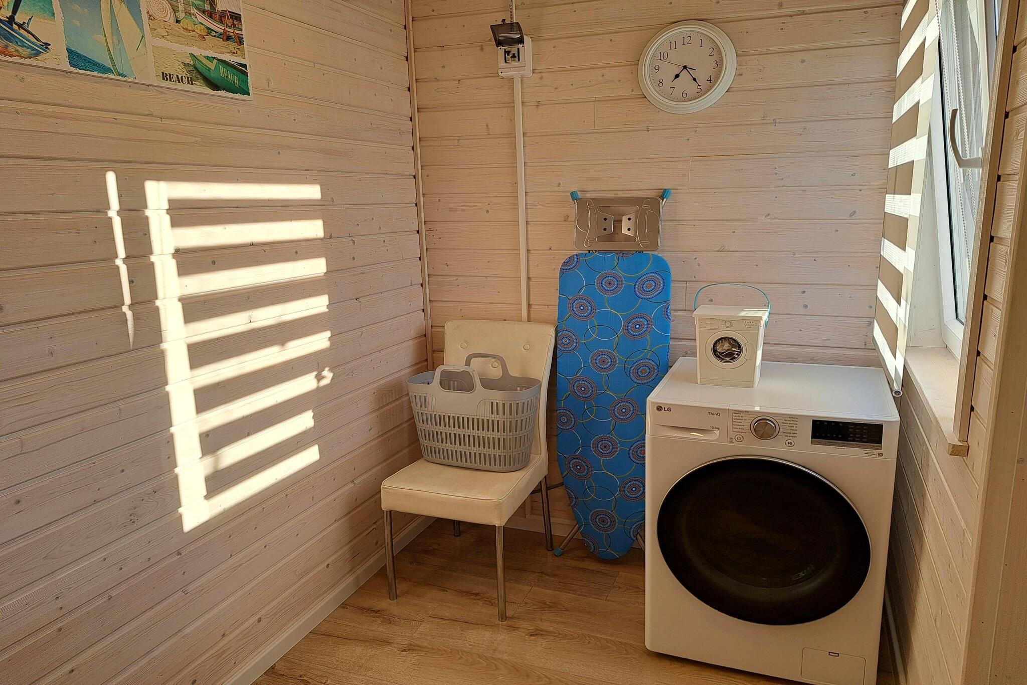 Parterre: (offene Küche(Wasserkocher, Kochendwasserhahn, Toaster, Kochherd(2 Kochplatten, Induktion), Espressomaschine, Mikrowelle, Spülmaschine, Kühl-/Gefrierkombination), Wohn-/Schlafzimmer(Doppelschlafcouch, TV(Deutsch Fernsehsender), Esstisch), Badezimmer(Dusche, Waschbecken, Toilette)) In der 1. Etage: (Schlafzimmer(Einzelbett, Doppelbett), Schlafzimmer(Einzelbett, Doppelbett)) Garten(Gemeinschaftliche Nutzung mit anderen Gästen, umzäunt, angelegt, illuminiert, 1000 m2), Gartenmöbel, Grill, Spielgeräte