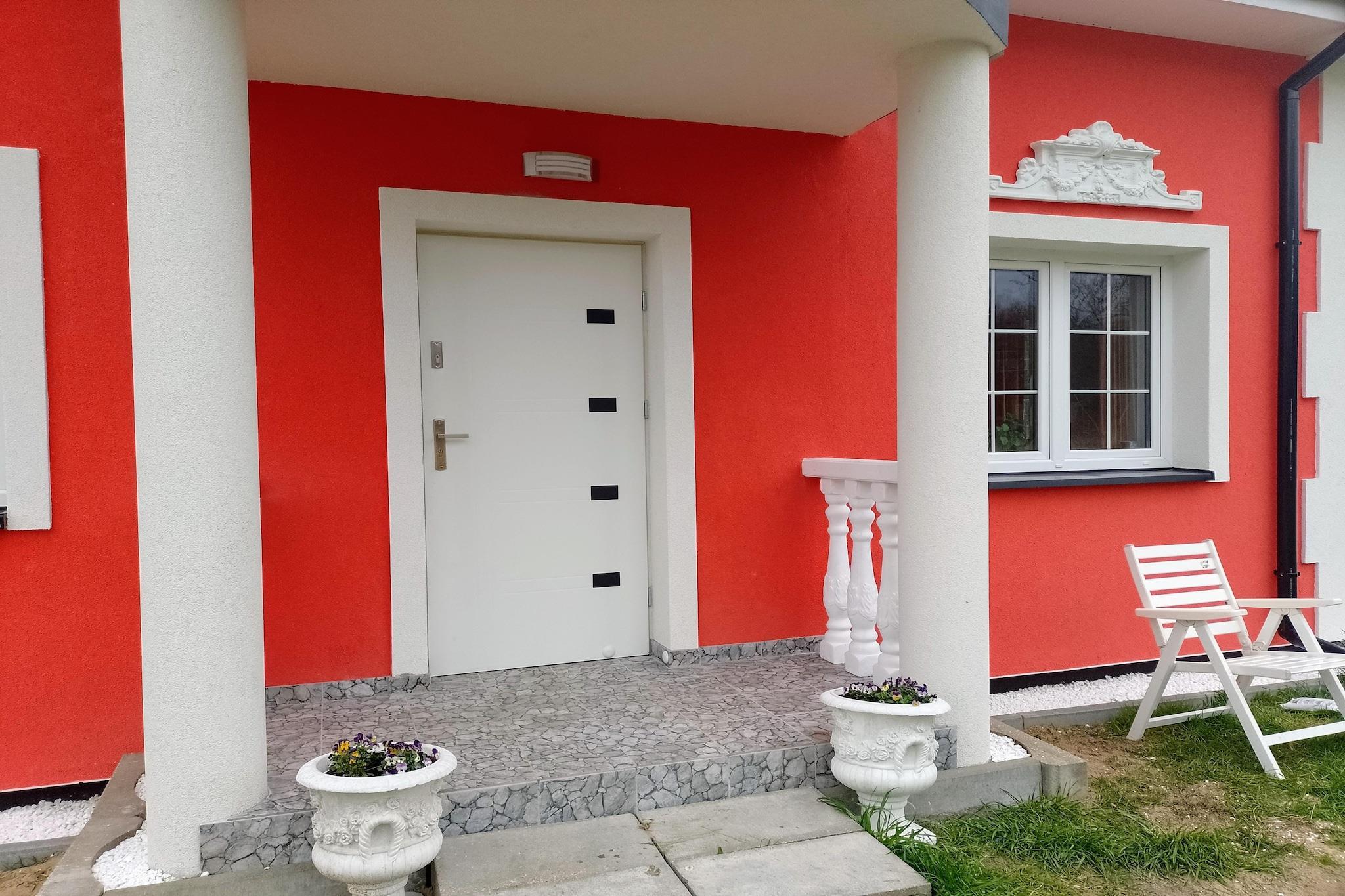 Neugebautes, freistehendes Ferienhaus im malerischen Nowe Warpno. Hier können Sie entspannte Urlaubstage an der frischen Luft verbringen, denn eine überdachte Terrasse, ein Balkon und ein Grillplatz laden zu gemeinsamen Stunden ein. Machen Sie es sich bei kühlerem Wetter oder am Abend auf dem Spaziergang zum Hafen gemütlich und schmieden Sie Pläne für den nächsten Urlaubstag. Nowe Warpno ist eine beschauliche Kleinstadt in Westpommern. Ruhesuchende und Naturliebhaber kommen in der unberührten Natur auf ihre Kosten. Aktivitäten in der Nähe: Von Ihrem Ferienhaus sind es nur wenige Minuten bis ins Stadtzentrum. Angeln können Sie an vielen Stellen rund um den Hafen und es gibt auch ein Fischrestaurant. Auch auf ausgedehnten Radtouren können Sie die Natur der Umgebung erkunden. Nebenkosten vor Ort zahlbar: Kaution: 200 EUR. Kurtaxe: 0,80 EUR/p.P./.Tag