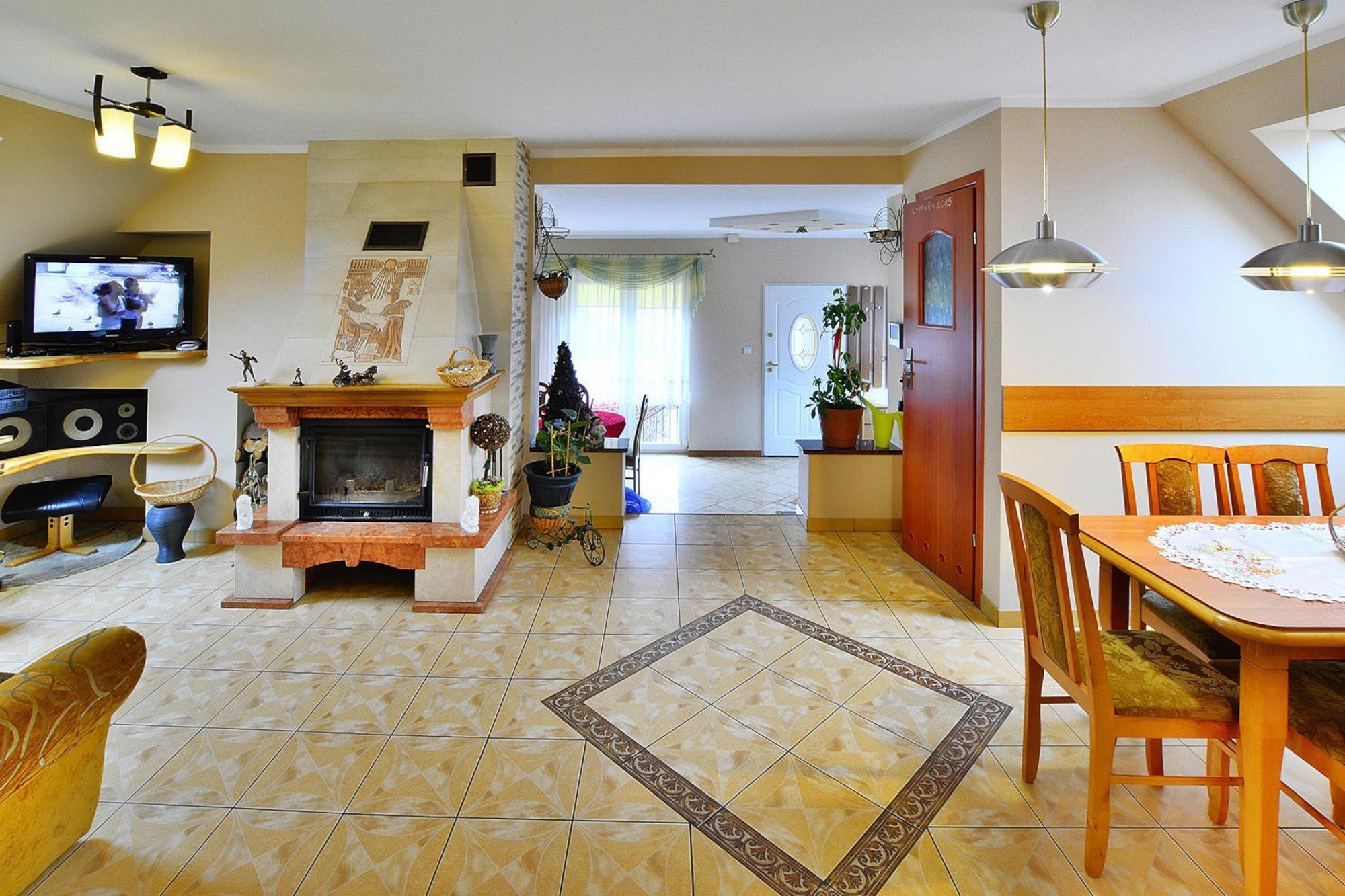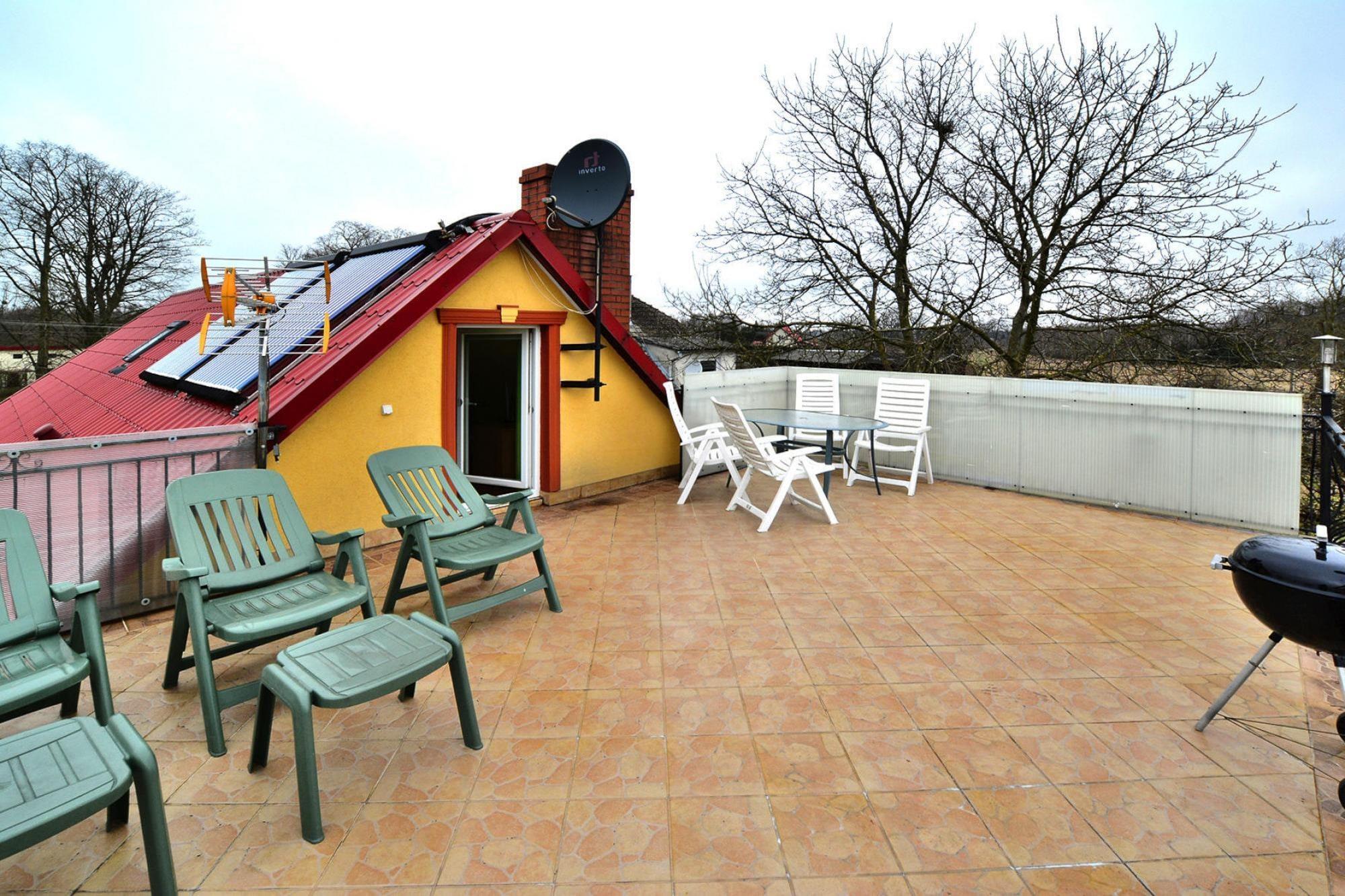 Ein Familienferienkomplex im ruhigen Dorf Ostrowiec Slawienski. Am See gibt es einen Privatstrand. Das Zentrum ist von Wiesen, Feldern und Wäldern umgeben, wo Sie im Kontakt mit der Natur entspannen, Spaziergänge und Radtouren unternehmen können. Für diejenigen, die sich nach einem Blick auf das Meer sehnen, ist das nächste Ostseebad (Darlowo) eine 25-minütige Autofahrt entfernt. Ein komfortables, zweistöckiges Backsteinhaus am Ufer des Sees. Das Ferienhaus verfügt über 4 separate Schlafzimmer. Außerdem gibt es ein Wohnzimmer mit Kamin, ein Esszimmer mit einem großen Tisch für alle Gäste, eine gut ausgestattete Küche und 2 Badezimmer (davon 1 mit Dusche und 1 mit Badewanne). Das Haus verfügt im ersten Stock über eine große Terrasse mit Panoramablick auf den See. Dort wartet ein Satz Gartenmöbel auf Sie. Das Erholungsgebiet ist eingezäunt und schön angelegt. Es gibt einen bequemen Abstieg zum See (mit Angelsteg), einen überdachten Unterstand und einen Platz für ein Lagerfeuer. Am Ufer des Sees steht den Gästen eine Reihe von Kajaks, Booten und Tretbooten zur Verfügung (gegen Gebühr). Außerdem gibt es ein Haus mit Gartenküche, Grillplatz, Räucherei, Volleyballplatz, Billard, Tischtennisplatte, Basketballkorb und Darts. Für Kinder gibt es einen attraktiven Spielplatz und im Sommer auch ein Sommerschwimmbad. Eine Waschmaschine steht vor Ort zur Verfügung (gegen Gebühr). Im Preis des Aufenthalts sind enthalten: Bettwäsche, Strom-, Wasser- und Gasverbrauch, Holz, Endreinigung, Internet, Parkplatz. Der Ostrowieckie-See, an dem sich das Ferienresort befindet, eignet sich hervorragend zum Angeln, Schwimmen und für Wassersport. Im Stausee dominieren Hechte, Brassen, Barsche und Rotaugen. Es gibt auch Aale und Zander. Eine Angelerlaubnis können Sie vor Ort kaufen und erhalten.