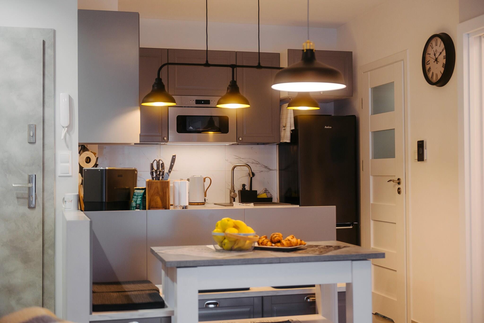 Lage in einer ruhigen Gegend, 450 m vom Meer entfernt. Ca. 500 m zum Zentrum. Die moderne Apartmentanlage ist ein idealer Ort für einen Urlaub. Die Ferienwohnung besteht aus einem mit der Küche verbundenen Wohnzimmer, 2 separaten Schlafzimmern und einem Badezimmer mit Dusche. Das Wohnzimmer verfügt über ein Doppelschlafsofa und einen Fernseher. Die Küche ist perfekt ausgestattet (u.a. Backofen, Herd, Mikrowelle, Geschirrspüler, Kaffeemaschine). Das große Schlafzimmer verfügt über ein bequemes Doppelbett. Das kleinere Schlafzimmer verfügt über ein Einzelbett und ein zusätzliches Klappbett für 1 Person. Die Wohnung ist mit einer Waschmaschine, einem Bügeleisen und einem Haartrockner ausgestattet. Es gibt einen großen Balkon. Zentralheizung. WLAN verfügbar. Der Komplex verfügt über ein Hallenbad. Die Nutzung ist für Gäste kostenfrei. Im Preis des Aufenthalts sind enthalten: Strom- und Wasserverbrauch, Schwimmbad, Internet, Parkplatz, Babybett und Hochstuhl (vorherige Reservierung erforderlich). Pobierowo ist ein Badeort mit einem sauberen Strand und einem bewachten Badebereich. Hier gibt es auch einen Angelstützpunkt, der sich perfekt als Hintergrund für Erinnerungsfotos eignet. Pobierowo ist ein perfekter Ort für Kinder, Sportler und Verliebte. Hier gibt es viele romantische Orte für zwei. Es gibt ein Papageienhaus, ein Ozeanarium und riesige aufblasbare Spielplätze. Kinder werden sich über einen Besuch im Walpark im nahegelegenen Rewal (ca. 7 km) freuen. Der Stolz der Stadt und der gesamten Region ist die renovierte Schmalspurbahn, die Ihnen einen reizvollen Ausflug in benachbarte Ferienorte ermöglicht.