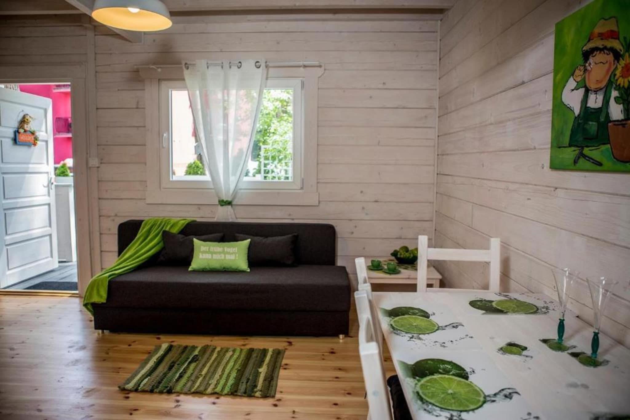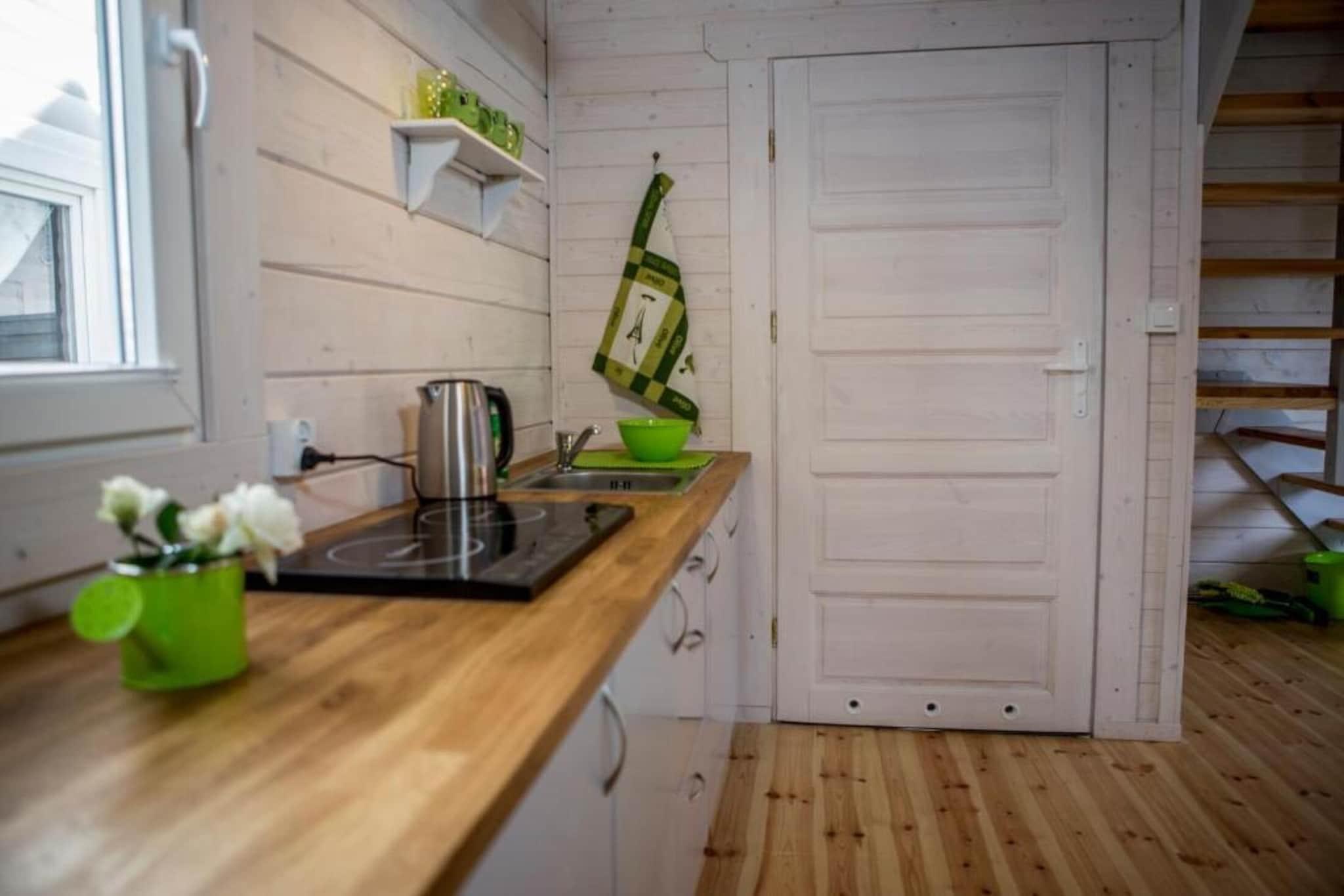 Parterre: (offene Küche(Kochplatte(2 Kochplatten, Induktion), Wasserkocher, Toaster, Kaffeemaschine, Mikrowelle, Kühl-/Gefrierkombination), Wohn/Esszimmer(Schlafcouch 1 Pers., TV(Flatscreen), Esstisch(6 Personen)), Badezimmer(Dusche, Waschbecken, Toilette)) In der 1. Etage: (Schlafzimmer(Doppelbett), Schlafzimmer(Einzelbett, Einzelbett)) Internet, Spielplatz, Liegewiese, Heizung(elektrisch), Terrasse(überdacht), Garten(Gemeinschaftliche Nutzung mit anderen Gästen, umzäunt), Gartenmöbel, Grill(Holzkohle), Parkplatz, Rutsche(Gemeinschaftliche Nutzung mit anderen Gästen), Hochstuhl, Gartenhaus, Schaukel, Babybett (kostenlos)