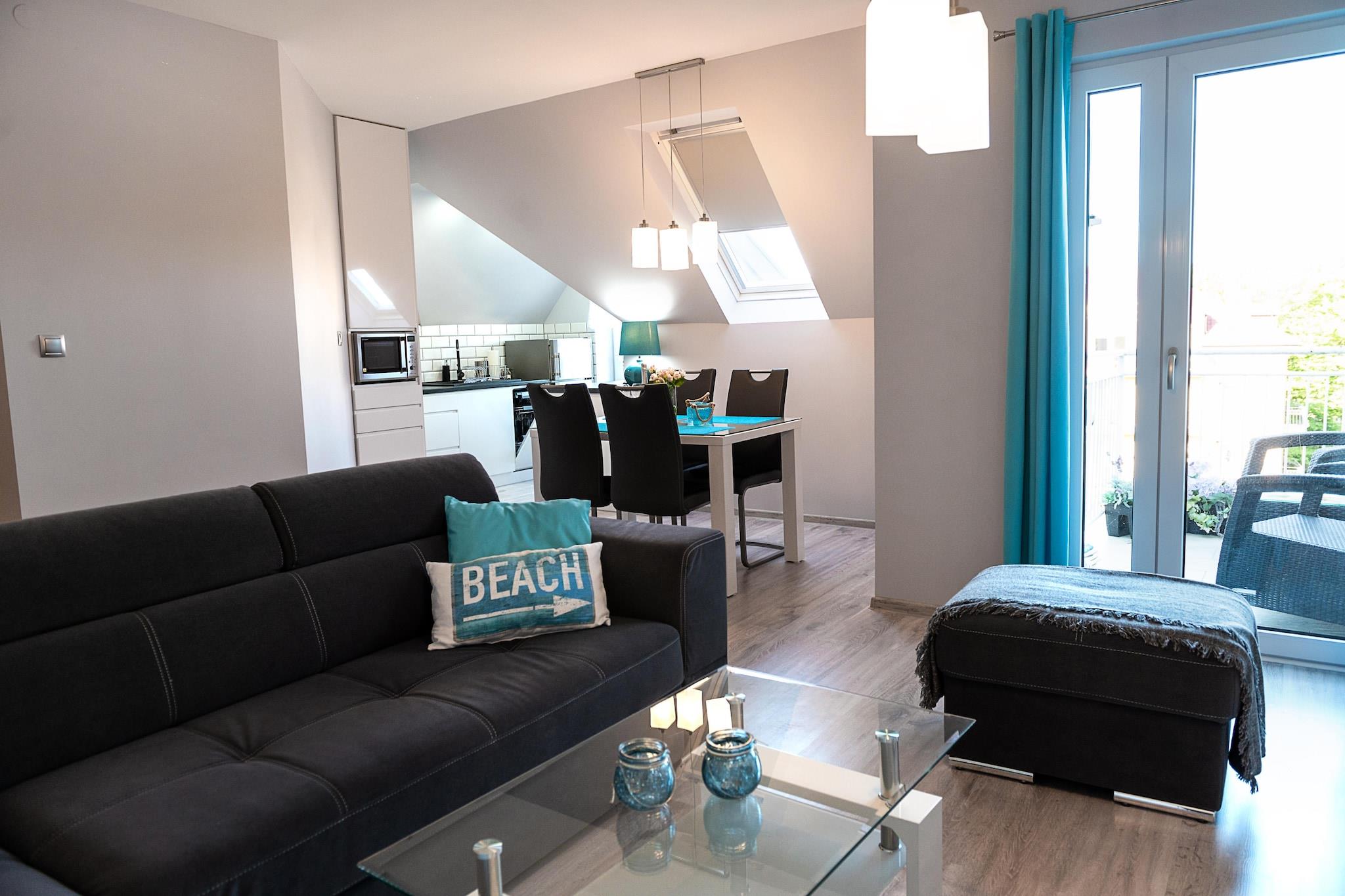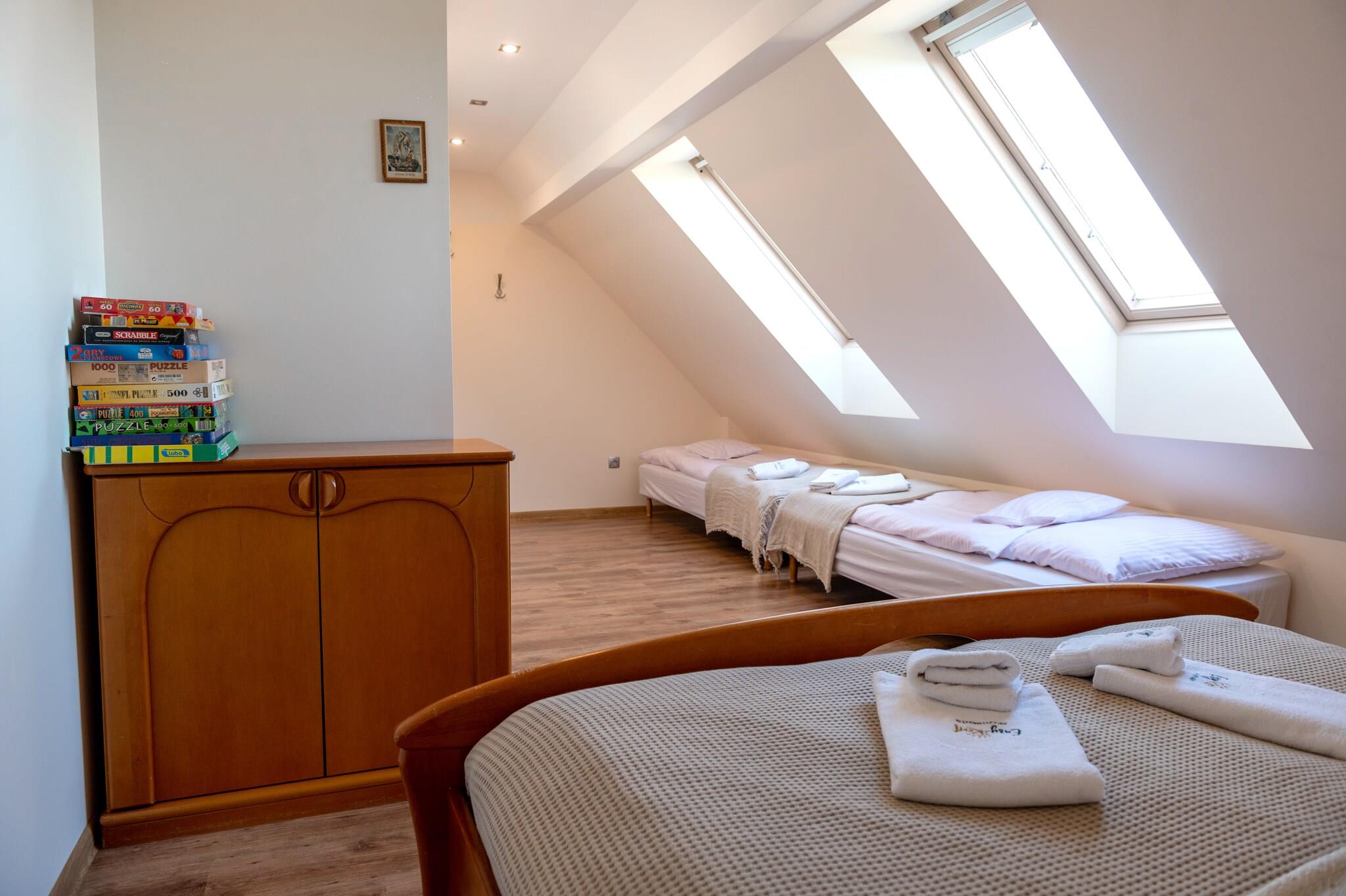 Die gemütliche Ferienapartmentanlage liegt im Zentrum des Ortes, 190 m vom Meeresstrand entfernt. In unmittelbarer Nähe befinden sich Restaurants, die hausgemachte Speisen servieren. Es gibt auch Cafés und Souvenirläden. Großes, komfortables Apartment auf 2 Ebenen. Es befindet sich im dritten und vierten Stock des Gebäudes (es gibt keinen Aufzug). Auf der unteren Ebene der Wohnung gibt es ein geräumiges Wohnzimmer, das mit einer gut ausgestatteten Küche und einem Badezimmer mit Dusche verbunden ist (es gibt auch eine Waschmaschine). Das Wohnzimmer verfügt über ein Doppelschlafsofa und einen Fernseher. Die obere Ebene verfügt über 2 separate Schlafzimmer. Zur Wohnung gehört eine kleine Terrasse mit Gartenmöbeln. Zentralheizung. WLAN ist verfügbar. Im Preis des Aufenthalts sind enthalten: Strom- und Wasserverbrauch, Parkplatz, Internet. Ein Babybett und ein Hochstuhl sind auf Anfrage erhältlich. Pobierowo ist ein Ferienort in der Woiwodschaft Westpommern. Es liegt am Ufer der Ostsee, im Zentrum der malerischen Rewal-Küste. Wie es sich für eine Küstenstadt gehört, bietet Pobierowo den Touristen einen sauberen Strand und einen bewachten Badebereich. Hier gibt es auch einen Angelstützpunkt, der sich perfekt als Hintergrund für Erinnerungsfotos eignet. Kinder freuen sich über einen Besuch im Walpark im nahegelegenen Rewal (ca. 7 km) mit echten Meeresriesen. Bei schlechtem Wetter bietet sich ein Ausflug in eines der mehreren öffentlichen Hallenbäder an. Auch der Seilpark bietet fantastische Unterhaltung für die ganze Familie oder eine Gruppe von Freunden. Der Stolz der Stadt und der gesamten Region ist die renovierte Schmalspurbahn, die Ihnen einen reizvollen Ausflug in benachbarte Ferienorte ermöglicht.