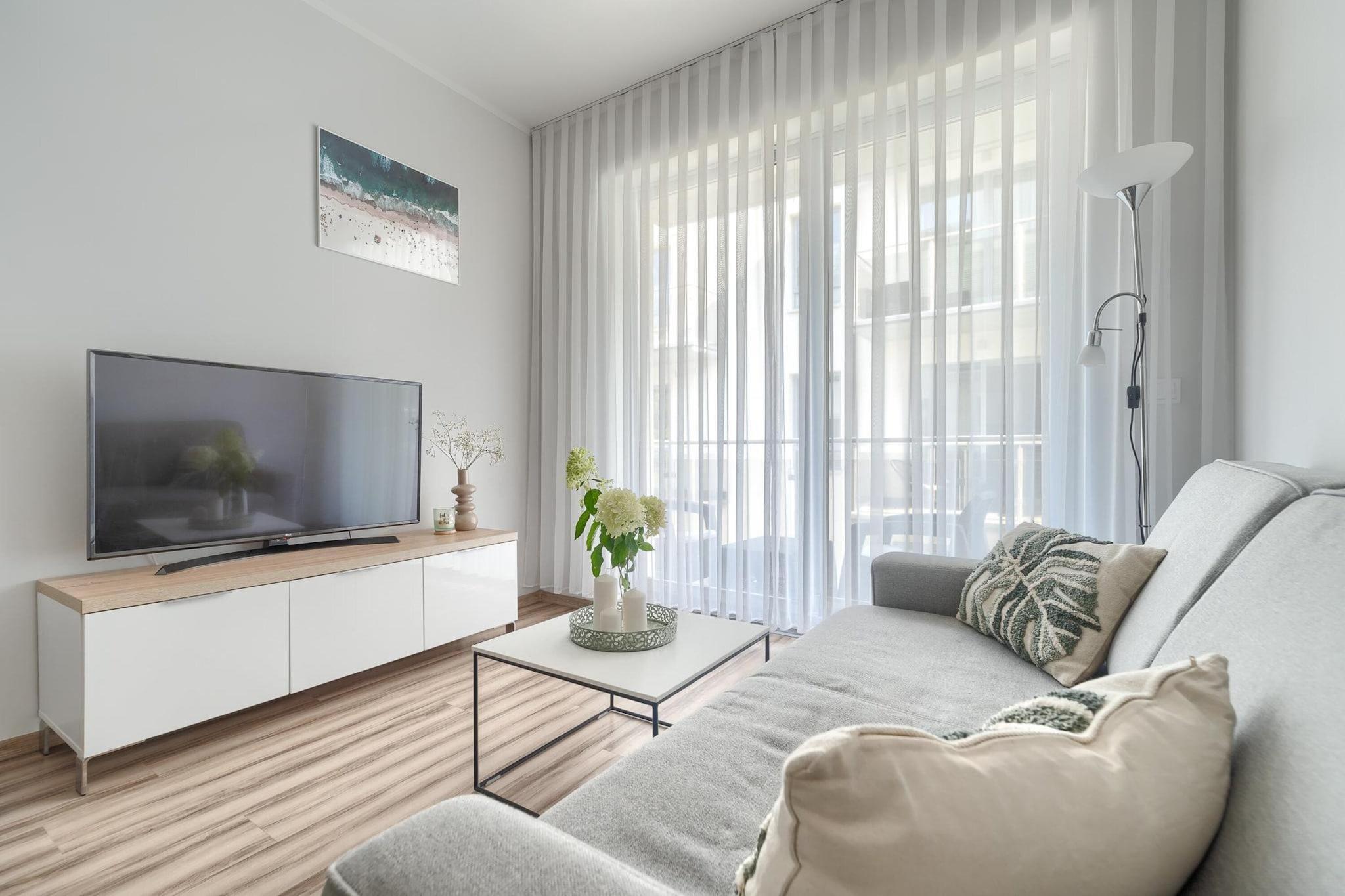 Eine gemütliche Ferienapartmentanlage im Zentrum des Ferienortes, 70 m vom Strand entfernt. Cafés und Restaurants in unmittelbarer Nähe. Daneben befindet sich ein Hotel mit SPA-Einrichtungen (Hallenbad, Sauna, Whirlpool), wo Sie diese Attraktionen gegen eine zusätzliche Gebühr nutzen können. Komfortable Wohnung für 4 Personen im ersten Stock. Es verfügt über einen geräumigen Balkon mit Gartenmöbeln. Die Wohnung besteht aus einem Wohnzimmer, einer gut ausgestatteten Küche, einem Schlafzimmer und einem Badezimmer mit Dusche. Das Wohnzimmer verfügt über ein Doppelschlafsofa, einen Fernseher und einen Tisch mit Stühlen. Zentralheizung. WLAN ist verfügbar. Im eingezäunten Bereich der Anlage befindet sich ein sicherer Parkplatz. Im Preis Ihres Aufenthaltes ist 1 Parkplatz inbegriffen. Im Preis des Aufenthalts sind enthalten: Strom- und Wasserverbrauch, Heizung, Parkplatz, Internet. Ein Babybett und ein Hochstuhl sind auf Anfrage erhältlich. Pobierowo ist ein Ferienort in der Woiwodschaft Westpommern. Es liegt am Ufer der Ostsee, im Zentrum der malerischen Rewal-Küste. Wie es sich für eine Küstenstadt gehört, bietet Pobierowo den Touristen einen sauberen Strand und einen bewachten Badebereich. Hier gibt es auch einen Angelstützpunkt, der sich perfekt als Hintergrund für Erinnerungsfotos eignet. Kinder freuen sich über einen Besuch im Walpark im nahegelegenen Rewal (ca. 7 km) mit echten Meeresriesen. Bei schlechtem Wetter bietet sich ein Ausflug in eines der mehreren öffentlichen Hallenbäder an. Auch der Seilpark bietet fantastische Unterhaltung für die ganze Familie oder eine Gruppe von Freunden. Der Stolz der Stadt und der gesamten Region ist die renovierte Schmalspurbahn, die Ihnen einen reizvollen Ausflug in benachbarte Ferienorte ermöglicht.