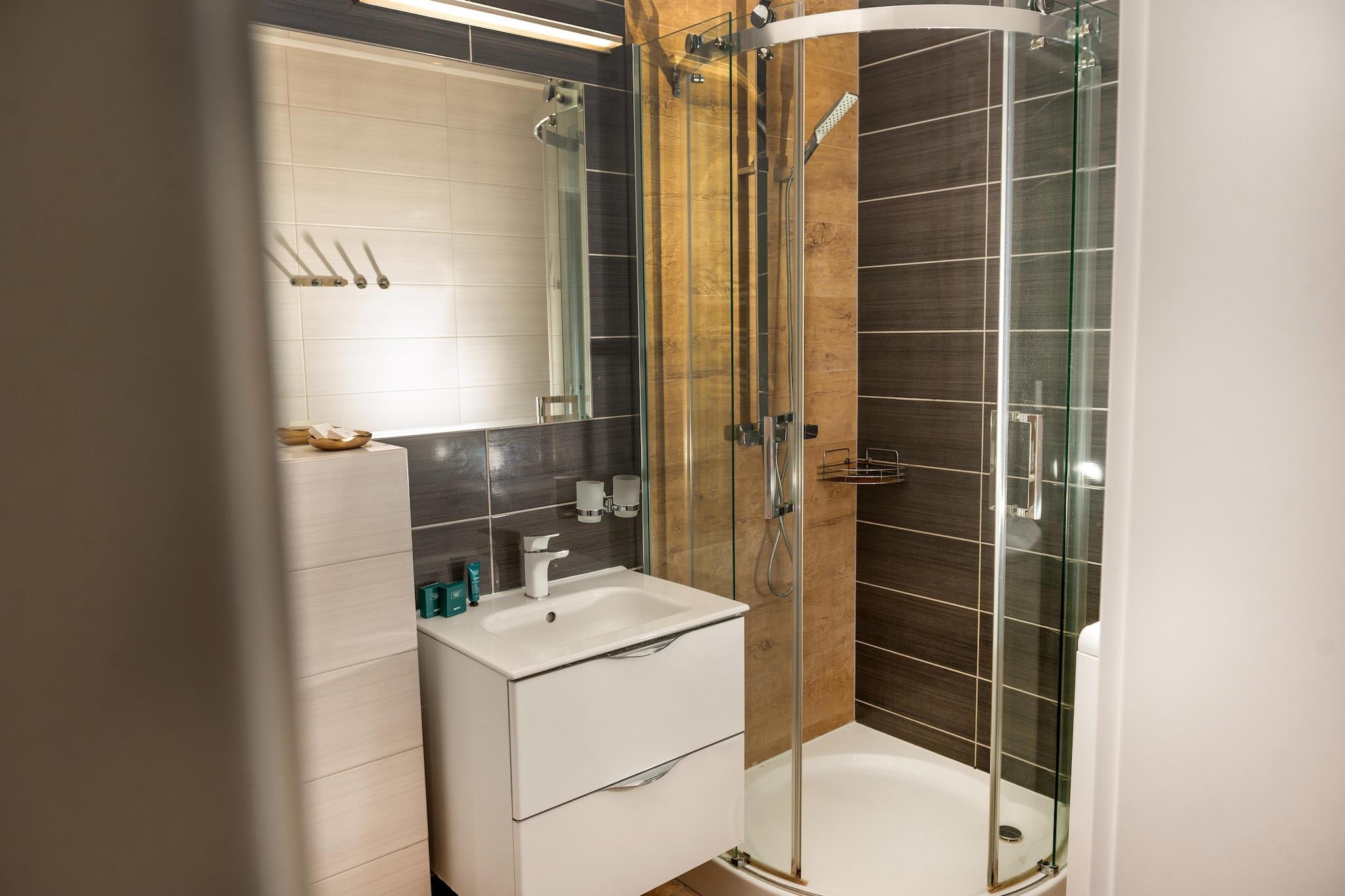 Komplex von Ferienwohnungen im Zentrum des Ortes, 70 m vom Meeresstrand entfernt. Cafés und Restaurants in unmittelbarer Nähe. In der Nähe gibt es auch ein Hotel mit SPA-Einrichtungen (Hallenbad, Sauna, Whirlpool), wo Sie diese Attraktionen gegen eine zusätzliche Gebühr nutzen können. Im Erdgeschoss befindet sich eine gemütliche 2-Zimmer-Wohnung. Es besteht aus einem geräumigen Wohnzimmer, das mit der Küche verbunden ist, einem Schlafzimmer und einem Badezimmer mit Dusche (es gibt auch eine Waschmaschine). Die Küche ist perfekt ausgestattet. Das Wohnzimmer verfügt über einen Fernseher, einen Tisch mit Stühlen, ein 2-Sitzer-Sofa und einen 1-Sitzer-Sessel. Die Wohnung verfügt über eine sehr große Terrasse mit Gartenmöbeln. Zentralheizung. WLAN ist verfügbar. Im Preis des Aufenthalts sind enthalten: Strom- und Wasserverbrauch, Parkplatz, Internet. Babybett und Hochstuhl auf Anfrage erhältlich. Pobierowo ist ein Ferienort in der Woiwodschaft Westpommern. Es liegt am Ufer der Ostsee, im Zentrum der malerischen Rewal-Küste. Wie es sich für eine Küstenstadt gehört, bietet Pobierowo den Touristen einen sauberen Strand und einen bewachten Badebereich. Hier gibt es auch einen Angelstützpunkt, der sich perfekt als Hintergrund für Erinnerungsfotos eignet. Kinder freuen sich über einen Besuch im Walpark im nahegelegenen Rewal (ca. 7 km) mit echten Meeresriesen. Bei schlechtem Wetter bietet sich ein Ausflug in eines der mehreren öffentlichen Hallenbäder an. Auch der Seilpark bietet fantastische Unterhaltung für die ganze Familie oder eine Gruppe von Freunden. Der Stolz der Stadt und der gesamten Region ist die renovierte Schmalspurbahn, die Ihnen einen reizvollen Ausflug in benachbarte Ferienorte ermöglicht.