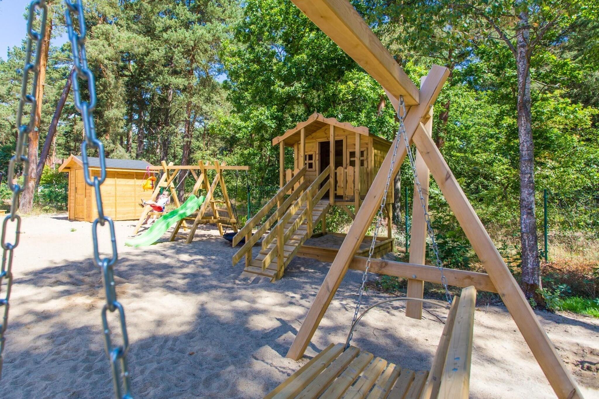 Parterre: (offene Küche(Kochplatte(2 Kochplatten, Induktion), Wasserkocher, Spülmaschine, Kühl-/Gefrierkombination), Wohn/Esszimmer(Doppelschlafcouch, TV(Flatscreen), Esstisch(6 Personen)), Badezimmer(Dusche, Waschbecken, Toilette)) In der 1. Etage: (Schlafzimmer(Doppelbett), Schlafzimmer(Einzelbett, Einzelbett)) Spielplatz, Liegewiese, Terrasse(überdacht), Garten(Gemeinschaftliche Nutzung mit anderen Gästen, umzäunt), Gartenmöbel, Liegen, Sandkasten(Gemeinschaftliche Nutzung mit anderen Gästen), Rutsche(Gemeinschaftliche Nutzung mit anderen Gästen), Hochstuhl, Schaukel, Babybett (kostenlos)