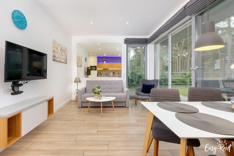 Komplex von Ferienwohnungen im Zentrum des Ortes, nur 70 m vom Strand entfernt. In unmittelbarer Nähe befinden sich Cafés und Restaurants, sowie ein Hotel mit SPA-Einrichtungen (Hallenbad, Sauna, Whirlpool). Die komfortable Ferienwohnung bietet Platz für 4 Personen. Es befindet sich im Erdgeschoss und verfügt über eine große überdachte Terrasse mit Gartenmöbeln und einen kleinen privaten Garten. Die Wohnung besteht aus einem Wohnzimmer, einer Küche, einem Schlafzimmer und einem Badezimmer mit Dusche. Das Wohnzimmer verfügt über ein Doppelschlafsofa, einen Fernseher und einen Tisch mit Stühlen. Zur Ausstattung gehört eine Waschmaschine. Zentralheizung. Es gibt WLAN. Es gibt Parkplätze. Im Preis des Aufenthalts sind enthalten: Strom- und Wasserverbrauch, Heizung, Parkplatz, Internet. Babybett und Hochstuhl auf Anfrage erhältlich. Sehenswürdigkeiten in der Umgebung: Pobierowo ist ein Ferienort. Es liegt am Ufer der Ostsee, im Zentrum der malerischen Rewal-Küste. Pobierowo bietet Touristen einen sauberen Strand und einen bewachten Badebereich. Hier gibt es auch einen Angelstützpunkt, der sich perfekt als Hintergrund für Erinnerungsfotos eignet. Pobierowo ist ein perfekter Ort für Kinder, Sportler und Verliebte. Kinder freuen sich über einen Besuch im Walpark im nahe gelegenen Rewal (ca. 7 km) mit echten Meeresriesen und im Märchenhäuschen, wo sie Märchenfiguren persönlich treffen. Bei schlechtem Wetter bietet sich ein Ausflug in eines der mehreren öffentlichen Hallenbäder an. Ein hoch oben in den Baumwipfeln schwebender Seilpark mit zahlreichen Hindernissen, die es zu überwinden gilt, ist ebenfalls ein toller Spaß für die ganze Familie oder eine Gruppe von Freunden. Natürlich mit entsprechendem Schutz. Der Stolz der Stadt und der gesamten Region ist die renovierte Schmalspurbahn, die Ihnen einen reizvollen Ausflug in benachbarte Ferienorte ermöglicht.
