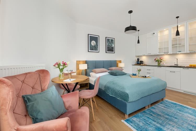 Perfekte Lage, 80 m vom Strand entfernt, im Zentrum des Resorts. Neben komfortablen Unterkünften bietet die Ferienanlage einen ganzjährig geöffneten SPA-Bereich (im Aufenthaltspreis inbegriffen): Indoor-Freizeitpool, Kinderbecken, Whirlpool, Sauna, Salzgradierwerk. Luxuriöses Ferienstudio im 2. Stock (Aufzug vorhanden). Die Wohnung besteht aus 1 großen Zimmer, das sowohl als Wohnzimmer als auch als Schlafzimmer dient. Neben dem Zimmer befindet sich eine gut ausgestattete Küche (inkl. Waschmaschine und Geschirrspüler). Badezimmer mit Dusche. Es gibt einen Balkon (seitlicher Meerblick) mit Loungemöbeln. Das Studio ist mit einer Klimaanlage mit Heiz- und Kühlfunktion ausgestattet. WLAN ist verfügbar. Den Gästen steht 1 Parkplatz in der Tiefgarage zur Verfügung. Im Preis Ihres Aufenthalts sind enthalten: Strom- und Wasserverbrauch, Internet, SPA-Bereich (Schwimmbäder, Saunen), Klimaanlage, Tiefgaragenstellplatz, Hochstuhl (nach vorheriger Anmeldung). Pobierowo ist ein Ferienort in der Woiwodschaft Westpommern. Es liegt an der Küste der Ostsee, im Zentrum der malerischen Rewal-Küste. Es bietet Touristen einen sauberen Strand und einen bewachten Badebereich. Hier befindet sich auch eine Fischerbasis, perfekt als Hintergrund für Erinnerungsfotos. Kinder werden von einem Besuch im Walpark im nahegelegenen Rewal (ca. 7 km) begeistert sein. Bei schlechtem Wetter bietet sich ein Ausflug in eines der zahlreichen öffentlichen Hallenbäder an. Auch ein Seilpark bietet tolle Unterhaltung für die ganze Familie oder eine Gruppe von Freunden. Der Stolz der Stadt und der gesamten Region ist die renovierte Schmalspurbahn, mit der man reizvolle Ausflüge in die benachbarten Ferienorte unternehmen kann.