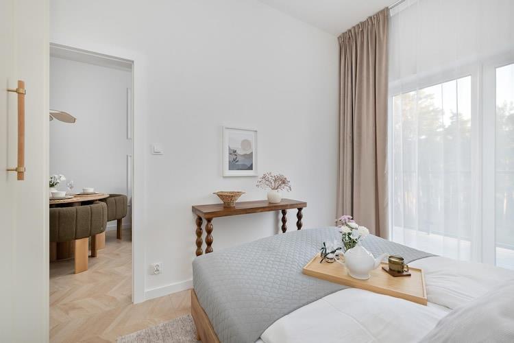 Traumhafte Lage in ruhiger Lage, 450 m vom Meer entfernt. Das Ortszentrum ist 500 m entfernt. Diese moderne Apartmentanlage ist der perfekte Ort für einen Urlaub. Den Gästen steht ein ganzjährig geöffnetes Hallenbad zur Verfügung. Diese komfortable Ferienwohnung befindet sich im zweiten Stock (Aufzug vorhanden) und bietet Platz für 4 Personen. Sie verfügt über einen Balkon mit Gartenmöbeln. Die Wohnung besteht aus einem Wohnzimmer mit Küche, einem Schlafzimmer und einem Badezimmer mit Dusche. Das Wohnzimmer verfügt über ein Doppelschlafsofa, einen Esstisch und einen Fernseher. Eine Waschmaschine, ein Bügeleisen und ein Haartrockner sind ebenfalls vorhanden. Zentralheizung ist vorhanden. WLAN ist verfügbar. Im Preis inbegriffen: Strom- und Wasserverbrauch, Internet, Nutzung des Schwimmbades, Parkplatz, ein Kinderbett und ein Hochstuhl (Voranmeldung erforderlich). Pobierowo ist ein Ferienort in der Woiwodschaft Westpommern. Er liegt an der Ostseeküste. Pobierowo bietet einen sauberen Strand und einen bewachten Badebereich. Es ist ein perfekter Ort für Kinder, Sportler und Verliebte. Hier gibt es viele romantische Orte für Paare. Es gibt ein Papageienhaus, ein Ozeanarium und riesige aufblasbare Spielplätze. Kinder werden begeistert sein von einem Besuch des Walparks im nahegelegenen Rewal (ca. 7 km) mit seinen echten Meeresriesen und dem Märchenhäuschen, wo sie Märchenfiguren begegnen können. Die Stadt und die gesamte Region sind stolz auf ihre renovierte Schmalspurbahn, die reizvolle Fahrten zu benachbarten Ferienorten anbietet.