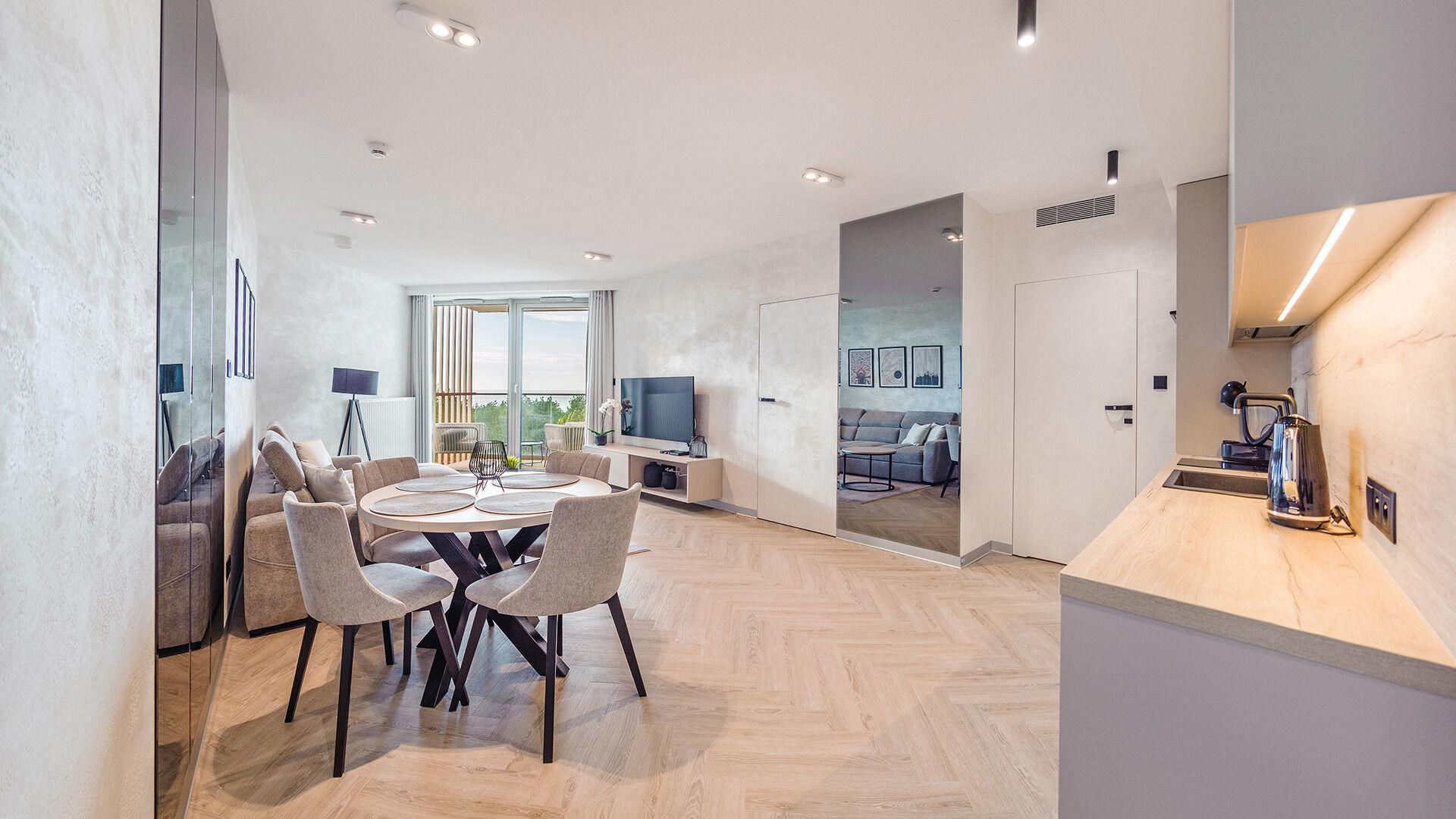 Zu den gewählten Apartments darf man mit dem Hund ankommen. Die zusätzlichen Kosten des Aufenthalts mit einem vierbeinigen Freund betragen 100 PLN (Einzelgebühr). Die Gäste, die den Aufenthalt mit dem Hund planen, bitten wir um eine frühere Kontaktaufnahme mit unserem Service im lokalen Büro.