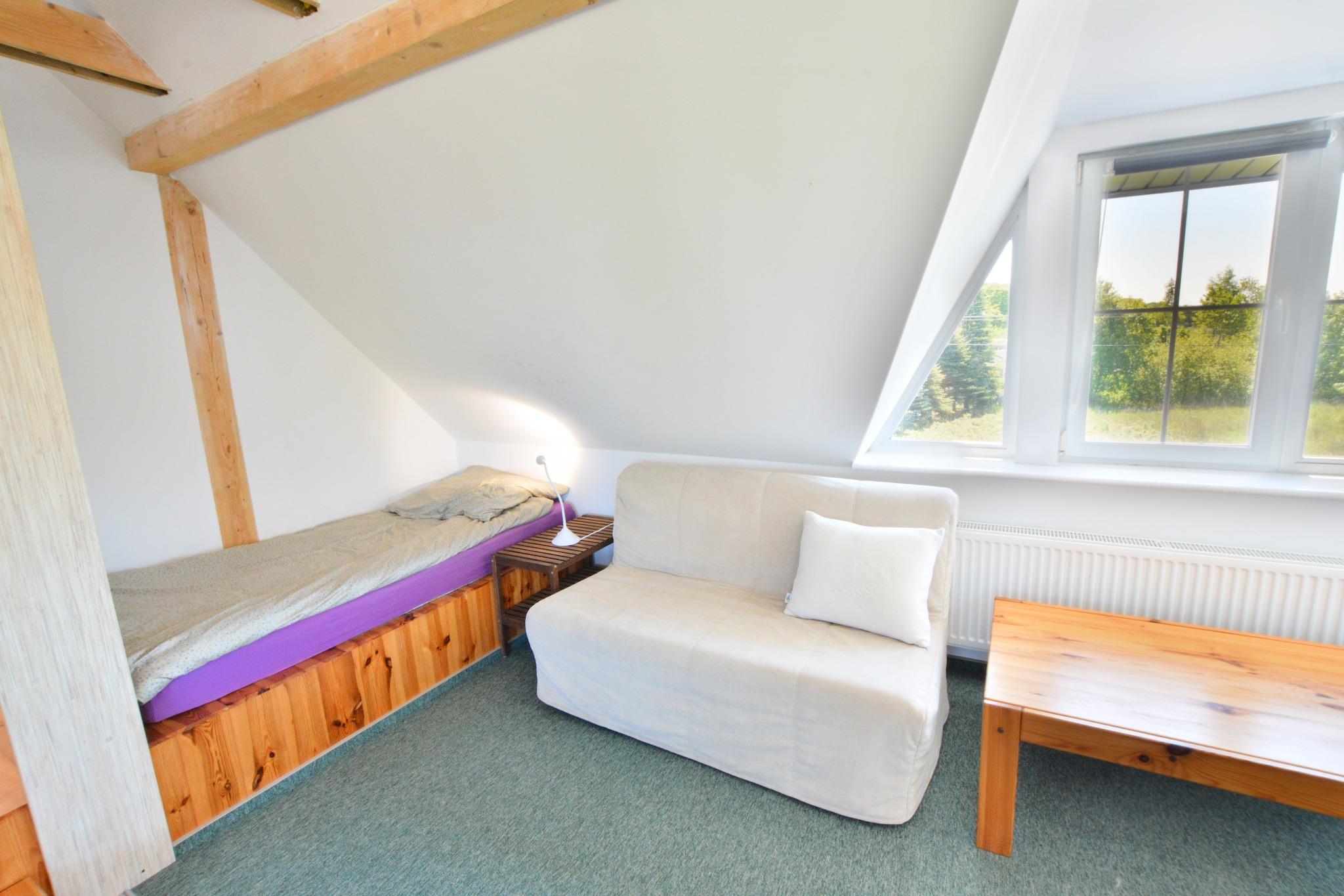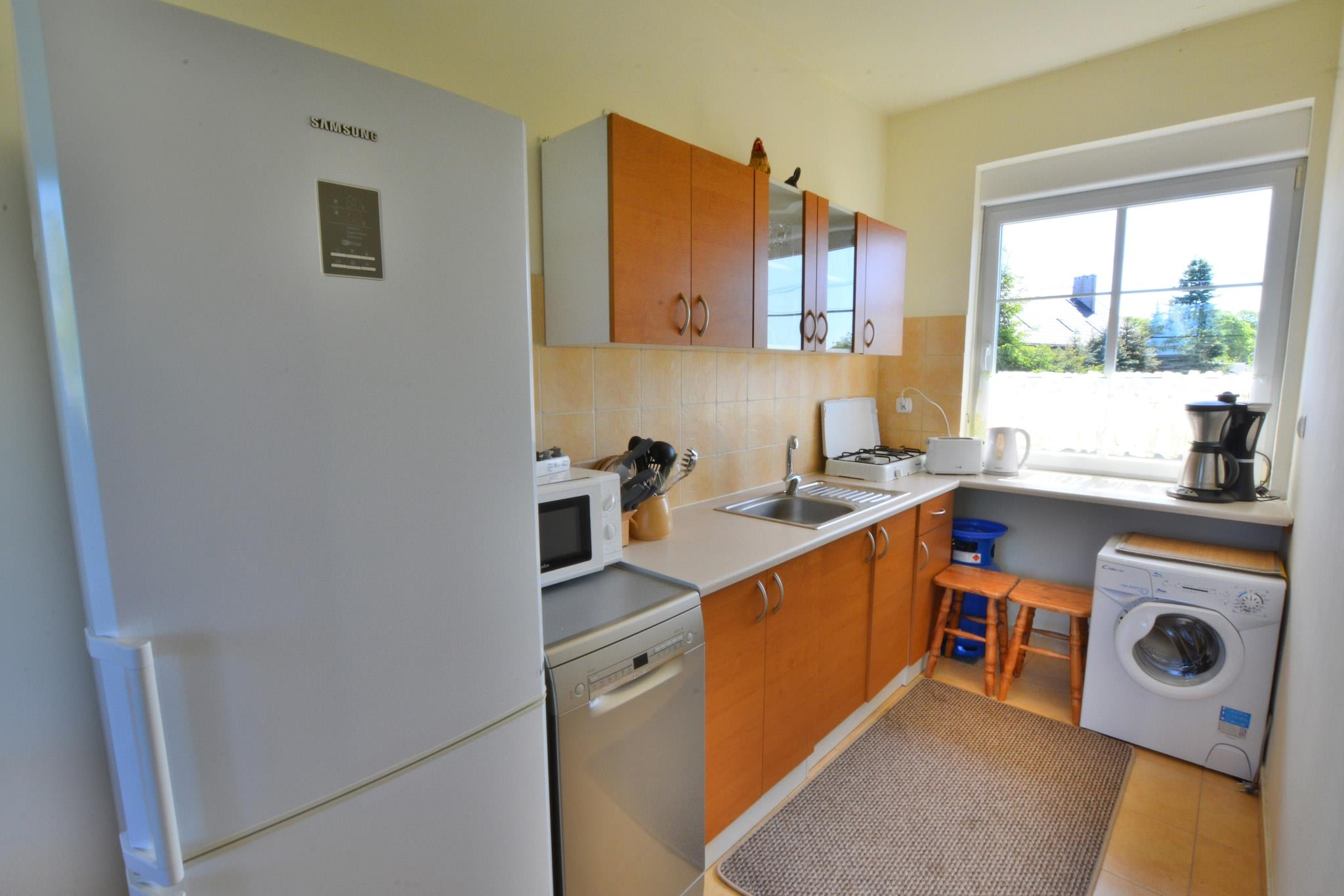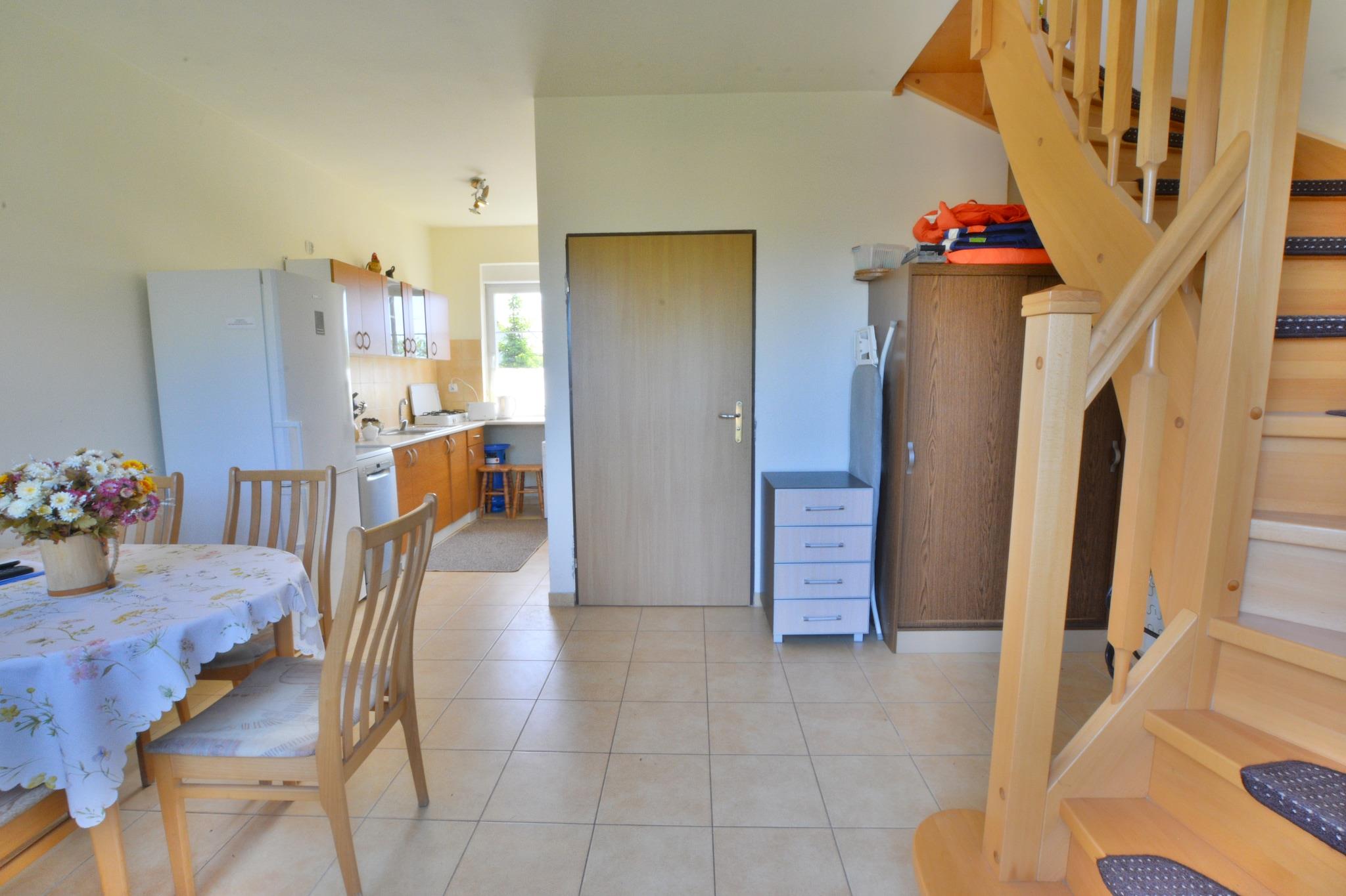 Podamirowo ist ein kleiner, ruhiger Sommerferienort am Jamno-See (beliebt bei Windsurf- und Angelbegeisterten). Der nächste Badeort (Mielno) ist nur 6 km entfernt. Sie können diese Route auch mit dem Fahrrad zurücklegen, denn nach Mielno führt ein Radweg. Ein komfortables, zweistöckiges Reihenhaus mit privatem Garten. Auf der Terrasse gibt es ein Gartenmöbelset und einen Grill. Der restliche Teil der Fläche wird mit dem Eigentümer der Anlage geteilt, der im Nachbarhaus wohnt. Im Erdgeschoss des Hauses gibt es ein Esszimmer, das mit der Küche verbunden ist, und ein Badezimmer mit Dusche (es gibt eine Waschmaschine). Im ersten Stock gibt es ein Wohnzimmer mit TV und einem Doppelschlafsofa. Vom Wohnzimmer aus hat man Zugang zu 2 unabhängigen Schlafzimmern. Einer davon ist mit einer Schiebetür verschlossen, die sich komplett öffnen lässt und den Raum des Wohnzimmers vergrößert. Dieses Schlafzimmer verfügt über ein Einzelbett und ein ausklappbares Sofa (für 2 Personen, vorzugsweise jedoch für Kinder und Jugendliche). Das zweite Schlafzimmer verfügt über 2 Einzelbetten. Den schönsten Panoramablick auf den See genießt man vom Turm-Zwischengeschoss, das über eine recht steile Treppe erreichbar ist. Dort wartet ein weiteres ausklappbares Sofa. Zentralheizung. WLAN ist verfügbar. Auf dem Grundstück gibt es viel Platz zum Sonnenbaden und für verschiedene Kinderspiele, einen Platz für ein Lagerfeuer und einen sicheren Parkplatz. Nur 100 m vom See entfernt gibt es einen privaten Anlegesteg mit Ruderboot (Möglichkeit eines Verbrennungsmotors). Es gibt auch ein Entspannungsfloß, das Sie etwas vom Ufer entfernt segeln und im offenen Wasser anlegen und in der Sonne entspannen können. Im Preis des Aufenthalts sind enthalten: Bettwäsche, Strom- und Wasserverbrauch, Heizung, Endreinigung, Kurtaxe, Internet, Parkplatz, Babybett.