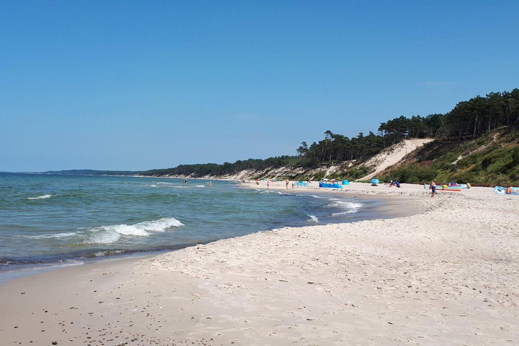 Ruhe und Frieden, hervorragende Bedingungen für perfekte Entspannung, und innerhalb eines 30-minütigen Spaziergangs oder einer 10-minütigen Radtour (ca. 2,5 km) liegt Ustka, ein größerer, attraktiver Badeort, mit historischen, restaurierten Gebäuden und vielen tollen Restaurants. Cafés und viele Sehenswürdigkeiten. In einer ruhigen Umgebung, auf einem umzäunten Grundstück, befindet sich ein Erholungszentrum mit Unterkünften in Sommerhäusern. Der Strand ist nur ca. 1 km entfernt. Die Häuser sind einstöckig, jedes verfügt über eine überdachte Terrasse mit Gartenmöbeln. Jedes Haus besteht aus einem Wohnzimmer (ausziehbares Doppelsofa, TV und Tisch), einer Küche, 2 separaten Schlafzimmern und einem Badezimmer mit Dusche. Grillmöglichkeiten sind vorhanden. WLAN ist verfügbar. Eine besondere Attraktion auf dem gepflegten Gelände des Resorts ist das beheizte Sommerschwimmbad. Darüber hinaus gibt es einen attraktiven Spielplatz für die Kleinsten. Außerdem gibt es vor Ort einen Fahrradverleih, Tischtennis und Tischfußball. Eine Waschmaschine steht der Öffentlichkeit zur Verfügung (gegen Gebühr). Im Preis des Aufenthalts sind enthalten: Bettwäsche, Strom- und Wasserverbrauch, Endreinigung, Parkplatz, Internet, Babybett und Hochstuhl (auf Anfrage). Przeklaka ist ein ruhiger, friedlicher Sommerferienort, der viele mögliche Aktivitäten für Liebhaber von Spaziergängen und Radtouren bietet. Der Strand hier ist sehr schön und auch im Sommer nicht überfüllt. Hier können Sie entspannen und einen unbeschwerten Urlaub genießen. Ustka, ein großer und attraktiver Badeort, liegt etwa 2 km vom Resort entfernt. Das historische Stadtzentrum ist mit wunderschöner Architektur erbaut, dominiert von der charakteristischen Ansicht von Cottages und Fachwerkhäusern. In der Umgebung gibt es viele tolle Restaurants, Cafés und verschiedene Geschäfte. In Ustka lohnt sich ein Besuch des Leuchtturms, von dem aus Sie gegen eine geringe Gebühr bis zur Spitze des Turms gelangen können.