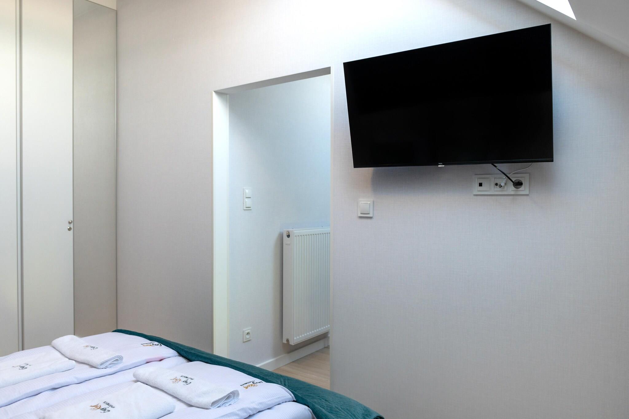 Ein gemütliches Apartmenthaus am Rande des Resorts, in einer ruhigen Gegend. Nur 900 m bis zum Strand, ca. 500 m bis zum Ortszentrum, wo es zahlreiche Restaurants und Cafés gibt. Ein komfortables Apartment auf 2 Ebenen bietet komfortable Entspannung für 6 Personen. Die untere Ebene befindet sich im zweiten Stock des Gebäudes. Auf der unteren Ebene gibt es ein geräumiges Wohnzimmer, das mit der Küche verbunden ist, ein Schlafzimmer mit einem Doppelbett und ein Badezimmer mit Dusche. Das Wohnzimmer verfügt über ein Doppelschlafsofa, einen Fernseher und einen Tisch mit Stühlen. Die Küche ist perfekt ausgestattet. Zur Ausstattung gehört eine Waschmaschine. Auf der oberen Ebene befindet sich ein Schlafzimmer mit einem Doppelbett (es gibt auch einen Fernseher). Die Wohnung verfügt über eine große Terrasse mit Loungemöbeln. Es gibt Sonnenliegen. Zentralheizung. WLAN ist verfügbar. Den Gästen steht ein Parkplatz zur Verfügung. Im Preis des Aufenthalts sind enthalten: Strom- und Wasserverbrauch, Internet, Parkplatz. Babybett und Hochstuhl auf Anfrage. Rewal ist ein Ferienort in der Woiwodschaft Westpommern. Es liegt am Ufer der Ostsee und ist das Zentrum der malerischen Rewal-Küste. Rewal bietet Touristen einen sauberen Strand und einen bewachten Badebereich. Hier gibt es auch einen Angelstützpunkt, der sich perfekt als Hintergrund für Erinnerungsfotos eignet. Da Sie sich in der Nähe des Strandes befinden, müssen Sie unbedingt das Wahrzeichen der Stadt sehen. Das sind die riesigen Rewal-Wale, die auf der Promenade direkt an der Küste und auf der Aussichtsplattform stehen. Kinder werden von einem Besuch im Walpark begeistert sein. Bei schlechtem Wetter bietet sich ein Ausflug in eines der mehreren öffentlichen Hallenbäder an. Der Stolz der Stadt ist die renovierte Schmalspurbahn, die Ihnen einen reizvollen Ausflug in benachbarte Ferienorte ermöglicht.