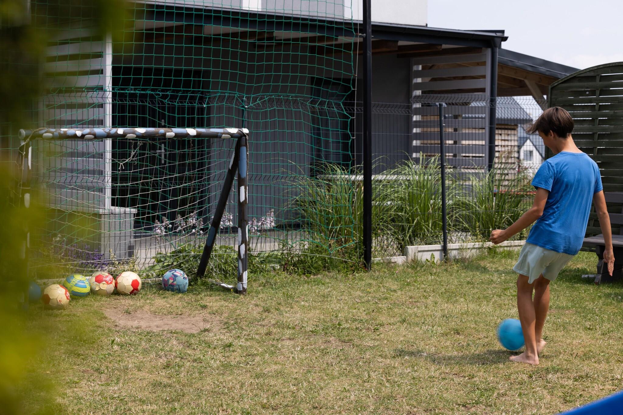 Parterre: (Kochnische(Wasserkocher, Toaster, Kochherd(2 Kochplatten, elektrisch), Espressomaschine, Mikrowelle, Kühl-/Gefrierkombination), Wohn/Esszimmer(TV(Deutsch Fernsehsender), Esstisch, Sitzecke), Badezimmer(Dusche, Waschbecken, Toilette)) In der 1. Etage: (Schlafzimmer(Einzelbett, Doppelbett), Schlafzimmer(Einzelbett, Doppelbett)) Parkplatz, Planschbecken, Gartenmöbel, Grill, Balkon oder Terrasse, Trampolin, Liegestühle, Sandkasten, Spielgeräte, Rutsche, Hochstuhl, Babybett (kostenlos)