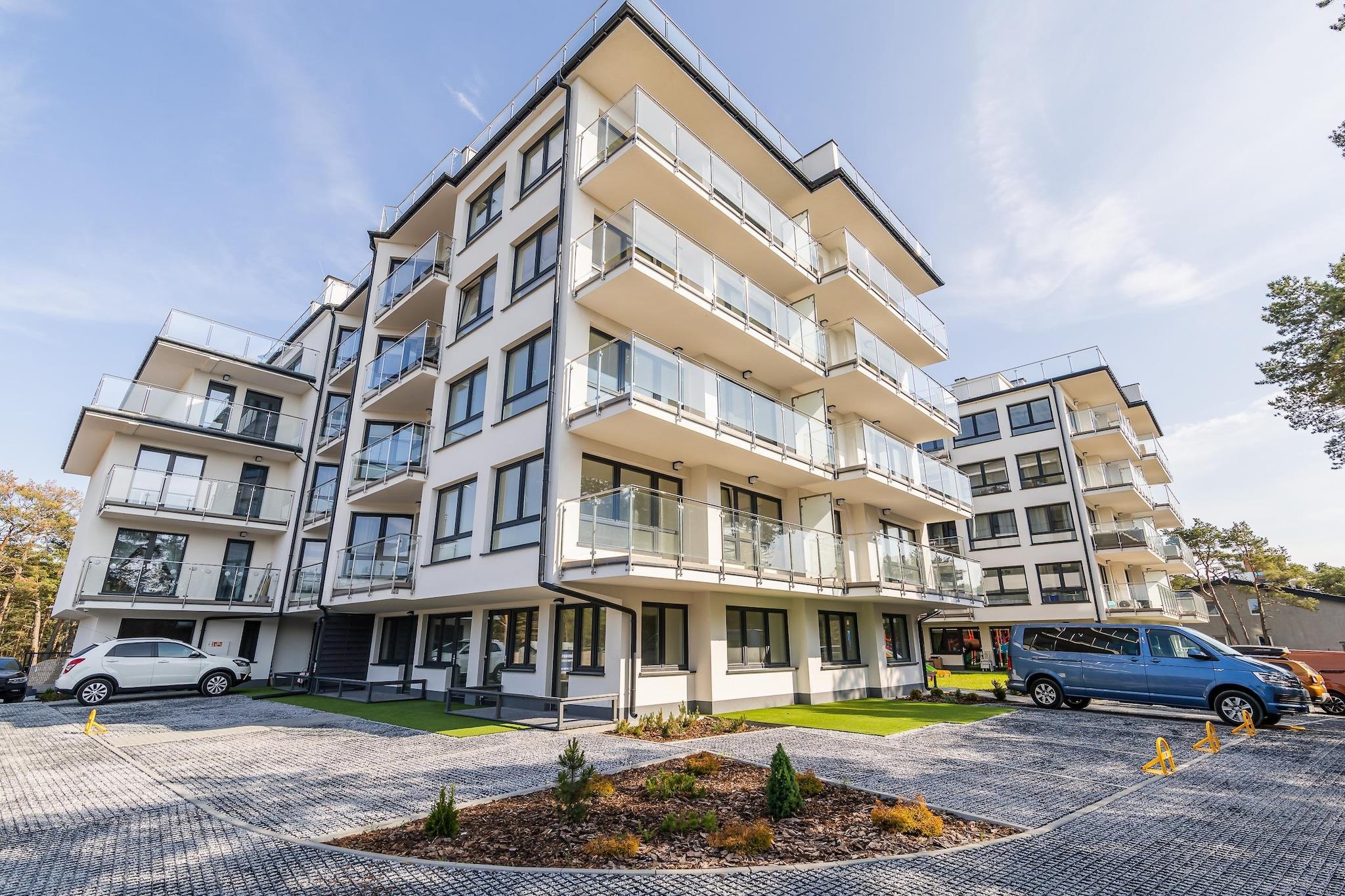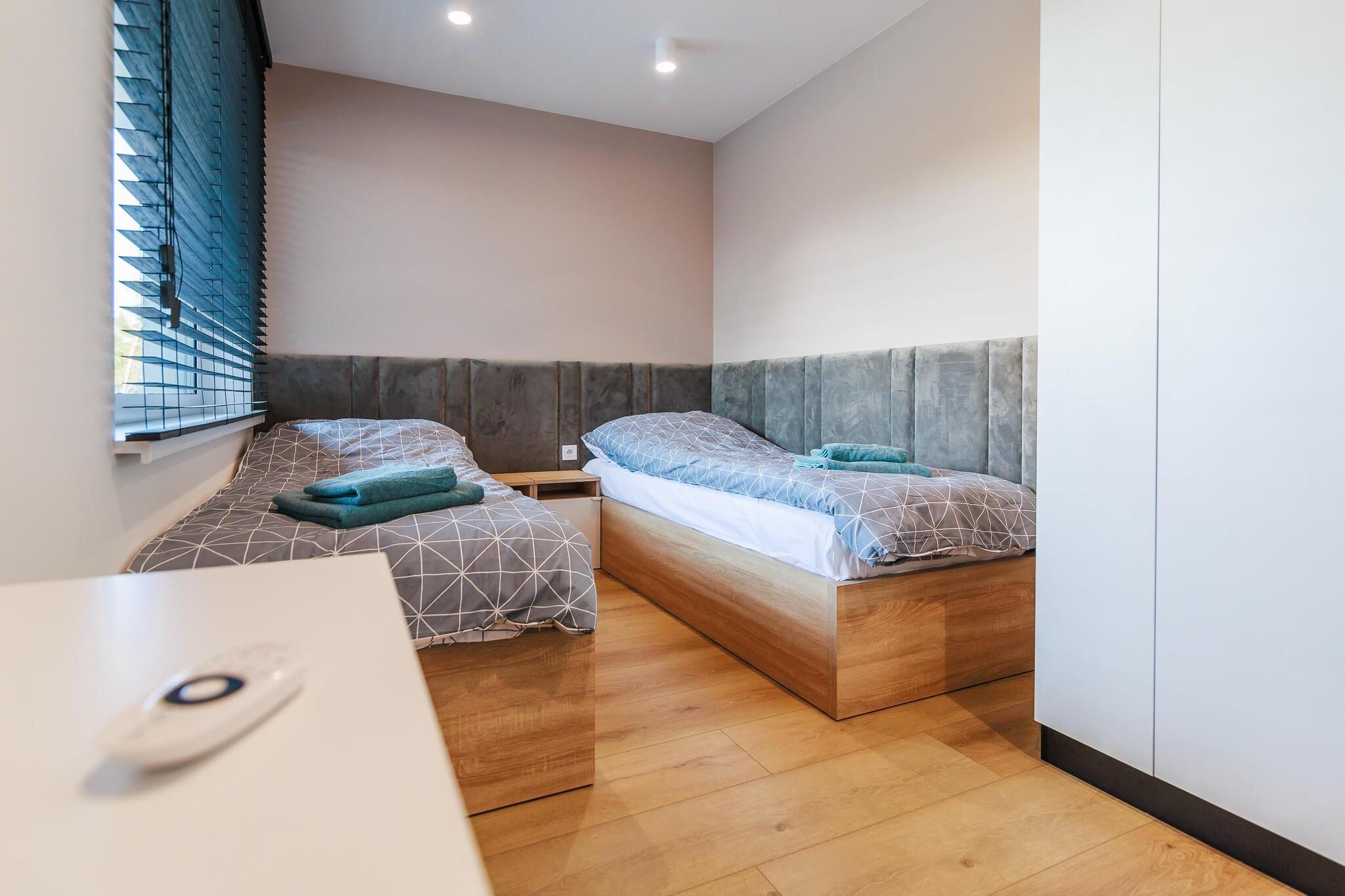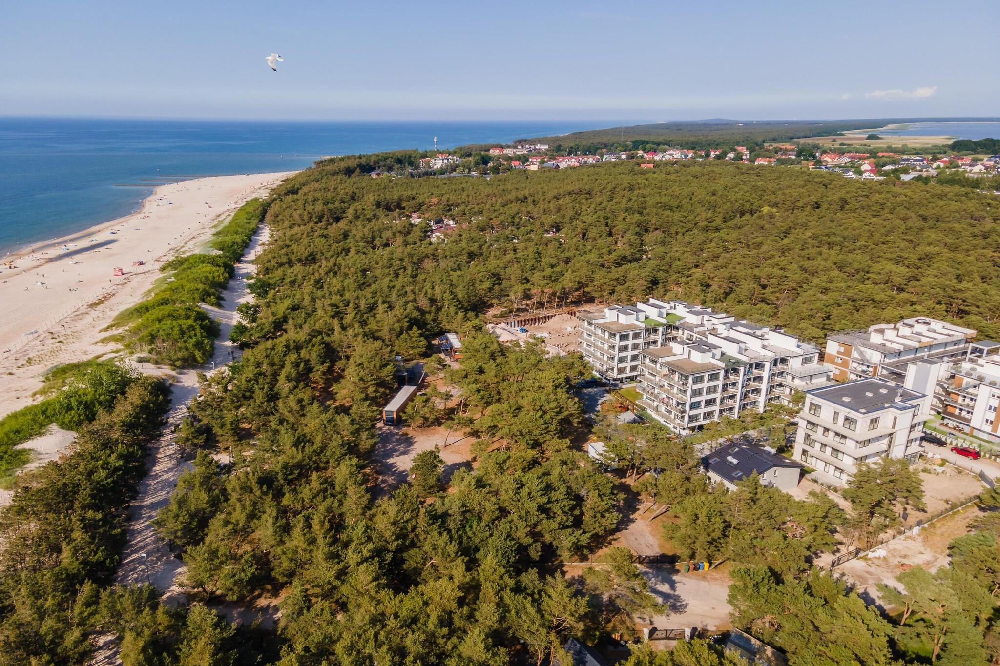 Ein moderner Apartmentkomplex in einem Küstenwald, praktisch direkt am Strand von Rowy. Das Meer ist nur 100 Meter entfernt, das Ortszentrum ca. 600 Meter. Dieses luxuriöse und geräumige Apartment befindet sich im Hochparterre. Es ist modern und mit hochwertigen Materialien eingerichtet und verfügt über ein Wohnzimmer (mit TV, bequemer Doppelschlafcouch und Couchtisch), eine voll ausgestattete Küche, zwei separate Schlafzimmer (eines mit Doppelbett, das andere mit zwei Einzelbetten) sowie ein Badezimmer mit Dusche (inkl. Waschmaschine). Das Apartment bietet eine Terrasse und einen Balkon. Zentralheizung ist vorhanden. WLAN steht zur Verfügung. Ein bewachter Parkplatz befindet sich direkt neben dem Apartment. Ein Kinderspielplatz ist im Ferienkomplex vorhanden. Im Preis inbegriffen sind Bettwäsche, Handtücher, Strom, Wasser, Heizung, Endreinigung, Internet, Parkplatz und Kurtaxe. Der Ferienort Rowy liegt zwischen der Ostsee und dem Gardner See. Der Ort bietet eine große Auswahl an gut bewerteten Bars und Restaurants. Nur wenige Gehminuten von der Wohnung entfernt, durch das Stadtzentrum und über den Lupawa-Kanal, der das offene Meer mit dem See verbindet, liegt der Eingang zum Nationalpark Slowinski (dem drittgrößten Polens). Zahlreiche reizvolle Wanderwege laden dazu ein, die Hauptattraktionen zu entdecken: den Leuchtturm Czolpino, einen überfluteten Wald, Wanderdünen, Heidelandschaften, eine Leuchtturmwärtersiedlung und Aussichtspunkte über den Gardno-See. Ein Spaziergang durch die bis zu 40 Meter hohen Dünen ist ein unvergessliches Erlebnis. Der Park erstreckt sich über rund 35 Kilometer entlang der Küste zwischen Rowy und dem attraktiven Badeort Leba. Der Strand in Rowy ist außergewöhnlich breit. Der Fischereihafen und die neoromanische Kirche des Ortes sind ebenfalls einen Besuch wert. Angler zieht es zudem an den Fluss Lupawa.