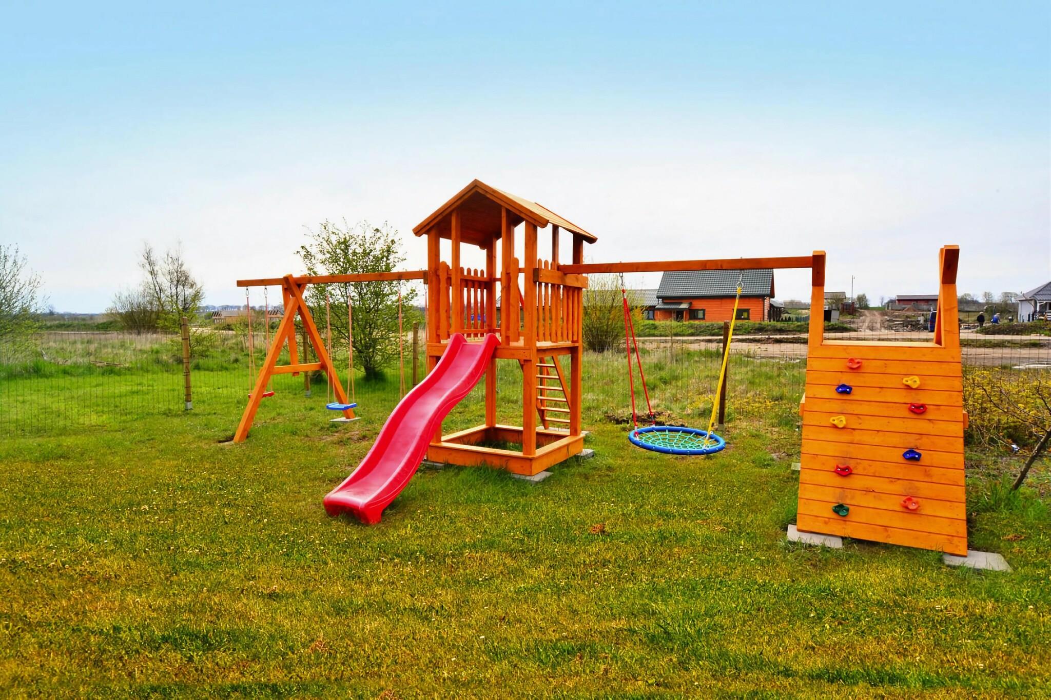 Parterre: (offene Küche(Kochplatte(2 Kochplatten, elektrisch), Wasserkocher, Kaffeemaschine, Mikrowelle, Kühl-/Gefrierkombination), Wohn/Esszimmer(Doppelschlafcouch, TV(Flatscreen, Satellit, Deutsch Fernsehsender), Esstisch(4 Personen)), Badezimmer(Dusche, Waschbecken, Toilette)) In der 1. Etage: (Schlafzimmer(Doppelbett), Durchgangsschlafzimmer(Einzelbett, Einzelbett)) Rezeption, Internet, Spielplatz, Liegewiese, Babybadewanne, Heizung(elektrisch), Terrasse(überdacht), Garten(Gemeinschaftliche Nutzung mit anderen Gästen, umzäunt, 500 m2), Gartenmöbel, Liegen, Grill(Holzkohle), Parkplatz, Trampolin(Gemeinschaftliche Nutzung mit anderen Gästen), Sandkasten(Gemeinschaftliche Nutzung mit anderen Gästen), Spielgeräte(Gemeinschaftliche Nutzung mit anderen Gästen), Rutsche(Gemeinschaftliche Nutzung mit anderen Gästen), Hochstuhl, Spielzeug, Schaukel, Babybett (kostenlos)
