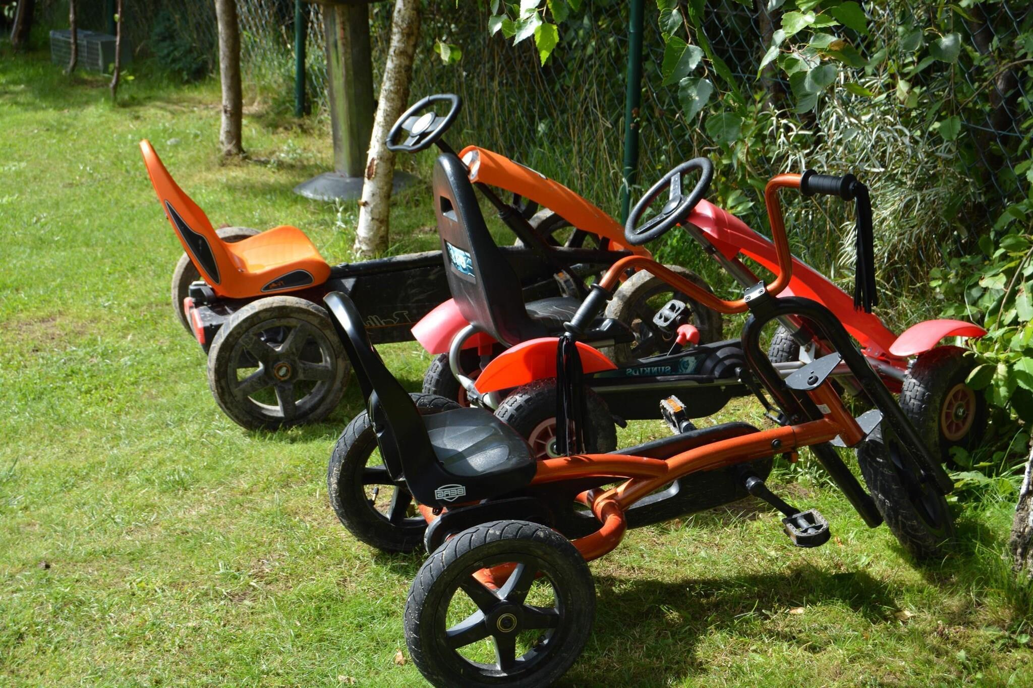 Parterre: (offene Küche(Kochplatte(2 Kochplatten, elektrisch), Wasserkocher, Toaster, Dunstabzugshaube, Kaffeemaschine, Mikrowelle, Spülmaschine, Kühl-/Gefrierkombination), Wohn/Esszimmer(Doppelschlafcouch, TV(Flatscreen, Satellit, Deutsch Fernsehsender), Esstisch, DVD-Spieler, Radio), Badezimmer(Dusche, Waschbecken, Toilette, Waschmaschine)) In der 1. Etage: (Schlafzimmer(Einzelbett, Einzelbett, Doppelbett), Schlafzimmer(Einzelbett, Doppelbett), Toilette(Waschbecken, Toilette)) Rezeption, Internet, Parkplatz, Tischtennisplatte, Spielplatz, Liegewiese, Babybadewanne, Balkon, Heizung(elektrisch), Terrasse(überdacht), Garten(Gemeinschaftliche Nutzung mit anderen Gästen, umzäunt), Gartenmöbel, Liegen, Grill(Holzkohle), Trampolin(Gemeinschaftliche Nutzung mit anderen Gästen), Sandkasten(Gemeinschaftliche Nutzung mit anderen Gästen), Rutsche(Gemeinschaftliche Nutzung mit anderen Gästen), Tischfußball(Gemeinschaftliche Nutzung mit anderen Gästen), Fitnessgeräte(Gemeinschaftliche Nutzung mit anderen Gästen), Fahrräder verfügbar, Hochstuhl, Bügelbrett, Bügeleisen, Sonnenschirm, Schaukel, Babybett (kostenlos)
