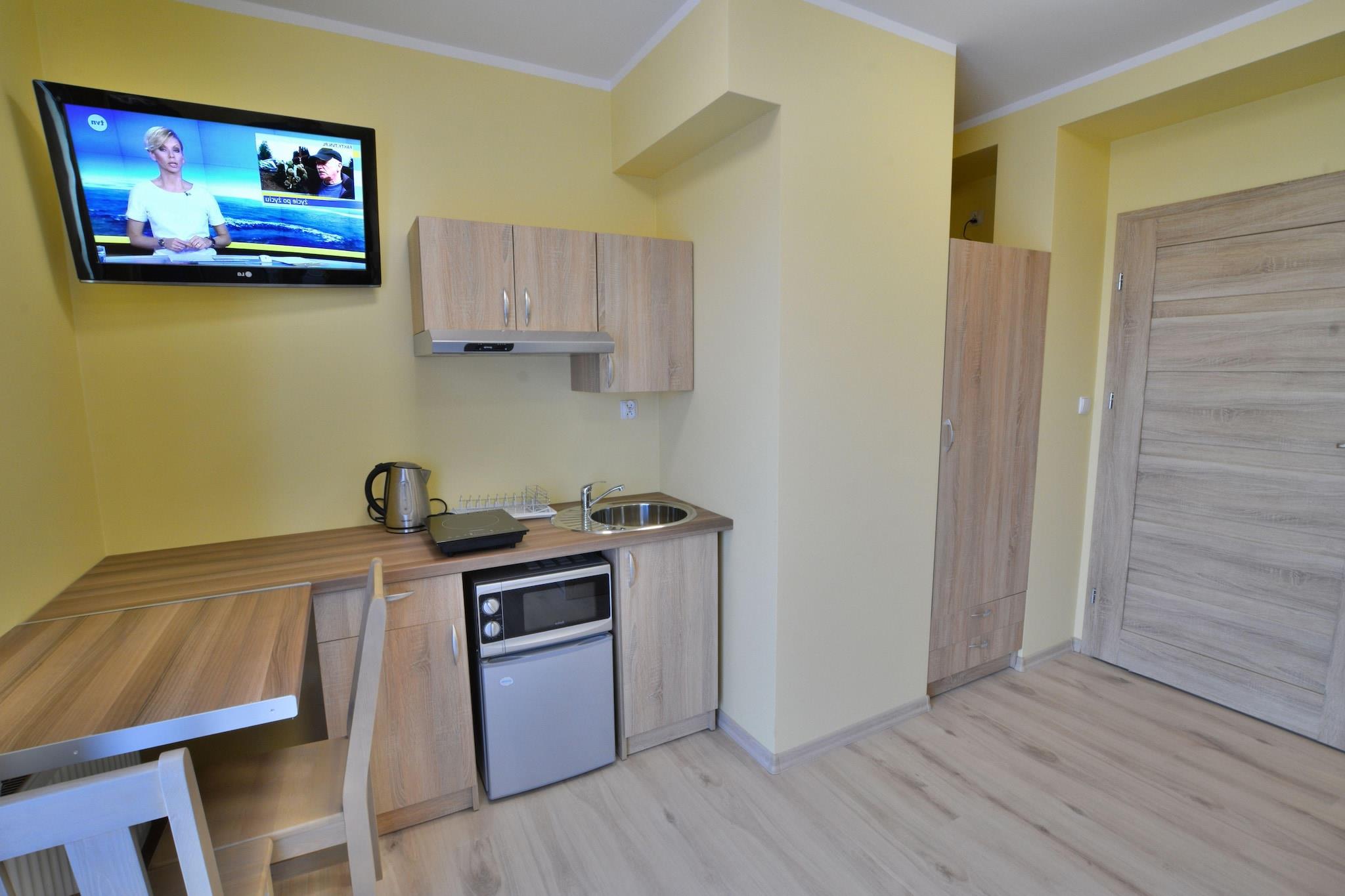 Im Herzen einer wunderschönen Küstenstadt befindet sich ein Familienferienort mit Unterkunft in Apartments. Zum Meer sind es nur 300 m. Im Umkreis von wenigen Schritten finden Sie zahlreiche Restaurants, Cafés und Souvenirstände. Schönes 2-Personen-Studio mit Kochnische im ersten Stock. Es ist ein Raum, der sowohl als Schlafzimmer als auch als Wohnzimmer dient. Zur Ausstattung gehören ein gemütliches, ausklappbares Doppelschlafsofa, ein Tisch mit Stühlen und ein Fernseher. Das Zimmer verfügt über einen Balkon. Badezimmer mit Dusche. Zentralheizung. Zur Anlage gehören ein Parkplatz, Grillmöglichkeiten, ein Spielplatz für Kinder und eine Tischtennisplatte. Im Preis Ihres Aufenthalts sind inbegriffen: Bettwäsche, Strom- und Wasserverbrauch, Endreinigung, Parkplatz und ein Babybett (vorherige Buchung erforderlich). Sarbinowo ist ein kleiner, malerisch gelegener Sommerferienort an der Westküste, wenige Kilometer westlich von Mielno. Hier erwarten Sie saubere, breite Strände. Dies ist der perfekte Ort für einen Kurzurlaub mit Familie oder Freunden. In unmittelbarer Nähe lohnt sich ein Besuch des Fischerdorfmuseums in Chlopy. Für Familien mit Kindern ist der Pomerania FunPark ein tolles Ziel für einen Tagesausflug. Der internationale Radweg R-10 rund um das Ostseebecken verläuft ganz in der Nähe des Zentrums. Wir empfehlen Ausflüge ins malerische Chlopy, ins Zentrum von Sarbinowo, zum Leuchtturm in Gaski und nach Ustronie Morskie.