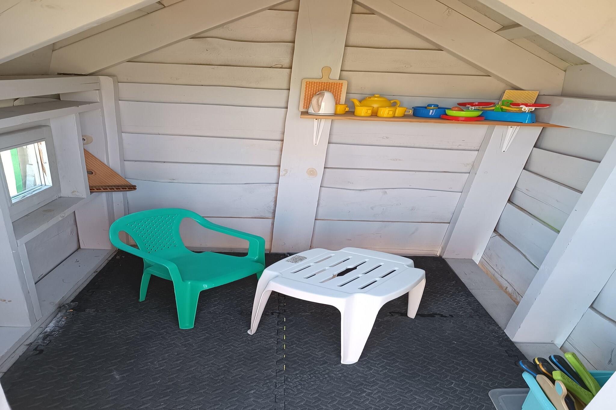 Parterre: (offene Küche(Kochplatte(2 Kochplatten, elektrisch), Wasserkocher, Kühl-/Gefrierkombination), Wohn/Esszimmer(Doppelschlafcouch, TV(Flatscreen), Esstisch), Schlafzimmer(Doppelbett oder 2 Einzelbetten), Badezimmer(Dusche, Waschbecken, Toilette)) Internet, Spielplatz, Liegewiese, Babybadewanne, Heizung(elektrisch), Terrasse(überdacht), Garten(Gemeinschaftliche Nutzung mit anderen Gästen, umzäunt, 1500 m2), Gartenmöbel, Liegen, Grill(Holzkohle), Parkplatz, Trampolin(Gemeinschaftliche Nutzung mit anderen Gästen), Sandkasten(Gemeinschaftliche Nutzung mit anderen Gästen), Spielgeräte(Gemeinschaftliche Nutzung mit anderen Gästen), Rutsche(Gemeinschaftliche Nutzung mit anderen Gästen), Fahrräder verfügbar, Hochstuhl, Volleyballfeld, Babybett (kostenlos)