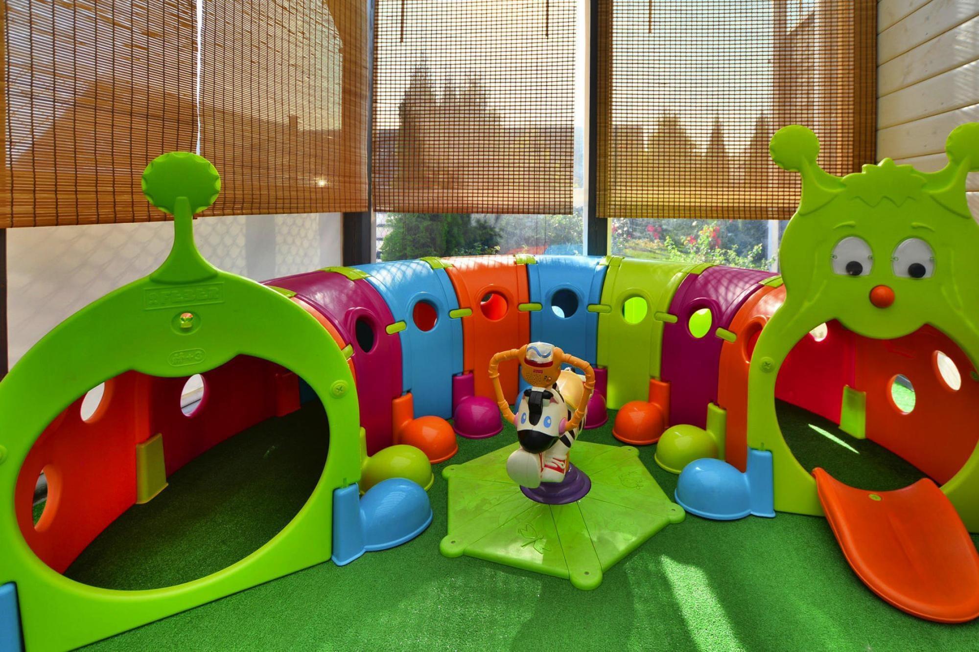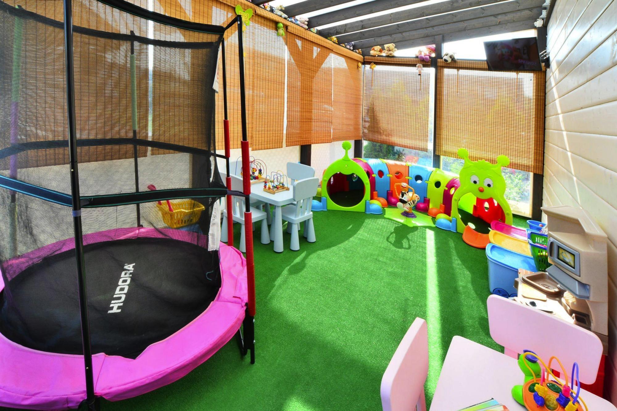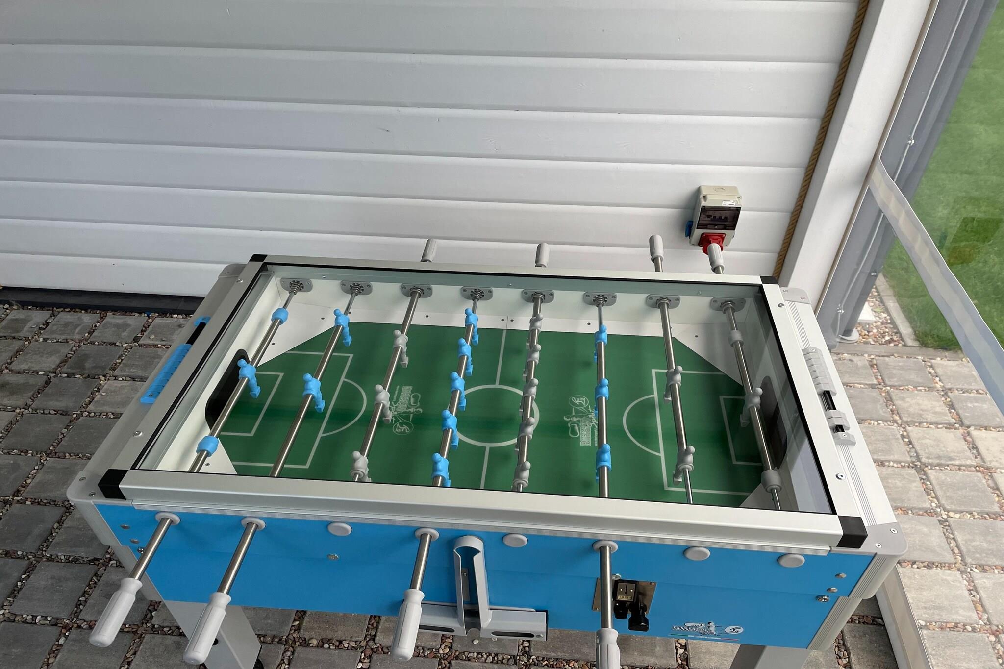 Parterre: (offene Küche(Kochplatte(2 Kochplatten, Induktion), Wasserkocher, Toaster, Kaffeemaschine, Mikrowelle, Spülmaschine, Kühl-/Gefrierkombination, Waschmaschine), Wohn/Esszimmer(Doppelschlafcouch, TV(Flatscreen, Satellit, Deutsch Fernsehsender), Esstisch(6 Personen)), Badezimmer(Dusche, Waschbecken, Toilette, Föhn)) In der 1. Etage: (Schlafzimmer(Doppelbett, Etagenbett), Schlafzimmer(Doppelbett, Etagenbett), Toilette(Waschbecken, Toilette)) Rezeption, Internet, Parkplatz, Tischfußball, Tischtennis, Fahrradverleih, Tischtennisplatte, Indoor Spielraum, Spielplatz, Liegewiese, Babybadewanne, Whirlwanne(im Garten, gegen Gebühr), Sauna(gegen Gebühr, 4 Personen), Heizung(elektrisch, durch Klimaanlagen), Klimaanlage, Terrasse(überdacht), Garten(Gemeinschaftliche Nutzung mit anderen Gästen, umzäunt, 1000 m2), Gartenmöbel, Liegen, Grill(Holzkohle), Trampolin(Gemeinschaftliche Nutzung mit anderen Gästen), Sandkasten(Gemeinschaftliche Nutzung mit anderen Gästen), Spielgeräte(Gemeinschaftliche Nutzung mit anderen Gästen), Rutsche(Gemeinschaftliche Nutzung mit anderen Gästen), Fahrräder verfügbar(gegen Gebühr), Hochstuhl, Bügelbrett, Bügeleisen, Spielzeug, Sonnenschirm, Schaukel, Babybett (kostenlos)