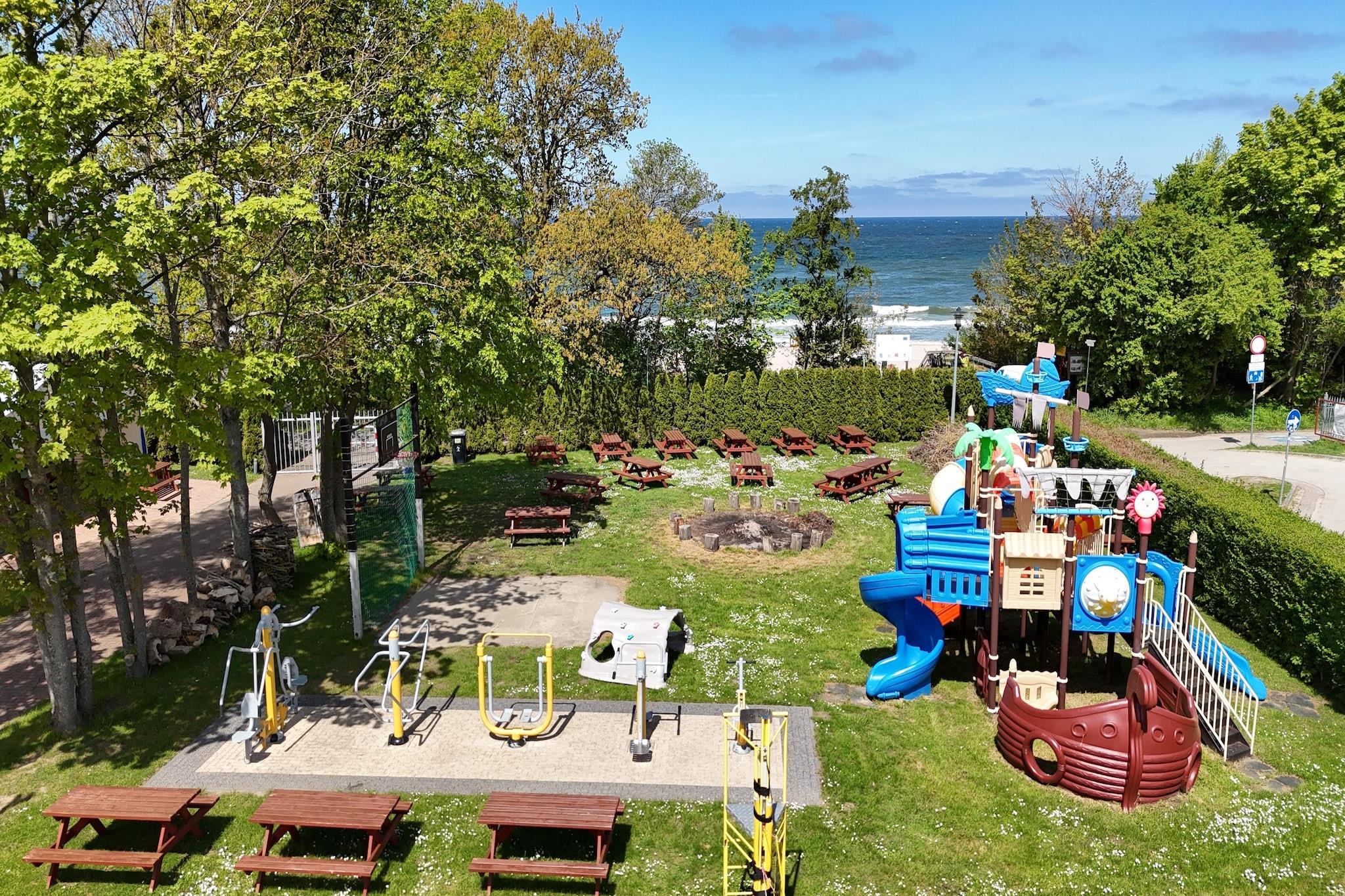 Ein großes Ferienresort in idealer Lage direkt am Meer, am westlichen Rand des Ferienortes Sianozety. Das Resort bietet eine umfangreiche, professionelle Infrastruktur für ein abwechslungsreiches und attraktives Urlaubserlebnis. Restaurants, Bars und Geschäfte befinden sich in unmittelbarer Nähe. Die ebenerdigen Ferienhäuser bestehen aus vier separaten, komfortablen Ferienwohnungen, die jeweils in eine andere Himmelsrichtung ausgerichtet sind. Diese komfortable Ferienwohnung verfügt über ein Wohnzimmer (TV, Esstisch, Doppelschlafsofa), eine Küche, ein Schlafzimmer mit Doppelbett und ein Badezimmer mit Dusche. Zur Wohnung gehört eine überdachte Terrasse mit Gartenmöbeln, Liegestühlen und Grillmöglichkeit. Zentralheizung und WLAN sind vorhanden. Auf dem umzäunten und gepflegten Gelände des Ferienresorts können Gäste verschiedene Sportplätze (Beachvolleyball, Fußball und Basketball), einen großen und attraktiven Spielplatz, ein Spielzimmer (Tischtennis, Billard, Tischfußball und einen Krabbelbereich), eine Feuerstelle und einen Outdoor-Fitnessbereich nutzen. Sichere Parkplätze stehen zur Verfügung (ein Stellplatz pro Ferienhaus im Preis inbegriffen; ein weiterer Stellplatz ist gegen Aufpreis erhältlich). Fahrräder können vor Ort gemietet werden (gegen Gebühr). Ein abwechslungsreiches Unterhaltungsprogramm für Kinder und Erwachsene ist während der Ferienzeit inklusive. Im Preis enthalten sind: Bettwäsche, Strom, Wasser, Heizung, Endreinigung, Parkplatz (ein Stellplatz pro Ferienhaus) und Internet. Ein Kinderbett und ein Hochstuhl sind auf Anfrage erhältlich. Sianozety ist ein kleiner Ferienort in der Nähe von Kolobrzeg. Er liegt an einem breiten Strand. Goldener Sand und ein sanft abfallender Strand laden zum Sonnenbaden und Schwimmen ein. Sianozety ist ein ruhiger Sommerferienort, der wahre Entspannung bietet.