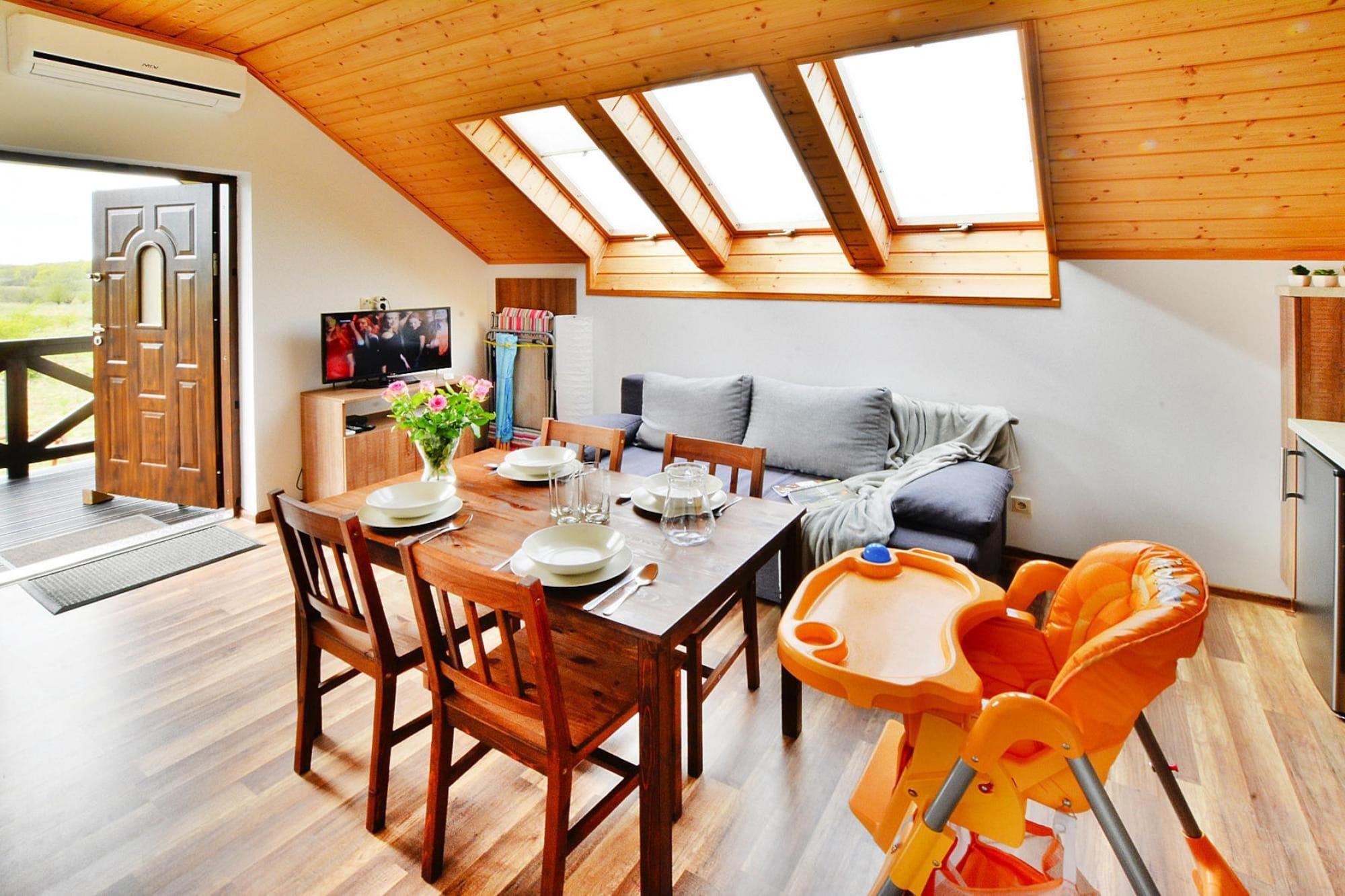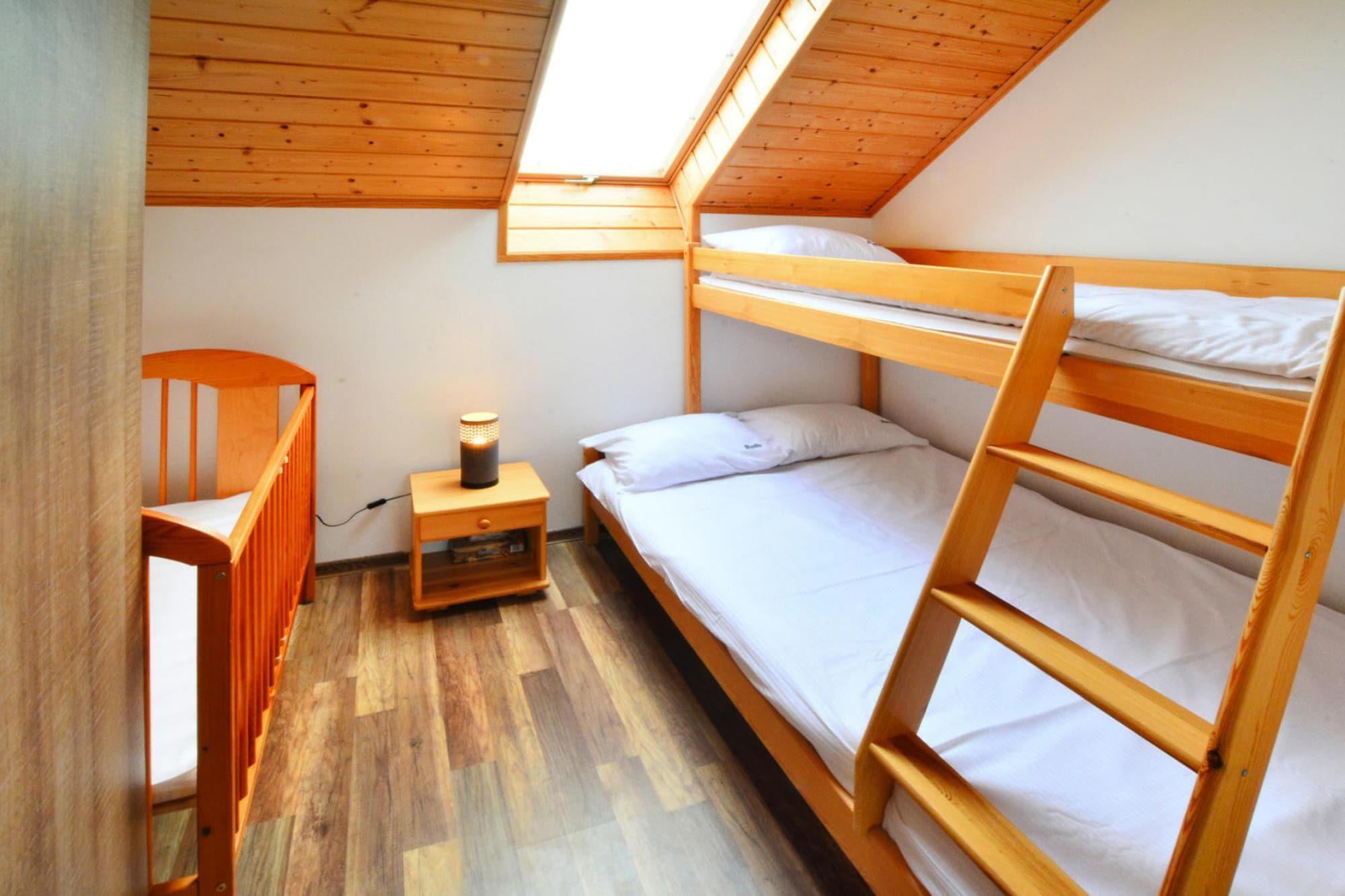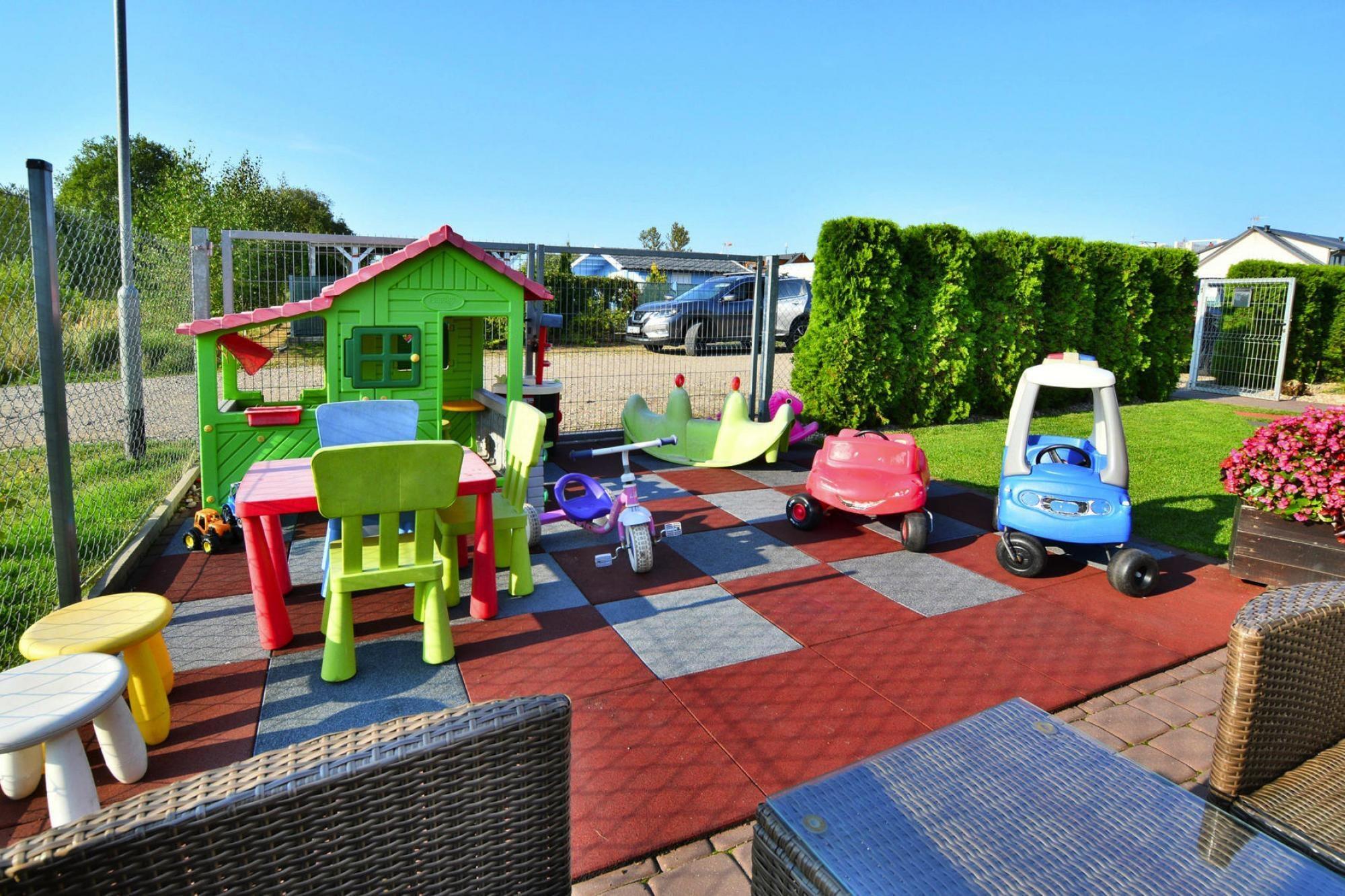 Offene Küche(Kochplatte(2 Kochplatten, Induktion), Wasserkocher, Toaster, Kaffeemaschine, Mikrowelle, Kühl-/Gefrierkombination), Wohn/Esszimmer(Doppelschlafcouch, TV(Flatscreen, Satellit, Deutsch Fernsehsender), Esstisch(4 Personen)), Schlafzimmer(Etagenbett für 3 Personen), Badezimmer(Dusche, Waschbecken, Toilette, Waschmaschine, Föhn), Internet, Fahrradverleih, Spielplatz, Liegewiese, Babybadewanne, Heizung(elektrisch, durch Klimaanlagen), Klimaanlage, Terrasse(Gemeinschaftliche Nutzung mit anderen Gästen), Garten(Gemeinschaftliche Nutzung mit anderen Gästen, umzäunt, 360 m2), Gartenmöbel, Liegen, Grill(Holzkohle), Parkplatz, Trampolin(Gemeinschaftliche Nutzung mit anderen Gästen), Sonnenschirm, Sandkasten(Gemeinschaftliche Nutzung mit anderen Gästen), Spielgeräte(Gemeinschaftliche Nutzung mit anderen Gästen), Rutsche(Gemeinschaftliche Nutzung mit anderen Gästen), Fahrräder verfügbar(gegen Gebühr, auf Anfrage), Hochstuhl, Außenkamin, Spielzeug, Schaukel, Babybett (kostenlos)