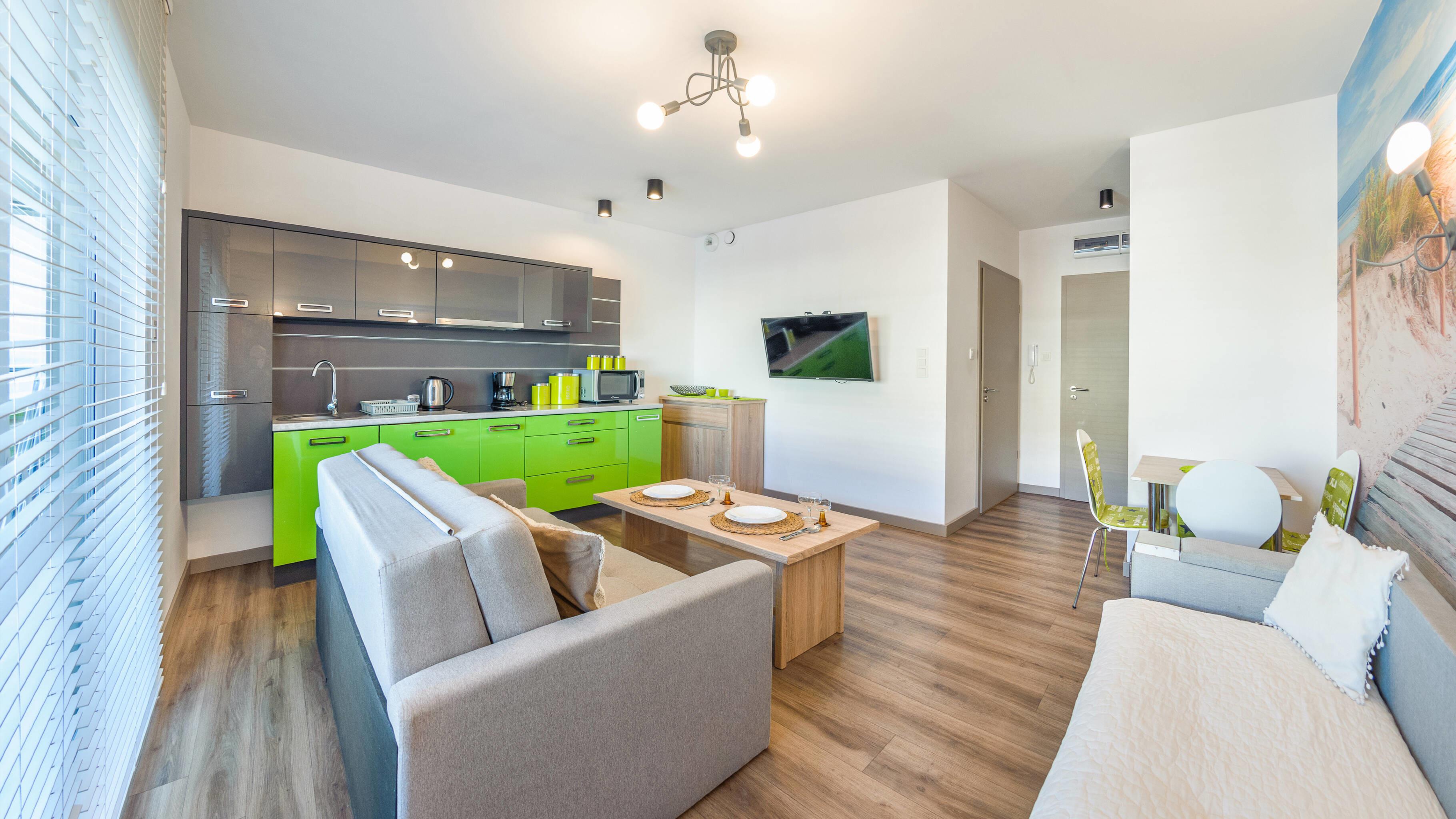 Zu den gewählten Apartments darf man mit dem Hund ankommen. Die zusätzlichen Kosten des Aufenthalts mit einem vierbeinigen Freund betragen 100 PLN (Einzelgebühr). Die Gäste, die den Aufenthalt mit dem Hund planen, bitten wir um eine frühere Kontaktaufnahme mit unserem Service im lokalen Büro.