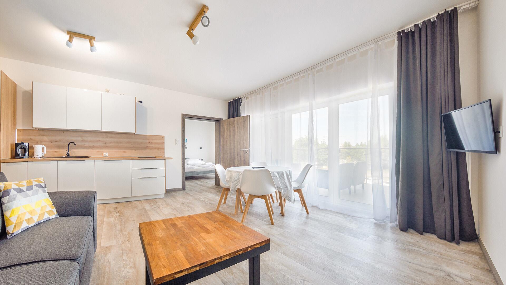Zu den gewählten Apartments darf man mit dem Hund ankommen. Die zusätzlichen Kosten des Aufenthalts mit einem vierbeinigen Freund betragen 100 PLN (Einzelgebühr). Die Gäste, die den Aufenthalt mit dem Hund planen, bitten wir um eine frühere Kontaktaufnahme mit unserem Service im lokalen Büro.
