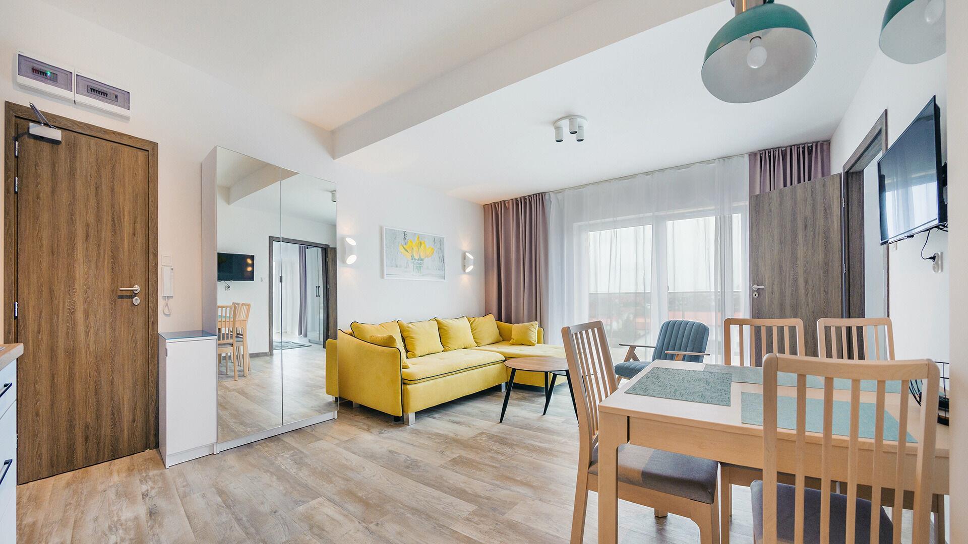 Zu den gewählten Apartments darf man mit dem Hund ankommen. Die zusätzlichen Kosten des Aufenthalts mit einem vierbeinigen Freund betragen 100 PLN (Einzelgebühr). Die Gäste, die den Aufenthalt mit dem Hund planen, bitten wir um eine frühere Kontaktaufnahme mit unserem Service im lokalen Büro.