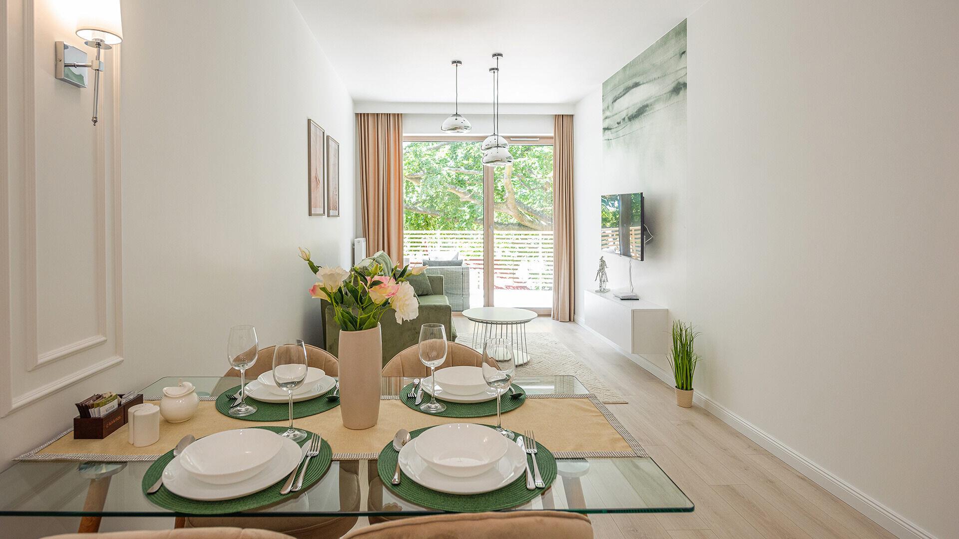 Zu den gewählten Apartments darf man mit dem Hund ankommen. Die zusätzlichen Kosten des Aufenthalts mit einem vierbeinigen Freund betragen 100 PLN (Einzelgebühr). Die Gäste, die den Aufenthalt mit dem Hund planen, bitten wir um eine frühere Kontaktaufnahme mit unserem Service im lokalen Büro.