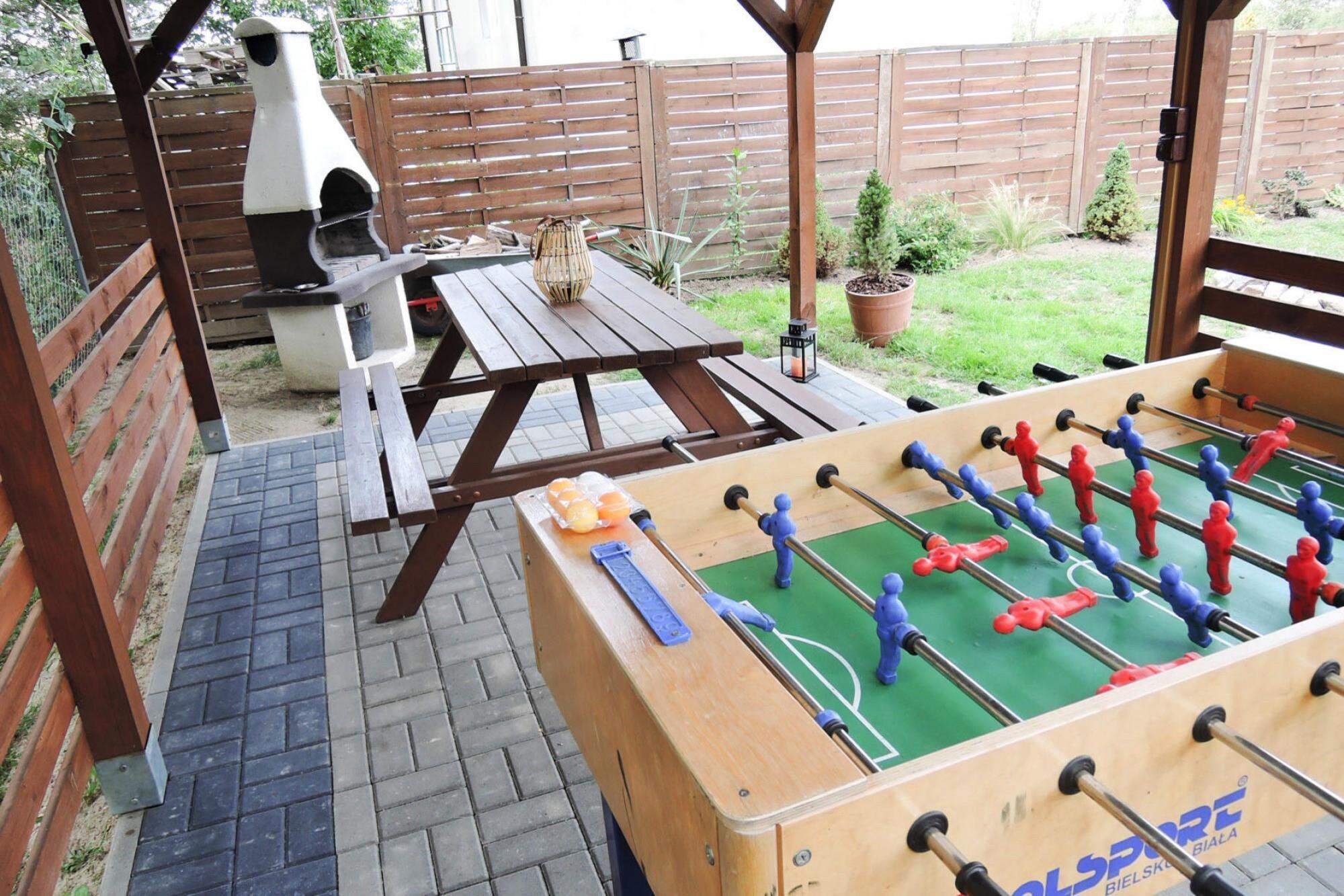 Neu erbautes, gemütlich eingerichtetes XXL-Ferienhaus mit großem Gartengrundstück. Das Ferienhaus verfügt über mehrere Balkone und eine Terrasse, auf der Sie gemütlich Ihre Urlaubstage ausklingen lassen können. Der große Garten ist wie gemacht für Urlaub mit Kindern, denn es lässt sich hier vortrefflich Spielen und Toben. Abends wird dann einfach der Grill befeuert, um ein leckeres Abendessen in großer Runde zu genießen. Die Ferienunterkunft befindet sich in einer ruhigen Gegend nicht weit vom Meer entfernt. In der Nähe befinden sich viele Seen, die zum Angeln genutzt werden können. Aktivitäten in der Nähe : Sieroslaw ist der perfekte Ausgangspunk um Swinemünde oder Misdroy zu besuchen. In Swinemünde können Sie auf der längsten Promenade Europas flanieren oder historische Bauwerke besichtigen. In der Nähe Ihrer Ferienunterkunft befindet sich zudem der Amber Baltic Golf Club Mobilität : Nicht geeignet für Personen mit eingeschränkter Mobilität