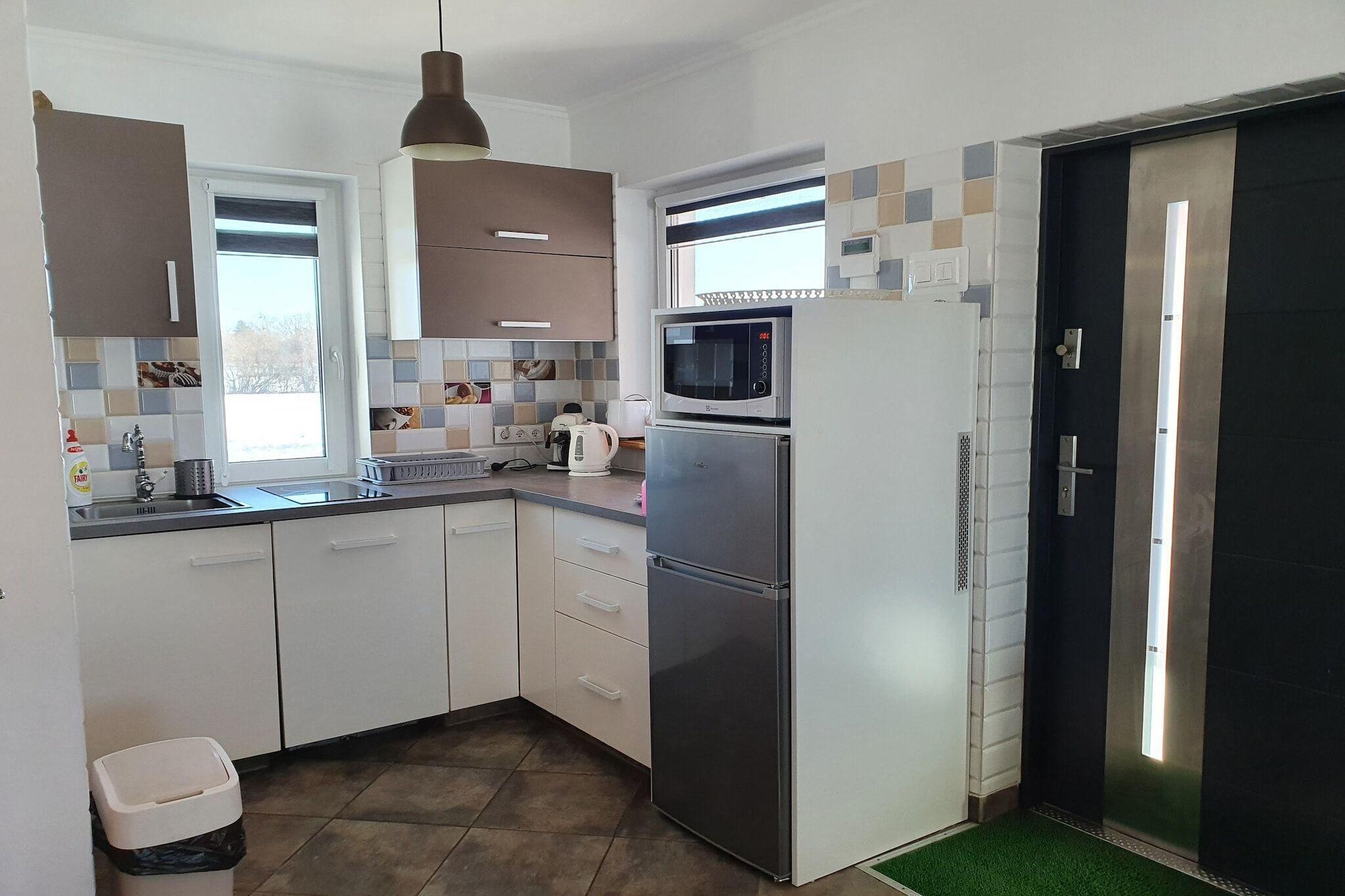 Komfortables Ferienhaus mit privatem Garten. Dieses komfortable, zweistöckige Ferienhaus mit überdachter Terrasse befindet sich auf einem privaten, umzäunten Grundstück (1400 m²). Das Grundstück ist vom üppigen Grün des Nationalparks Slowinski umgeben. Der nächste Strand ist 5 km und der Dolgie Wielkie-See 2 km entfernt. Das Haus erstreckt sich über zwei Etagen. Im Erdgeschoss befinden sich ein geräumiges Wohnzimmer (Kamin, TV, Esstisch, zwei Schlafsofas), eine gut ausgestattete Küche und ein Badezimmer mit Dusche (inkl. Waschmaschine). Das Badezimmer verfügt über eine Infrarotsauna, die von den Gästen uneingeschränkt genutzt werden kann. Im Obergeschoss befinden sich zwei separate Schlafzimmer. Die große Terrasse ist mit Gartenmöbeln und Grillmöglichkeiten ausgestattet. Sonnenliegen stehen zur Verfügung. Elektrische Heizung und ein Kamin sind vorhanden. WLAN ist verfügbar. Haustiere sind gegen eine zusätzliche Gebühr erlaubt (maximal 3). Das gepflegte, umzäunte Grundstück bietet einen Kinderspielplatz und sichere Parkplätze. Im Preis inbegriffen: Bettwäsche, Handtücher, Strom, Wasser, Brennholz, Infrarotsauna, Endreinigung, Internet und Parkplatz. Für die Kleinen: Kinderbett, Hochstuhl, Badewanne und Töpfchen. Das Ferienhaus liegt in der Pufferzone des Nationalparks Slowinski, einem UNESCO-Biosphärenreservat. In der Nähe befinden sich Wander- und Radwege, Möglichkeiten zum Kajakfahren, Reiten und Angeln. Der breite Strand, 5 km vom Haus entfernt, ist selbst in der Hochsaison menschenleer. Hier genießen Sie Ruhe und Erholung pur.