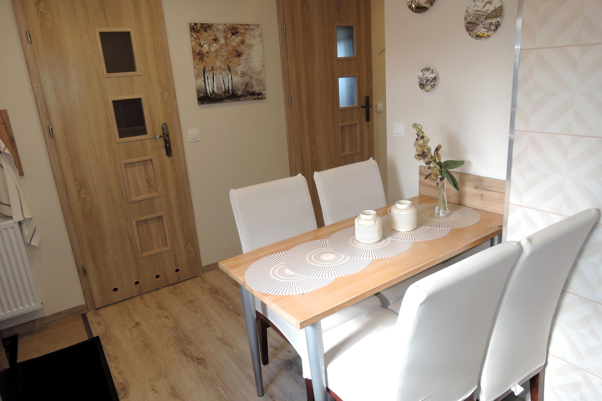 Neues, komfortables Ferienhaus in Stepnica. Zur Verfügung der Gäste: Wohnzimmer, Schlafzimmer, gut ausgestattete Küche, Badezimmer mit Dusche, Waschbecken, Toilette, zweites zusätzliches WC. Das Haus ist von einem wunderschönen, großen, angelegten Garten mit Teich umgeben. Zum Angebot gehören außerdem ein PKW-Stellplatz, Gartenmöbel und ein Grill. Gäste mit kleinen Hunden sind herzlich willkommen. Auf dem gleichen Grundstück wohnt der Eigentümer, der auch einen kleinen Hund hat. Stepnica ist ein wahres Paradies für Liebhaber der Natur, der Ruhe und Stille sowie für Anhänger aktiver Erholung zu Wasser und zu Land. Auf der einen Seite die ausgedehnten Wälder des Goleniowska-Urwalds und auf der anderen Seite das Stettiner Haff, das sich perfekt für den Wassertourismus eignet. Den Touristen stehen hier folgende Annehmlichkeiten zur Verfügung: ausgebaute Badestellen, Dutzende Kilometer an Wander- und Radwegen, Yachthäfen und Ausrüstungsverleihe, aber vor allem äußerst reiche Naturwerte. Hier befindet sich die größte Seeadlerpopulation Polens und eine der größten Europas.