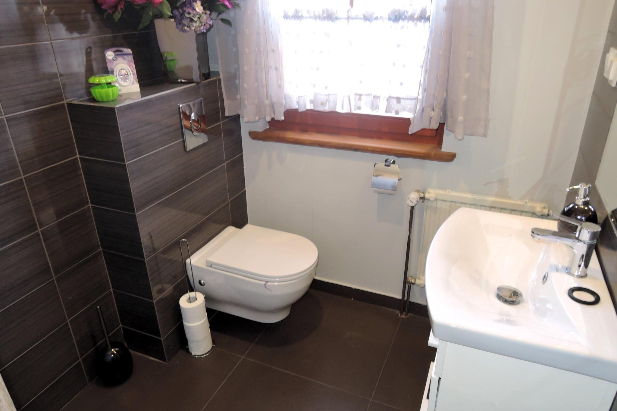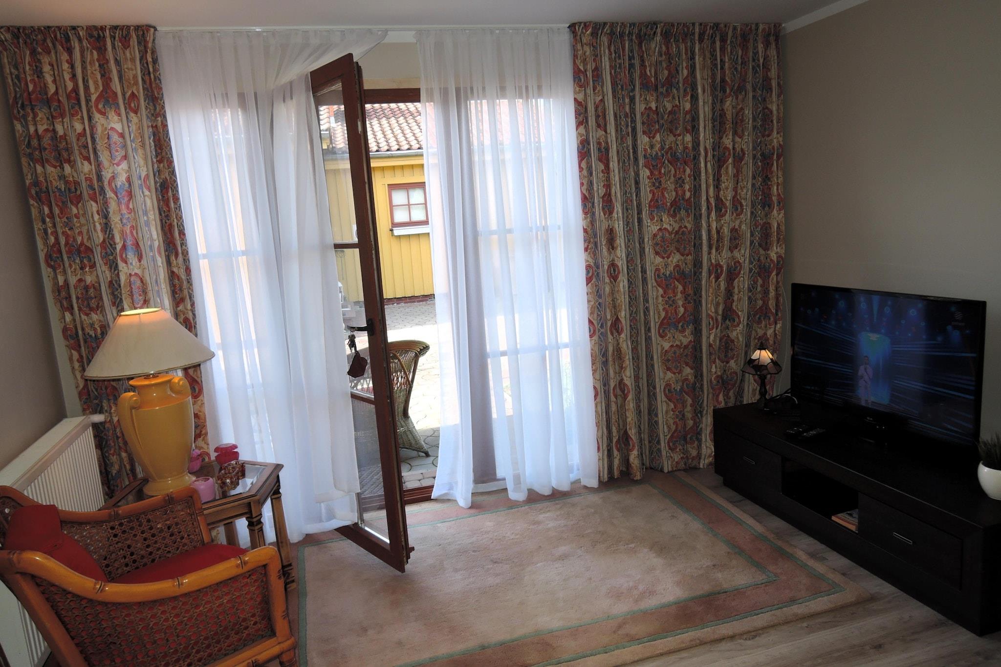 Parterre: (Küche(Esstisch, Wasserkocher, Kochendwasserhahn, Toaster, Kochherd(4 Kochplatten, elektrisch), Dunstabzugshaube, Espressomaschine, Spülmaschine, Kühl-/Gefrierkombination), Wohn-/Schlafzimmer(Doppelbett oder 2 Einzelbetten, TV), Schlafzimmer(Einzelbett, Einzelbett, TV), Badezimmer(Dusche, Waschbecken, Toilette), Toilette(Waschbecken, Toilette)) Garten(Gemeinschaftliche Nutzung mit dem Eigentümer, umzäunt, angelegt, illuminiert, 1400 m2), Gartenmöbel(4 Personen), Liegen, Grill, Fahrräder verfügbar