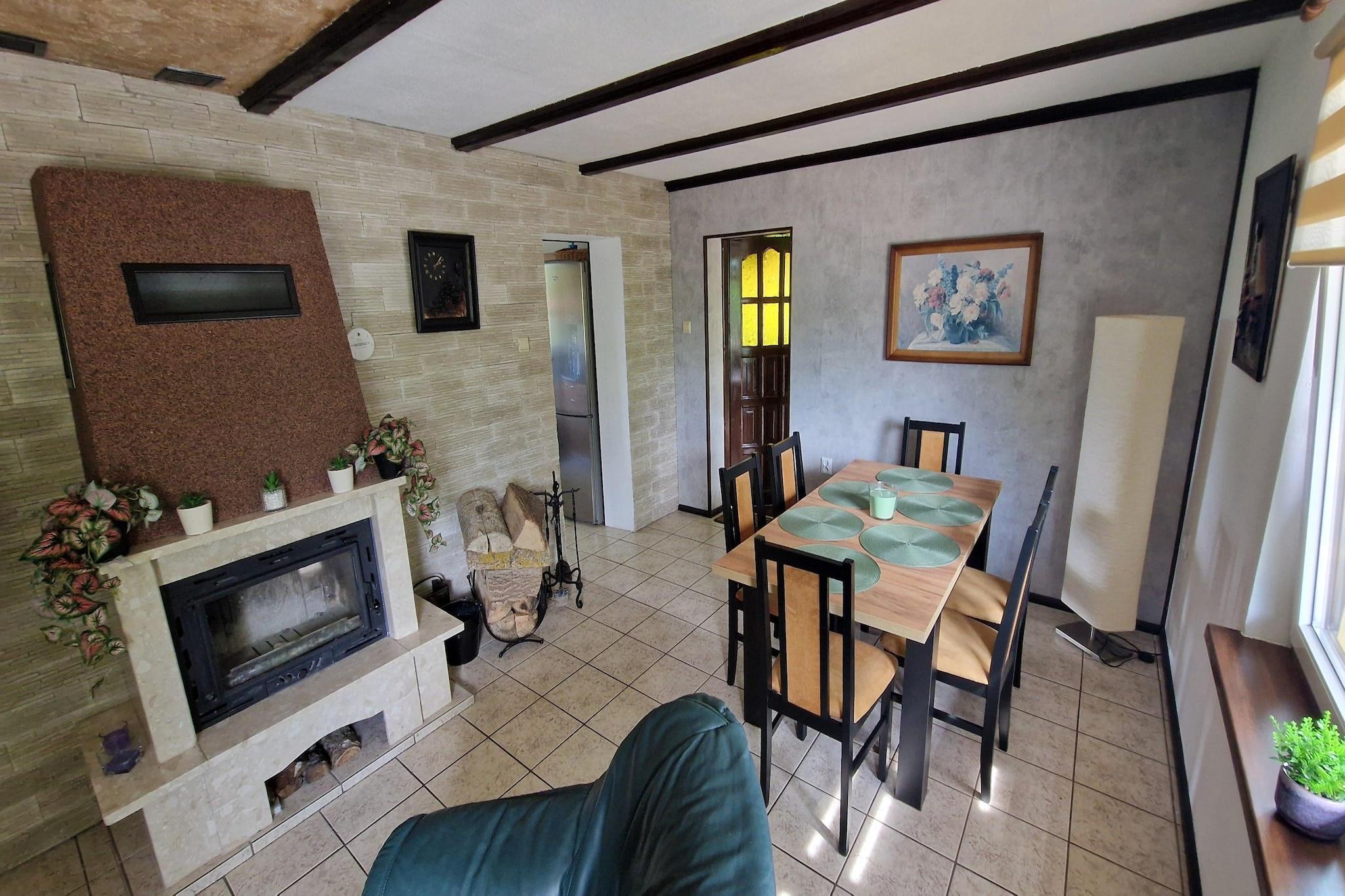 Baden, Wassersport und Natur: Ferienhaus mit Kamin für gemütliche und entspannte Stunden. Mit seinen 120 Quadratmetern Wohnfläche und dem großen Grundstück zur Alleinnutzung ist das Feriendomizil perfekt für Familien mit Kindern. Und auch alle, die sich im Urlaub etwas vom Alltagsstress zurückziehen möchten, um die Ruhe in der Natur zu genießen, sind hier richtig. Dabei kommen Badevergnügen und Wassersport aber nicht zu kurz, denn das Stettiner Haff ist nur 100 Meter entfernt. Stepnica - ein Urlaubsort in der polnischen Woiwodschaft Westpommern. In der Nähe befindet sich das Stettiner Haff und der Gollnower Urwald. Diese beeindruckende Landschaftszüge sind nicht nur für Naturliebhaber ein beliebtes Ziel. Aktivitäten in der Nähe : Das Stettiner Haff bildet als Wassergrenze zwischen Polen und Deutschland seit jeher eine einzigartige landschaftliche Besonderheit und damit einen Anziehungspunkt für Mensch und Tier. Gründe hierfür sind unter anderem, der angrenzende Naturpark Usedom und das Stettiner Haff welche eine einzigartige Flora und Fauna beheimaten. Die Sonnenhungrigen und Wassersportler lassen sich im Sommer gerne von den verschiedenen Strandbädern locken und auch im Winter kann man sich ordentlich den Wind um die Nase wehen lassen, die Gedanken schweifen lassen und Erholung genießen. Wer sich kulturell inspirieren lassen möchte, sollte einen Tagesausflug nach Szczecin, auf die westliche Seite der Oder, unternehmen. Die Stadt ist stark durch diesen Fluss geprägt und hat mit mehreren Inseln ein durchaus interessantes und sehenswertes Stadtbild. Mobilität : Nicht geeignet für Personen mit eingeschränkter Mobilität