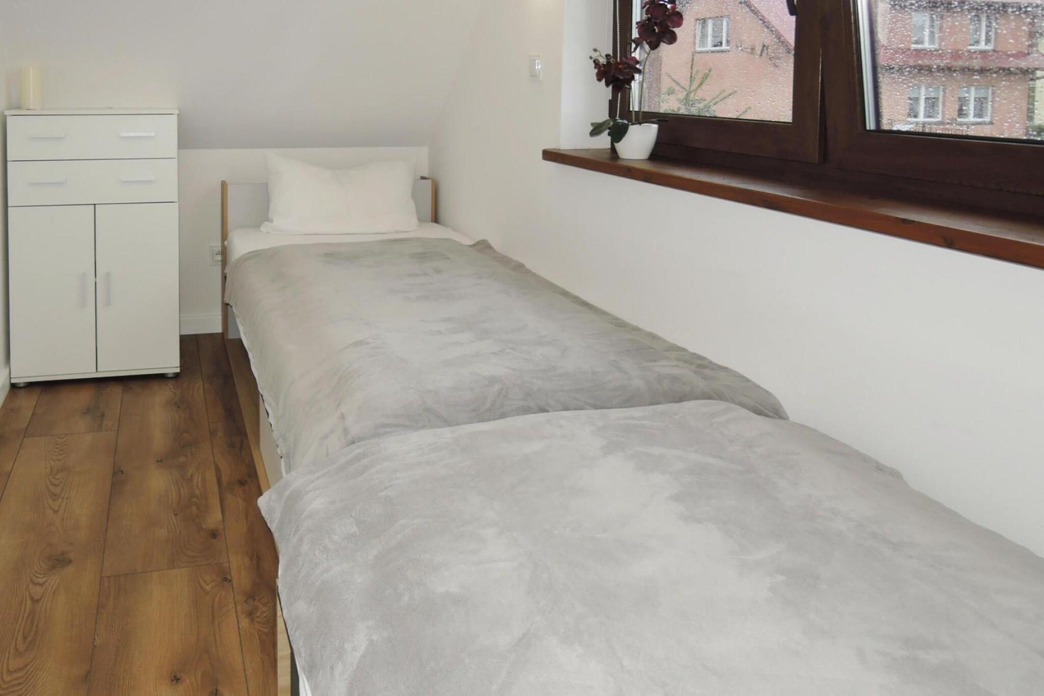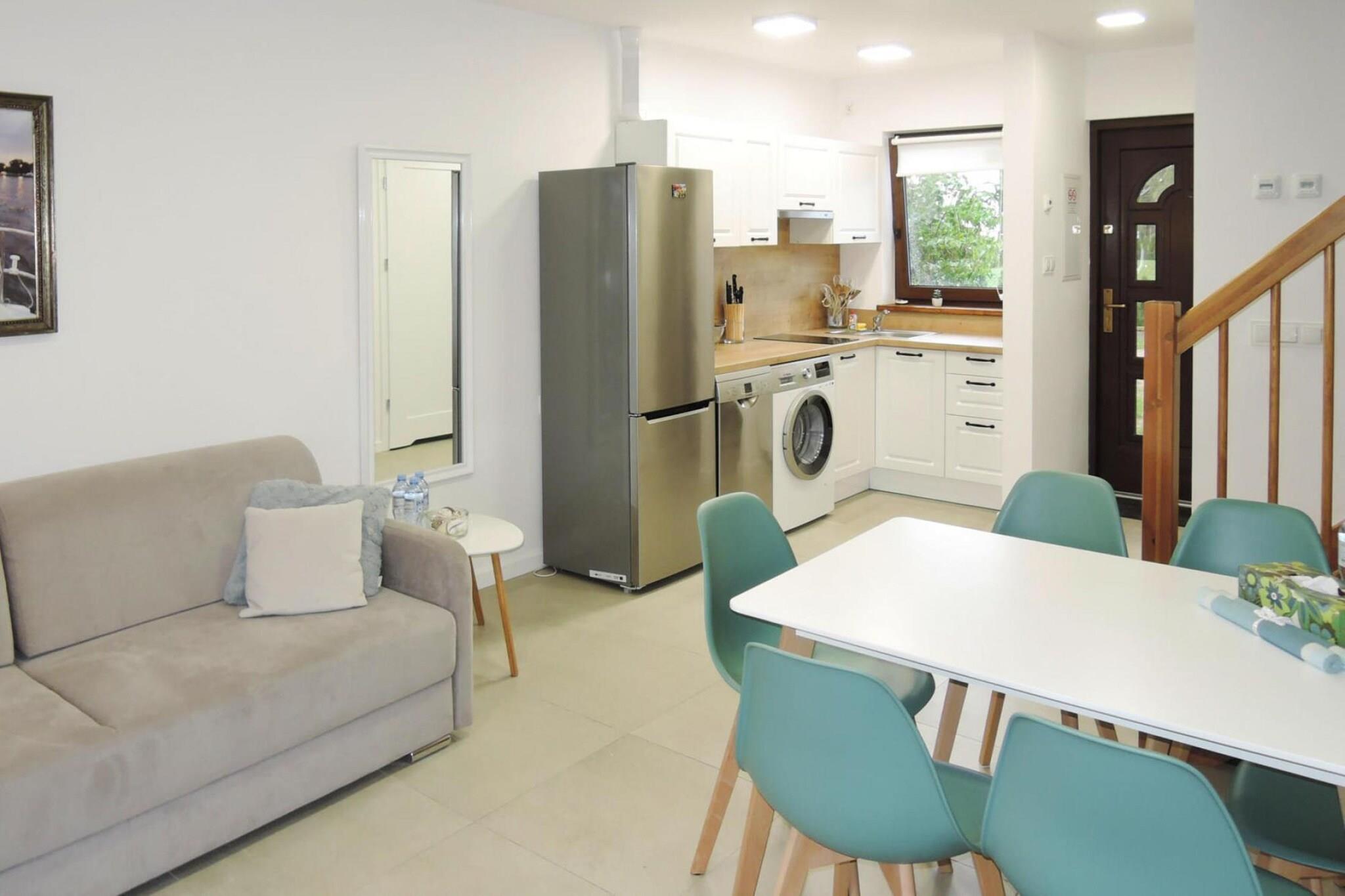 Komfortables, freistehendes Ferienhaus auf zwei Etagen mit gepflegtem Garten. Das große Grundstück bietet viel Privatsphäre und sorgt somit für einen erholsamen, ungestörten Urlaub. Das Haus ist hell und geschmackvoll eingerichtet, so dass man sich direkt bei Ankunft schon wohl fühlt. Perfekt für entspannte Urlaubstage mit der ganzen Familie in einer wunderschönen Umgebung. Stepnica liegt nicht weit hinter der deutsch-polnischen Grenze in Hinterpommern. Die Entfernung nach Stettin (Szczecin) beträgt 25 Kilometer, bis Berlin sind es etwa 150 Kilometer. Bei einem gemütlichen Bummel können Sie den Bootshafen erkunden; sehenswert sind auch die klassizistische Pfarrkirche St. Hyazinth, ein verputzter Fachwerkbau von 1741 und die Fachwerk- und Ziegelhäuser aus dem 19./20. Jahrhundert. Anschließend legen Sie eine Kaffeepause in der Strandgaststätte ein. HighLights : Verbrauchsabhängige Energiekosten, Bettwäsche, Handtücher, Endreinigung Aktivitäten in der Nähe : Das Stettiner Haff - rund 600 m entfernt - bildet als Wassergrenze zwischen Polen und Deutschland seit jeher eine einzigartige landschaftliche Besonderheit und damit einen Anziehungspunkt für Mensch und Tier. Die angrenzenden Naturparks von Usedom und dem Stettiner Haff beheimaten eine einzigartige Flora und Fauna. Im Sommer locken verschiedene Strandbäder Sonnenhungrige und Wassersportler zu vergnügten Tagen, im Winter kann man sich ordentlich vom Wind durchpusten lassen und die Gedanken schweifen lassen. Wer sich kulturell inspirieren lassen möchte, sollte einen Tagesausflug nach Szczecin, auf die westliche Seite der Oder, unternehmen. Die Stadt ist natürlich stark durch den Fluss geprägt und hat mit mehreren Inseln ein durchaus interessantes Stadtbild. In der Nähe gibt es die Ortschaft Czarnocin, dank der seichten Gewässer des Stettiner Haffs und dem Westwind sind hier beste Bedingungen für Wind- und Kitesurfen. Mobilität : Nicht geeignet für Personen mit eingeschränkter Mobilität