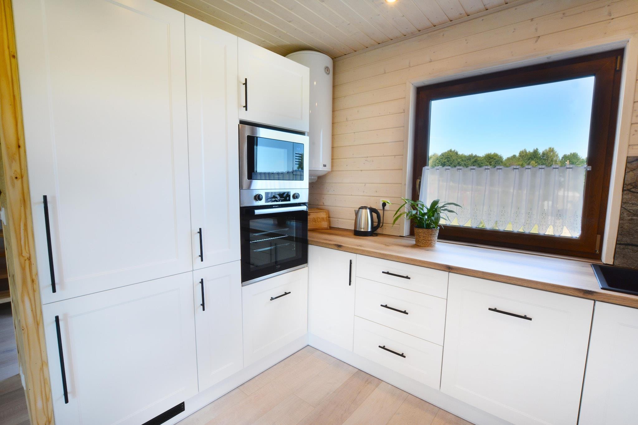 Ein perfekter Ort für Menschen, die Ruhe und Kontakt mit der Natur lieben. Das gemütliche Erholungszentrum besteht aus nur 3 Ferienhäusern und liegt inmitten von Feldern und Wiesen. An diesen Bereich grenzen keine weiteren Gebäude an. Perfekter Raum für Spaziergänge und spannende Radtouren. Das geräumige und sehr komfortable Ferienhaus bietet bequem Platz für 10 Personen. Im Erdgeschoss des Hauses befindet sich ein großer, offener Raum mit Wohnbereich (TV, großer Tisch und 2 ausziehbare Sofas) und einer gut ausgestatteten Küche. Im Erdgeschoss befindet sich außerdem ein Badezimmer mit Dusche. Im ersten Stock befinden sich 3 separate Schlafzimmer mit bequemen Betten und ein Badezimmer mit Badewanne. Das Haus verfügt über eine große, überdachte Terrasse mit Gartenmöbeln, Liegestühlen und einem Grillkamin. Im ersten Stock gibt es einen Balkon. Elektroheizung + Kamin (Holz im Preis inbegriffen), der zu jeder Jahreszeit gemütliche Entspannung ermöglicht. Das Haus verfügt über einen privaten, entspannenden holzbefeuerten Whirlpool und eine Sauna (Strom wird nach Verbrauch abgerechnet). WLAN ist verfügbar. Sicheres Parken vor Ort. Im Preis des Aufenthalts sind enthalten: Bettwäsche, Handtücher, Wasserverbrauch, Holz für Kamin und Whirlpool, Sauna, Internet, Parkplatz, Kurtaxe. Babybett und Hochstuhl auf Anfrage. Ein unbestrittener Vorteil ist die Möglichkeit des uneingeschränkten Kontakts mit der umliegenden Natur und die Organisation langer, attraktiver Radtouren zu den umliegenden Feldern, Wiesen und Wäldern. Der schöne Badestrand in Dabki oder Darlówko ist etwa 23 km entfernt. In Swiecianów, ca. 7 km (4 km mit dem Fahrrad) entfernt, gibt es eine Fischfarm, wo Sie Forellen direkt aus dem Teich kaufen können. Perfekt zum Grillen. Es gibt auch einen mit Fischen bestückten Angelteich, wo Sie gegen eine geringe Gebühr das Angeln ausprobieren können.