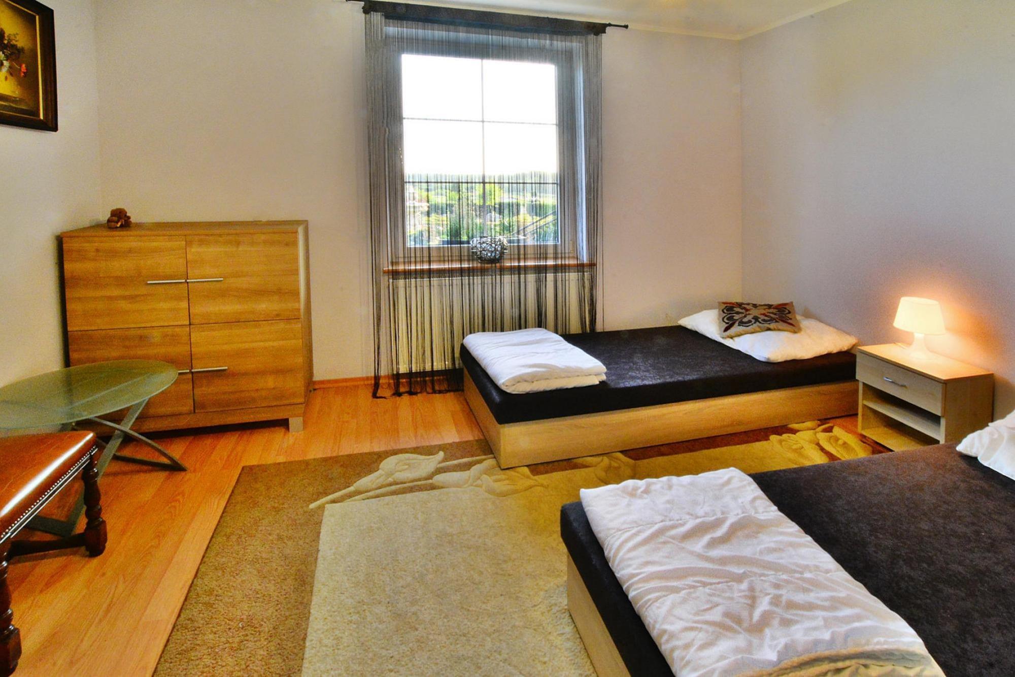 Das ruhige Dorf Swiecianowo in der Woiwodschaft Westpommern. 10 km von einer größeren Stadt (Slawno), 5 km vom See mit Strand und Verleih von Wasserausrüstung entfernt. 25 km bis zum Meer. Die unmittelbare Umgebung des Hauses sind Wiesen, Wälder und eine idyllische Landschaft. Viele Möglichkeiten für Spaziergänge und Radtouren in der Natur. Auf die Gäste wartet eine XXL-Ferienvilla. Dies ist eine einzigartige Unterkunft: 470 m² Fläche, 9 Schlafzimmer, 4 Badezimmer. Das Haus liegt auf einem riesigen Grundstück (der größte Teil davon ist ein gepflegter Garten). Der Eigentümer der Anlage wohnt zwar auf dem gleichen Grundstück, ist aber eher unauffällig anwesend und steht jederzeit mit Rat und Tat zur Seite. Das Haus ist perfekt ausgestattet. Zusätzlich zu den oben genannten Schlafzimmern und Badezimmern steht vor Ort eine sehr große, voll ausgestattete Küche zur Verfügung. Es gibt ein elegantes Esszimmer und ein gemütliches Wohnzimmer mit Kamin und TV. Im ersten Stock gibt es ein zusätzliches Wohnzimmer mit TV. Für die Kleinsten gibt es einen Spielplatz, einen Sportplatz, Fahrräder, einen Fitnessraum, Tischtennis, Tischfußball, eine Feuerstelle und ein Gartenhäuschen. Auf der anderen Straßenseite befindet sich ein Fischteich mit Fischbesatz, der den Eigentümern der Ferienvilla gehört. Gäste können hier gegen eine zusätzliche Gebühr angeln (bei Bedarf kann auch eine einfache Angelausrüstung gemietet werden). Die Eigentümer der Anlage verfügen über Zuchtfischteiche. Es besteht die Möglichkeit, frische Forellen zu kaufen. Im Preis des Aufenthalts sind enthalten: Bettwäsche, Strom- und Wasserverbrauch, Brennholz, Internet, Parkplatz, Babybett, Hochstuhl. Die Hauptattraktion hier sind die natürlichen Werte, weite Wiesen, dichte Wälder, ideal zum Wandern, Spazierengehen und Radfahren. Nur 5 km entfernt gibt es einen See mit einem schönen Strand und einem Verleih von Wasserausrüstung.