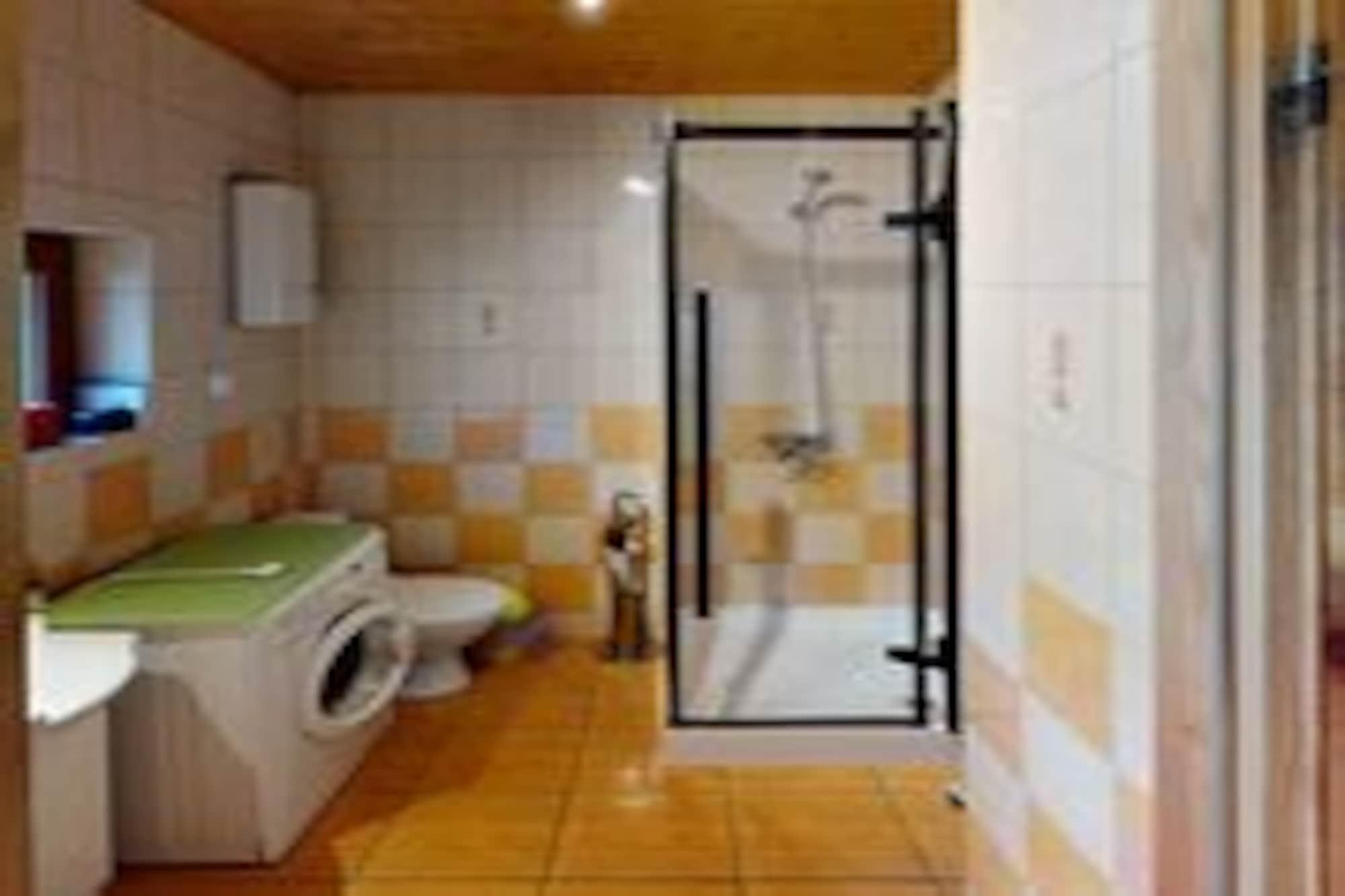 Parterre: (offene Küche(Kochplatte(2 Kochplatten, Gas), Wasserkocher, Toaster, Kaffeemaschine, Grill, Mikrowelle, Kühl-/Gefrierkombination), Wohn/Esszimmer(TV(Flatscreen), Esstisch, Kaminofen, Radio, CD-Spieler), Badezimmer(Dusche, Waschbecken, Toilette, Waschmaschine)) In der 1. Etage: (Schlafzimmer(Doppelbett), Schlafzimmer(Einzelbett, Doppelschlafcouch)) Liegewiese, Balkon, Heizung(Holz), Terrasse(überdacht), Garten(alleinige Nutzung, umzäunt, 2500 m2), Gartenmöbel, Liegen, Grill(Holzkohle), Parkplatz, Sonnenschirm, Sandkasten, Rutsche, Außenkamin, Schaukel, Babybett (kostenlos)