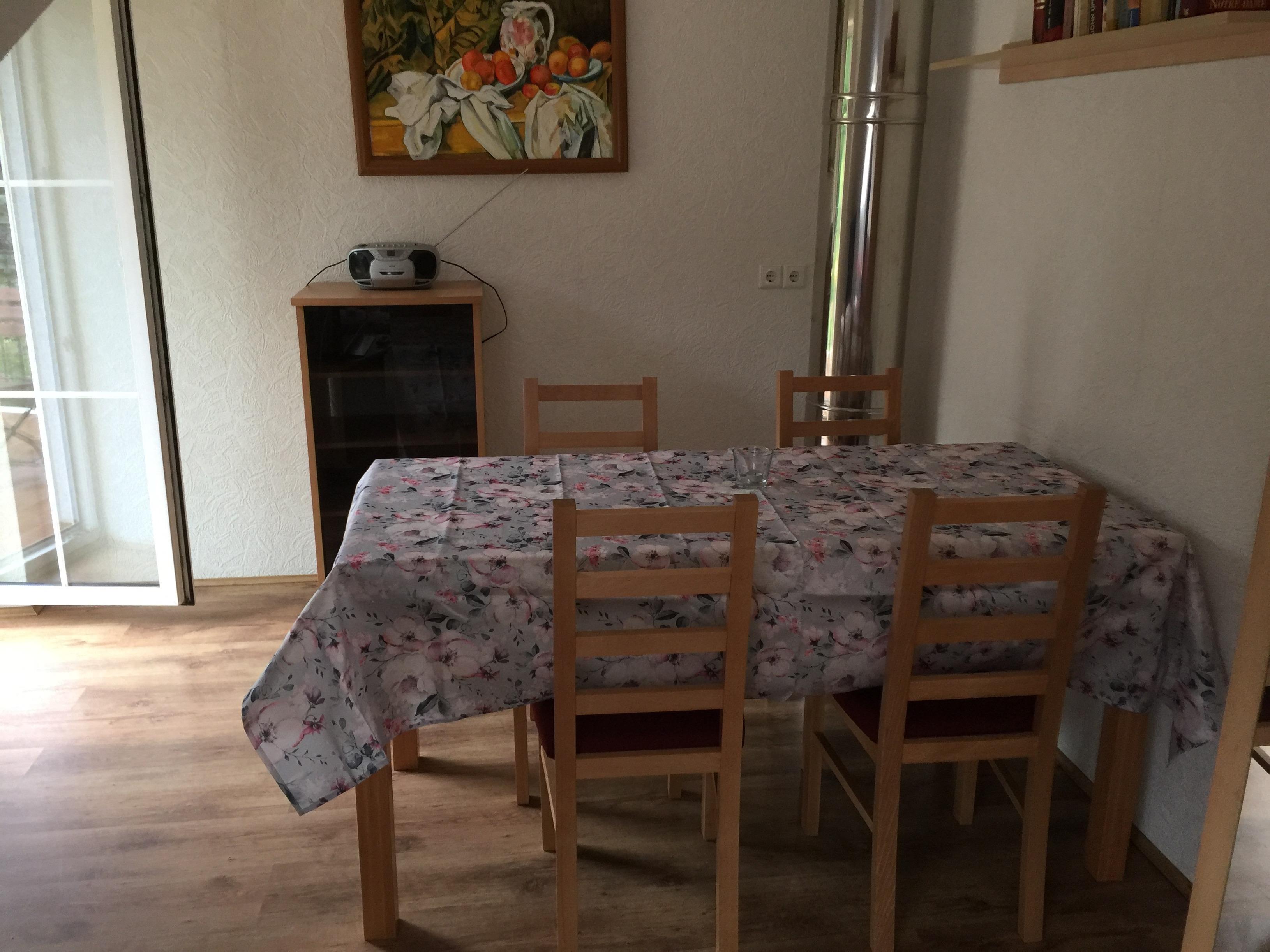 Das Ferienhaus mit großem Garten liegt am Waldrand in einem reizvollen Einfamilienhaus-Viertel. Die Lage ist ruhig, jedoch zentral, wenige Minuten vom Zentrum entfernt. Zwei Ferienwohnungen liegen im oberen Stockwerk des Hauses. Die untere Etage wird vom Gastgeber für die eigenen Ferien genutzt. Die Ferienwohnungen sind über eine separate Außentreppe zu erreichen. Jede Wohnung hat ein Wohnzimmer mit Balkon, 1 Schlafzimmer und ein Duschbad. In der Mitte der beiden Wohnungen liegt eine große Gemeinschaftsküche.