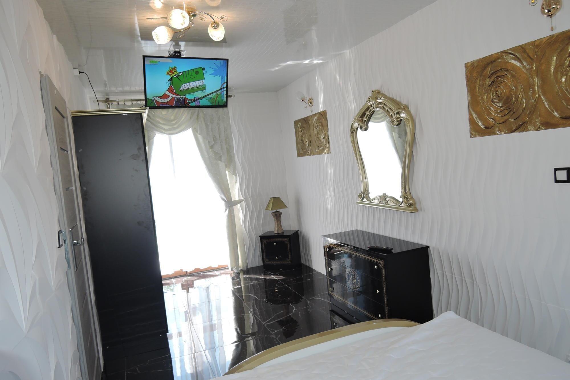 Parterre: (Schlafzimmer(Doppelbett), Badezimmer(Dusche, Waschbecken, Toilette)) In der 1. Etage: (Schlafzimmer(3x Einzelbett), Schlafzimmer(4x Einzelbett), guest toilet) offene Küche(Kochplatte(Induktion), Wasserkocher, Toaster, Kaffeemaschine, Backofen, Mikrowelle, Kühl-/Gefrierkombination), Wohn/Esszimmer(TV(Satellit, Deutsch Fernsehsender), Esstisch), Heizung(elektrisch, Fußbodenheizung), Parkplatz, Trampolin, Rutsche, Hochstuhl, Schaukel, Babybett (kostenlos)