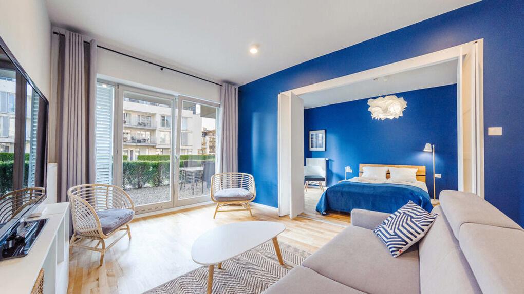Wir laden Sie in moderne Apartments in der Nähe der Spazierpromenade ein. Die Anlage liegt in der Nähe des Kurparks und des Strandes.