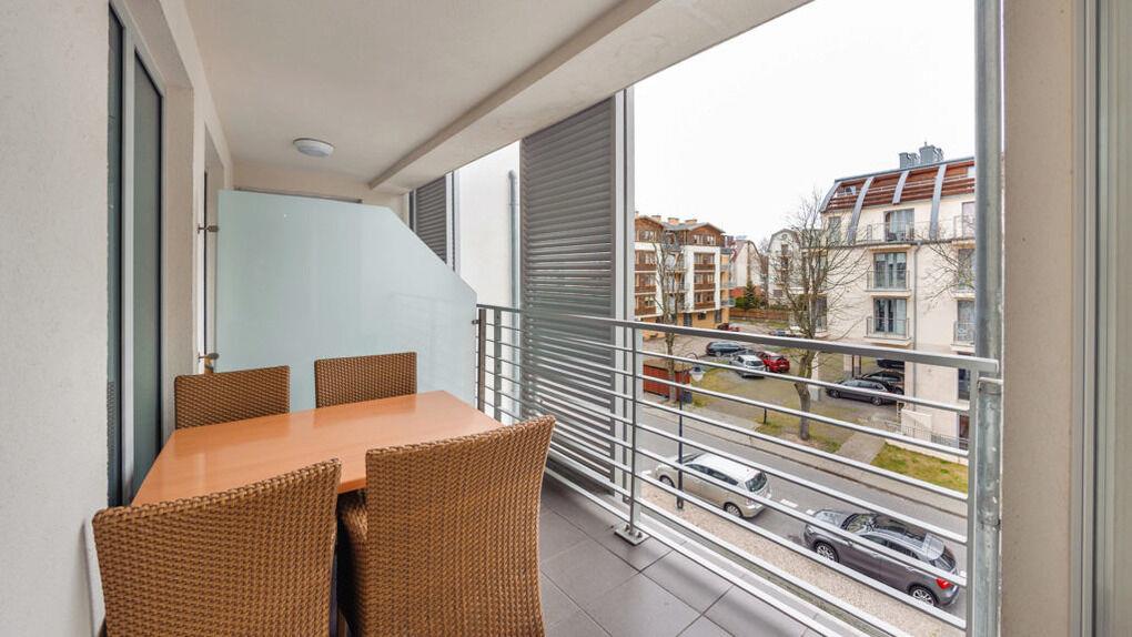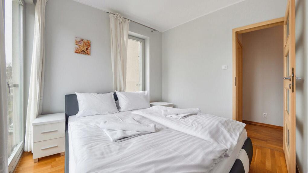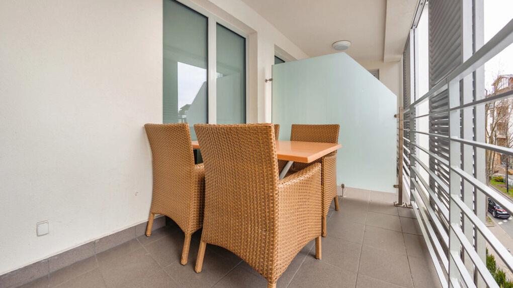 Wir laden Sie in moderne Apartments in der Nähe der Spazierpromenade ein. Die Anlage liegt in der Nähe des Kurparks und des Strandes.