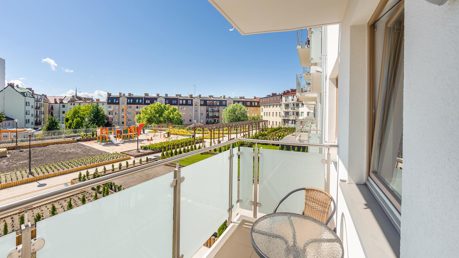 In den Sommermonaten gibt es im Gebäude eine Sky Bar, von der aus man das Panorama von Swinemünde bewundern kann. Draußen stehen den Gästen Fahrradständer zur Verfügung.