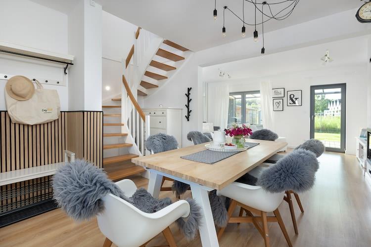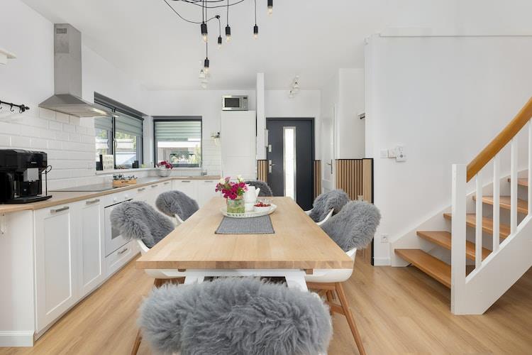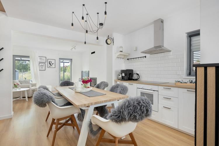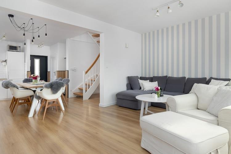 Dieses komfortable Doppelhaus befindet sich in einem ruhigen Teil des schönen Kurorts Trzesacz. Der Strand ist 500 Meter entfernt. Trzesacz bietet mehrere interessante Restaurants und Geschäfte mit einem umfassenden Sortiment. Ein schönes, gut ausgestattetes, zweistöckiges Ferienhaus mit privatem Garten. Im Erdgeschoss befindet sich ein geräumiges Wohnzimmer, das mit der Küche verbunden ist. Es verfügt über einen großen Tisch mit Stühlen, einen Fernseher, einen Kamin (Holz gegen Aufpreis erhältlich) und ein Schlafsofa. Im Erdgeschoss befindet sich auch ein Badezimmer mit Dusche. Im Obergeschoss befinden sich drei separate Doppelzimmer. Zentralheizung und ein Kamin sind vorhanden. WLAN ist verfügbar. Das Haus verfügt über eine große überdachte Terrasse mit Gartenmöbeln und Grillplatz. Der private Zaun bietet viel Platz zum Sonnenbaden und unbeschwerten Spielen für Kinder. Zwei Parkplätze stehen vor dem Haus zur Verfügung. Im Preis inbegriffen sind Strom- und Wasserverbrauch, Internet und Parkplatz. Ein Babybett und ein Hochstuhl sind auf Anfrage erhältlich. Trzesacz ist ein kleiner, stimmungsvoller Ferienort an der Ostseeküste. Er bietet einen sauberen Strand und einen bewachten Badebereich. Die Stadt zieht Touristen an, die Fotos mit den Ruinen einer mittelalterlichen Kirche machen möchten, die auf einer Klippe am Meer emporragen. In der Nähe befindet sich eine Aussichtsplattform, die sich perfekt für spektakuläre Sonnenuntergänge eignet. In der Umgebung gibt es eine renovierte Schmalspurbahn, die reizvolle Ausflüge zu benachbarten Ferienorten ermöglicht.