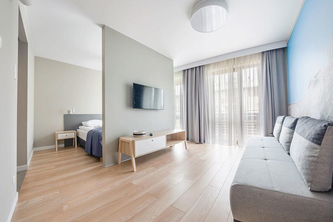 Zu den gewählten Apartments darf man mit dem Hund ankommen. Die zusätzlichen Kosten des Aufenthalts mit einem vierbeinigen Freund betragen 100 PLN (Einzelgebühr). Die Gäste, die den Aufenthalt mit dem Hund planen, bitten wir um eine frühere Kontaktaufnahme mit unserem Service im lokalen Büro.